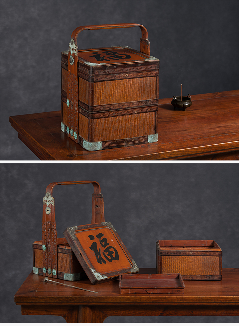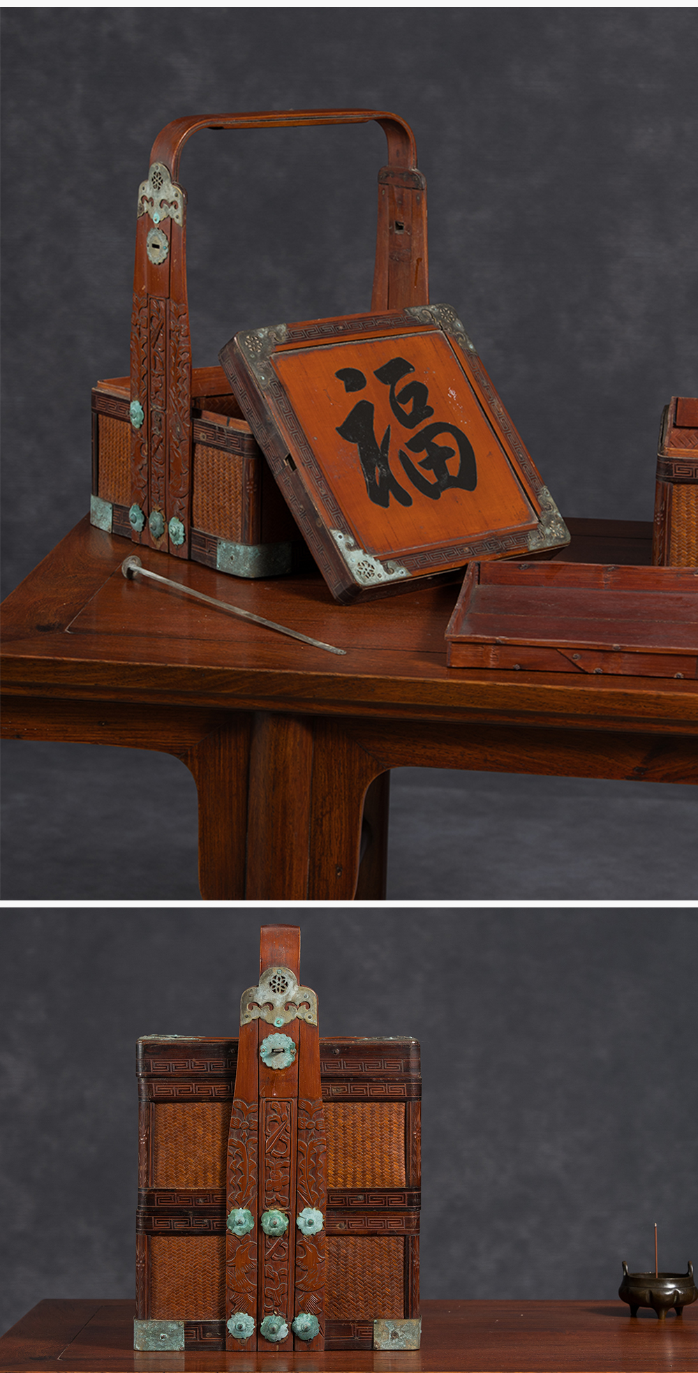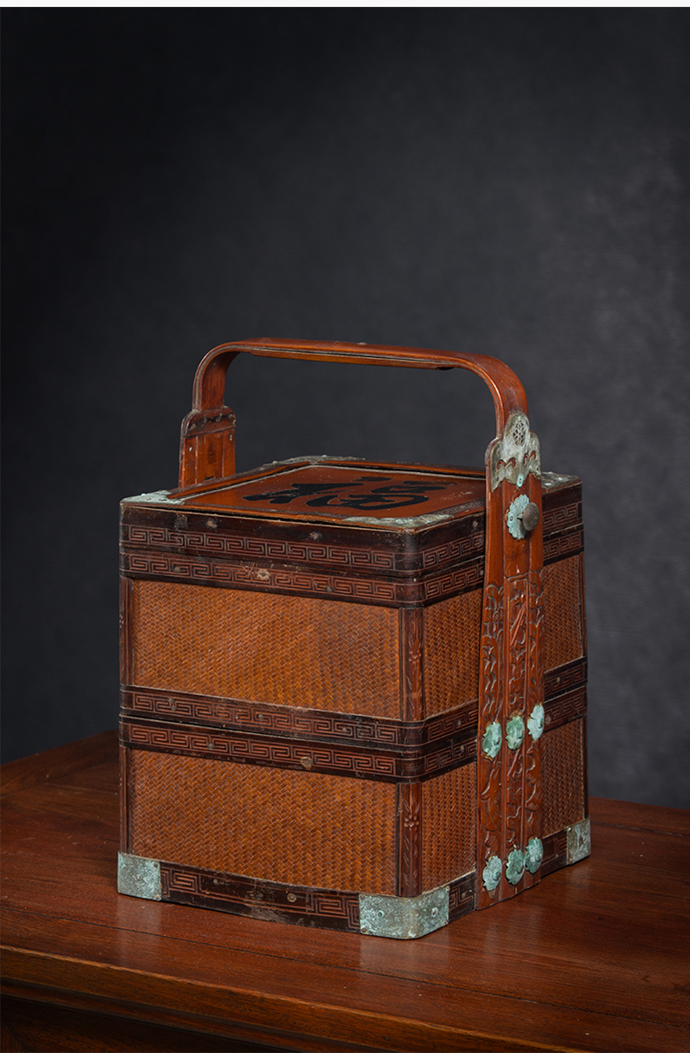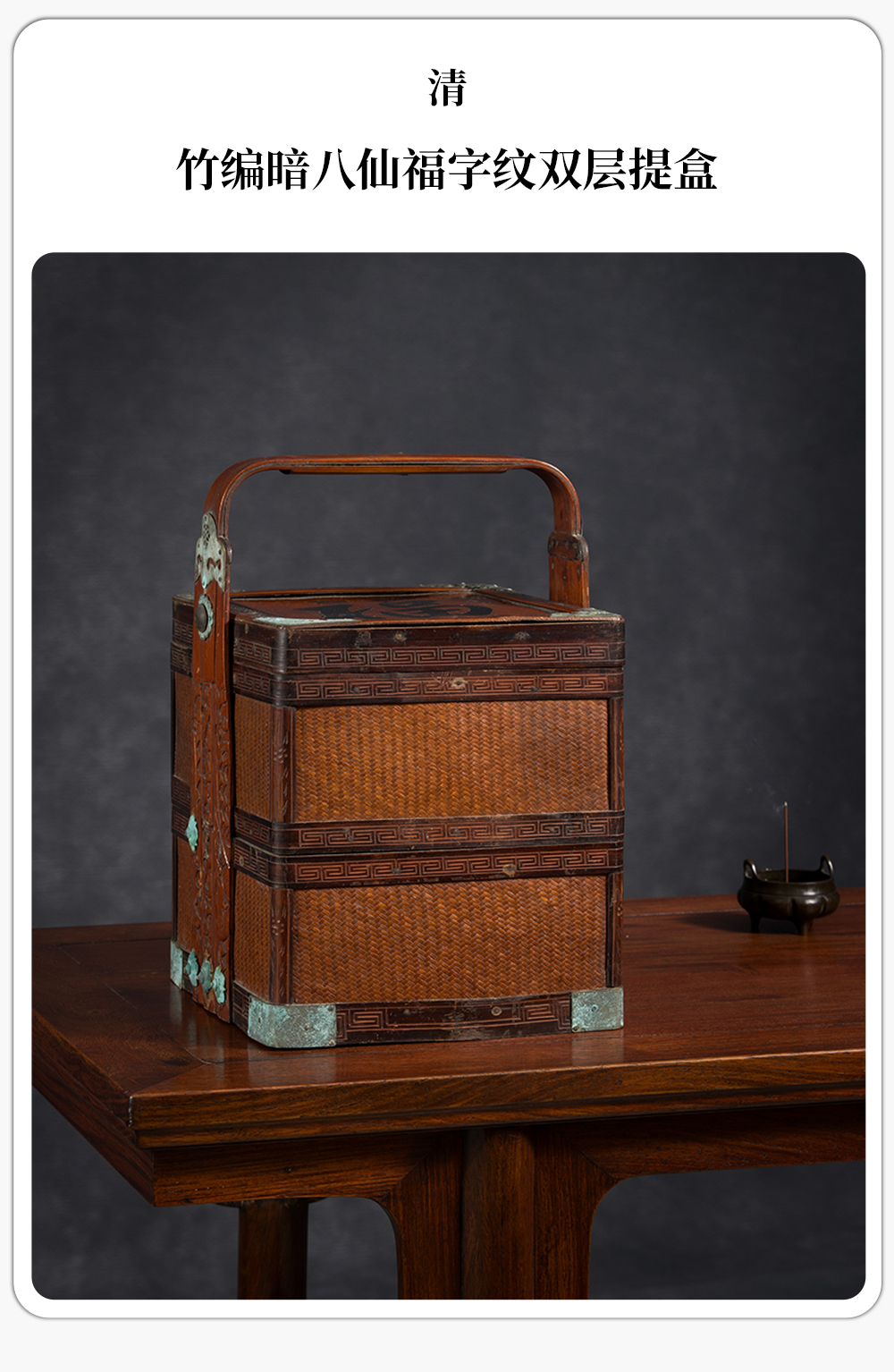 清 竹编暗八仙福字纹双层提盒