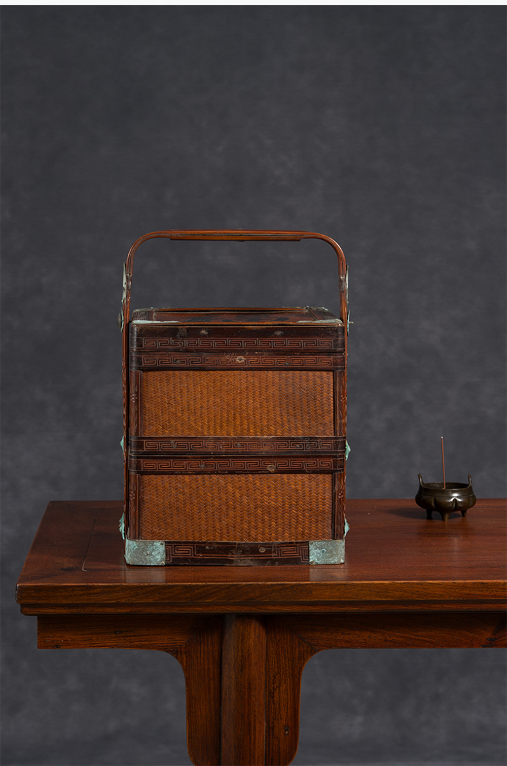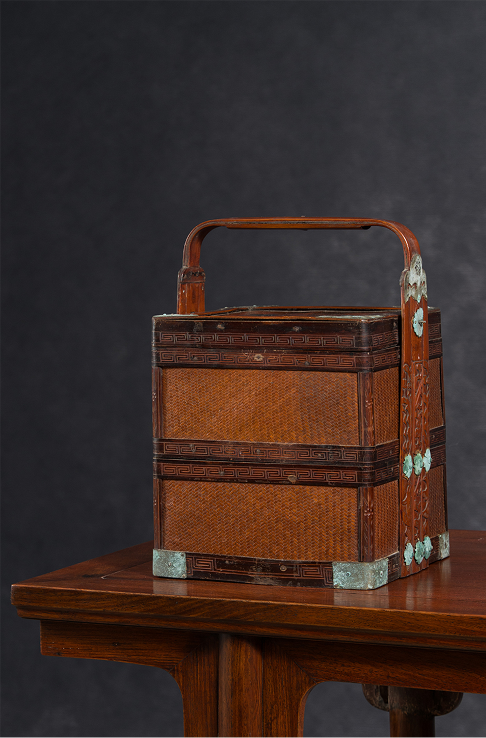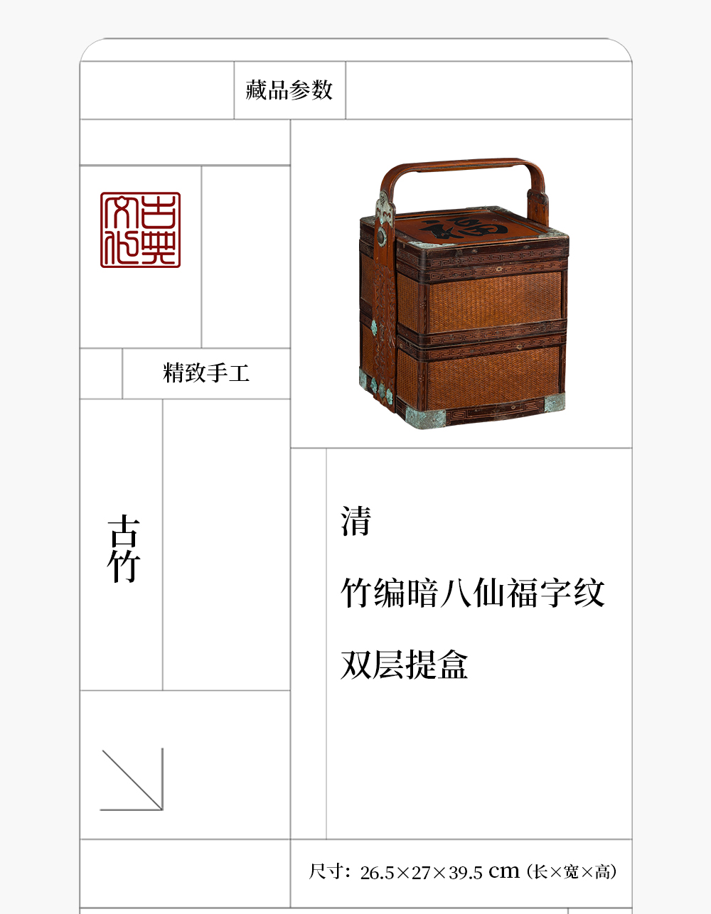 清 竹编暗八仙福字纹双层提盒