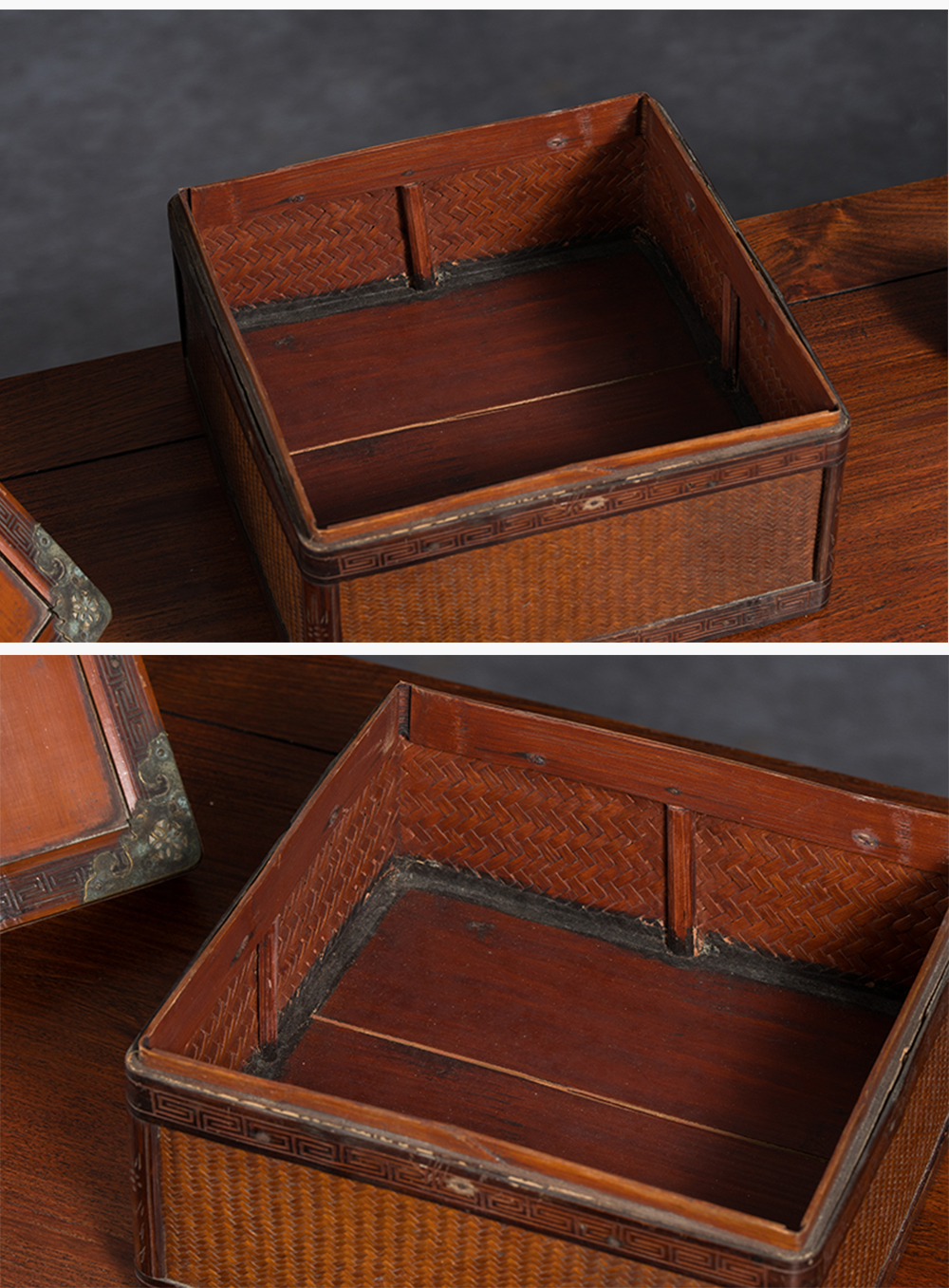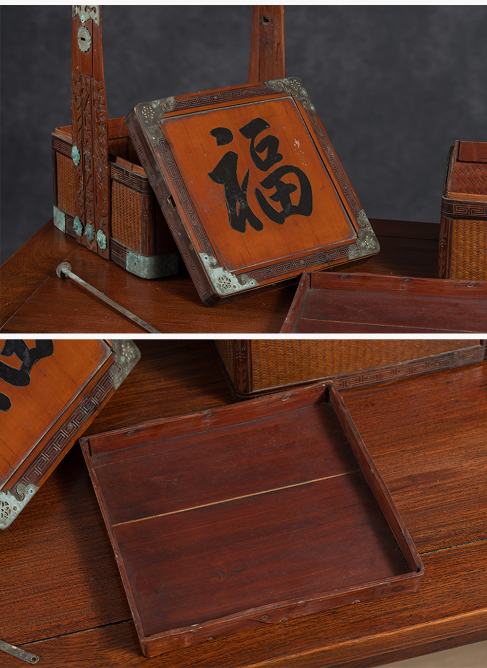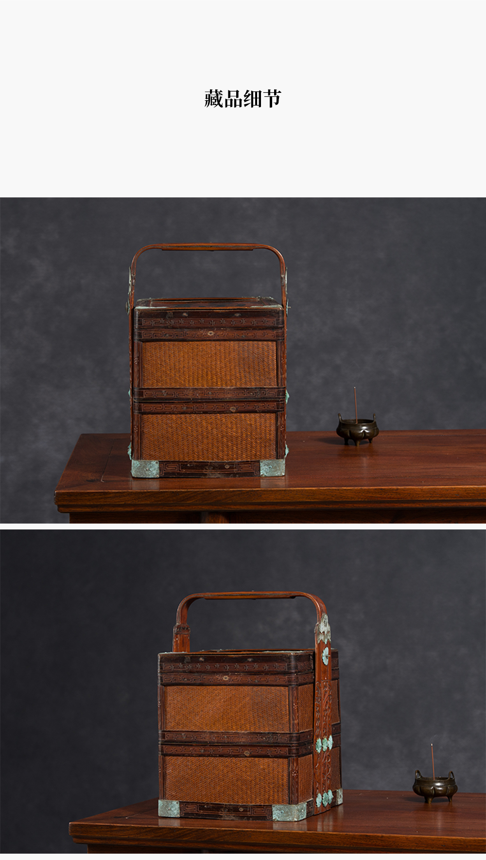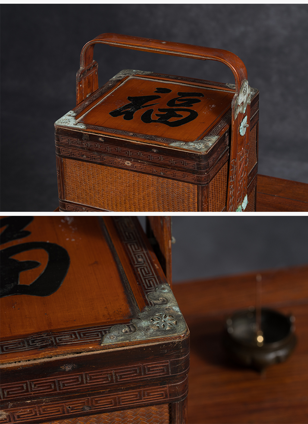 清 竹编暗八仙福字纹双层提盒