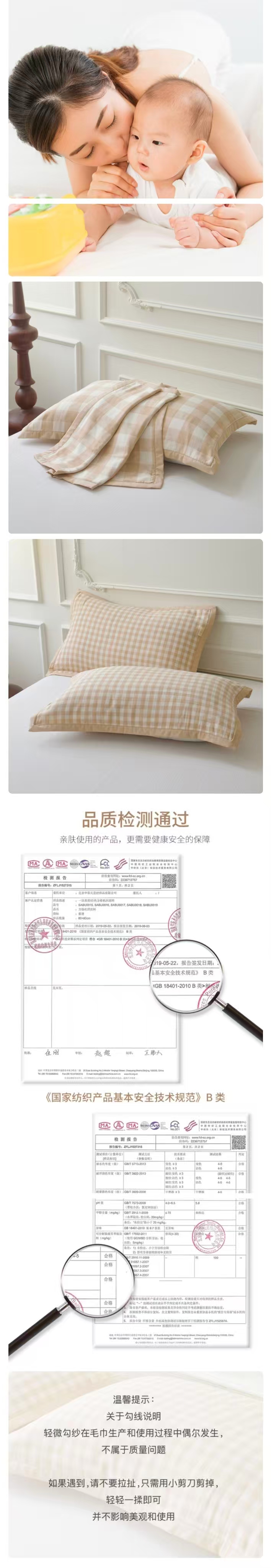 素道有机彩棉枕巾 | 2个装 棕色格子 78*52cm 五层纱布 双面可用 加宽包边工艺 透气柔软枕套