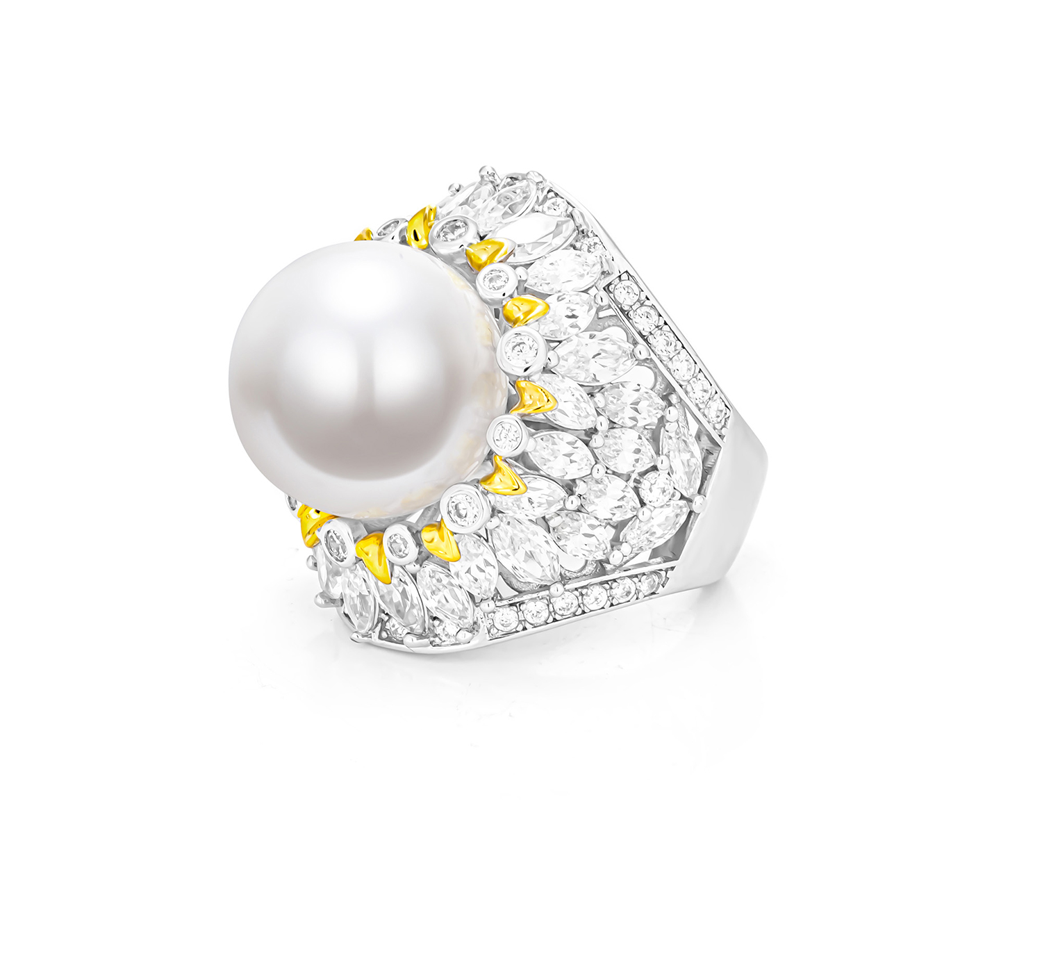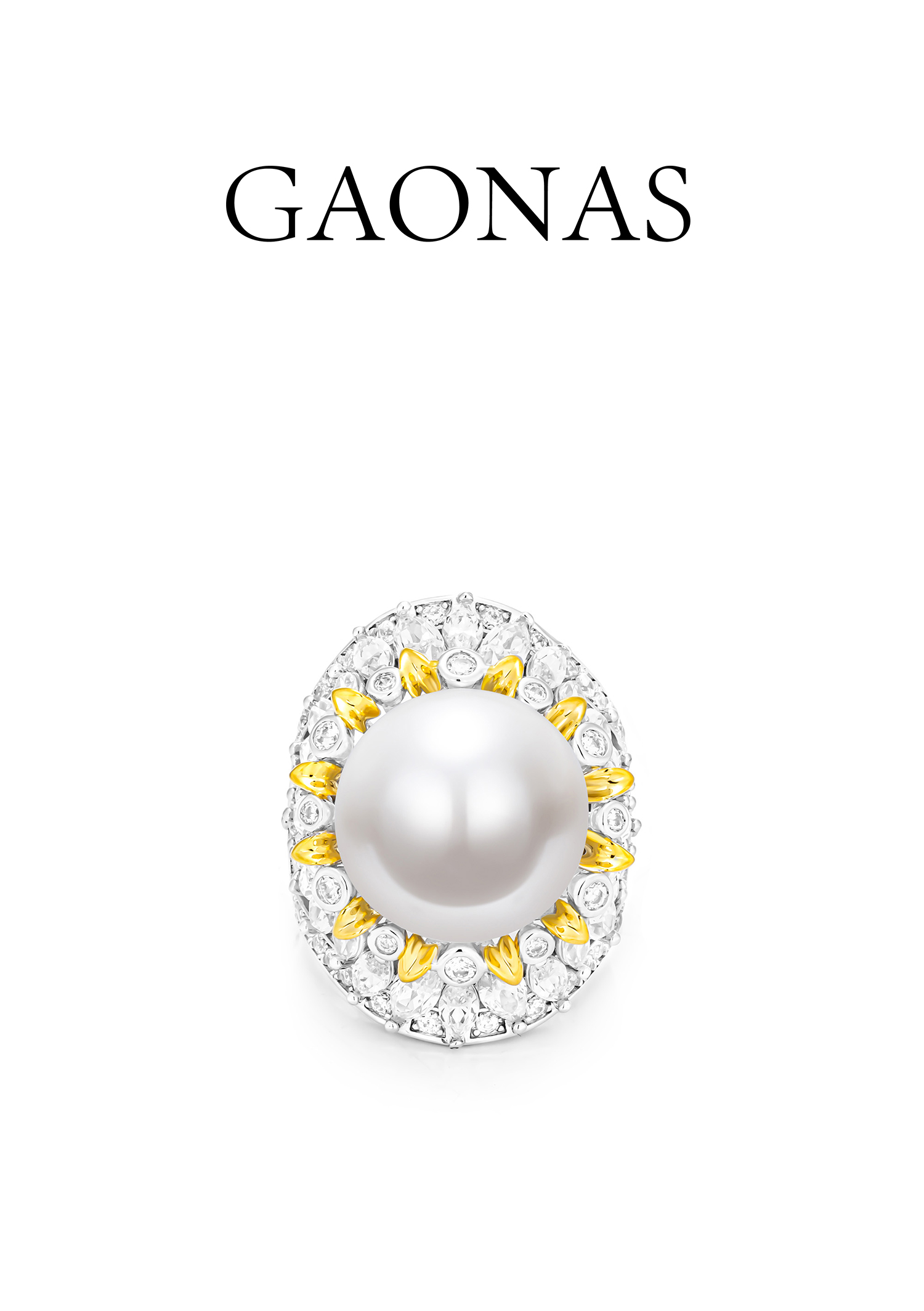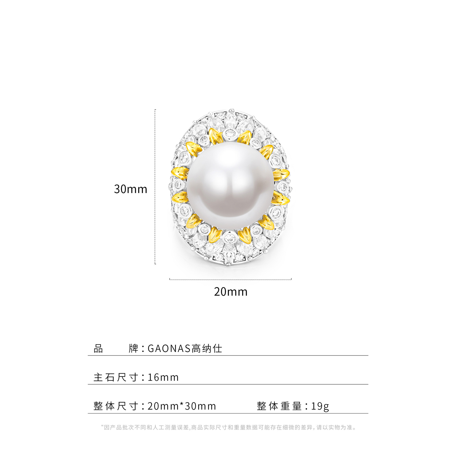 GAONAS 仿珍珠戒指 鎏金华光16mm贵气白色珠戒指11879JW
