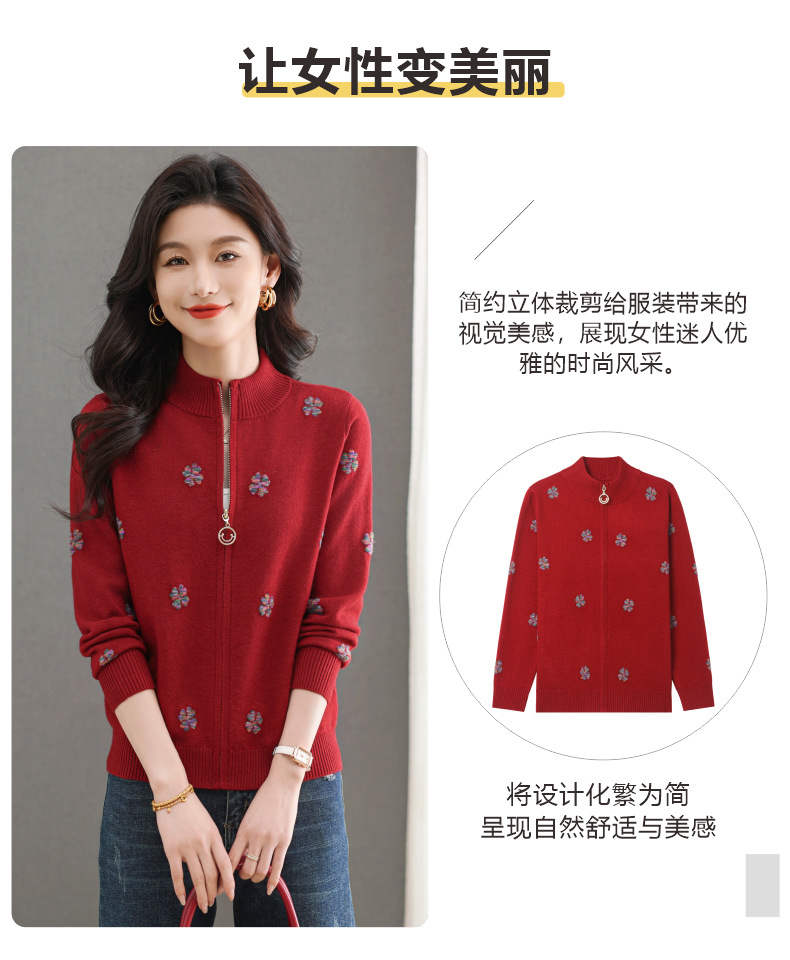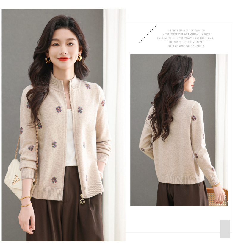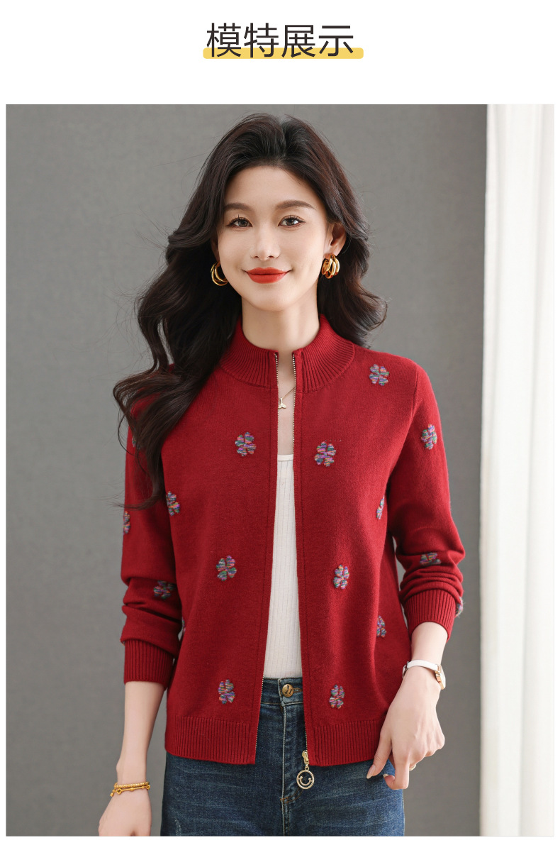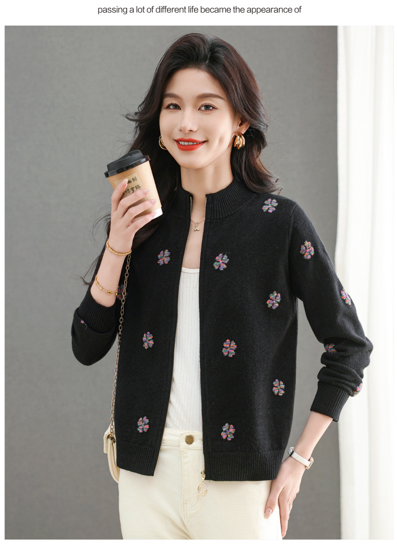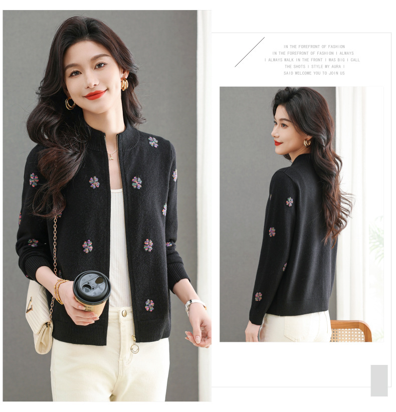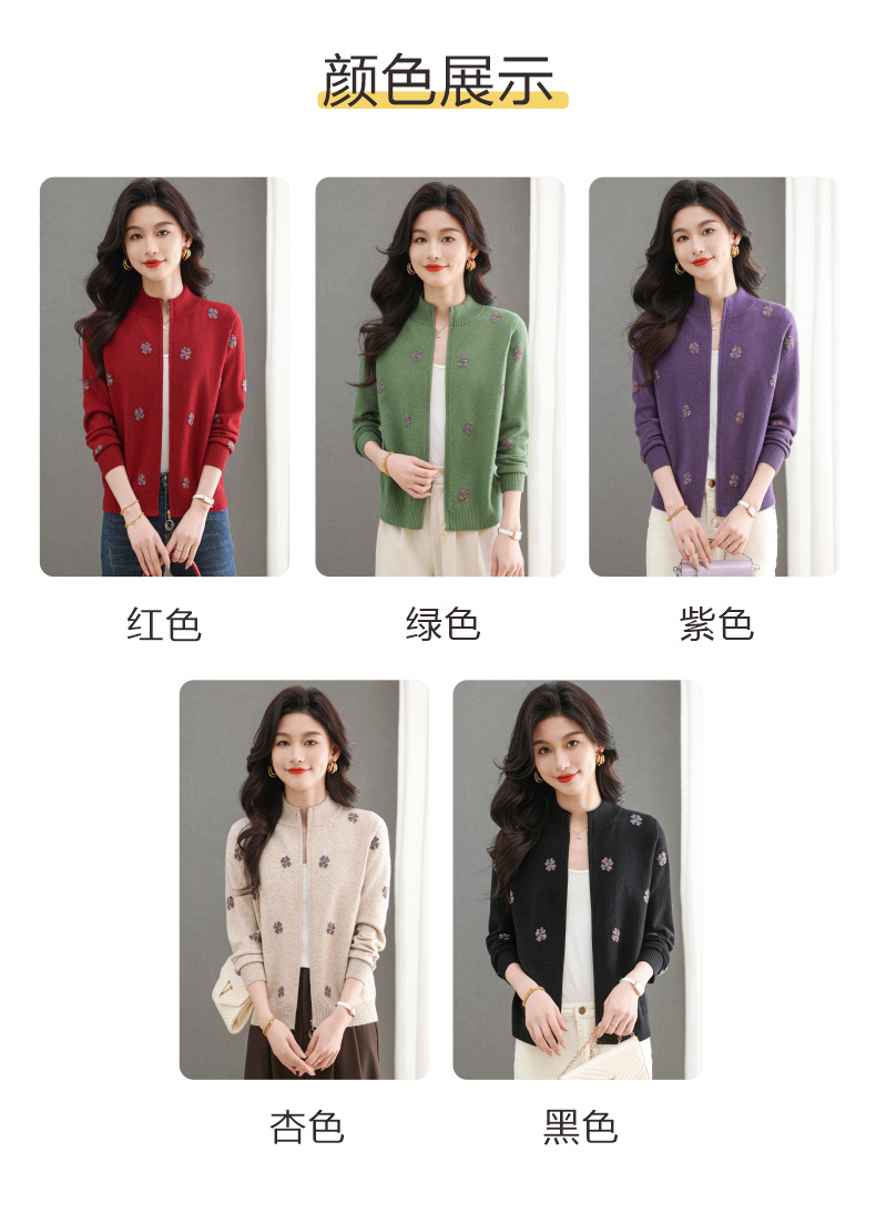 CC-101-96117立领拉链外套女士春秋2025新款短款针织开衫洋气提花上衣