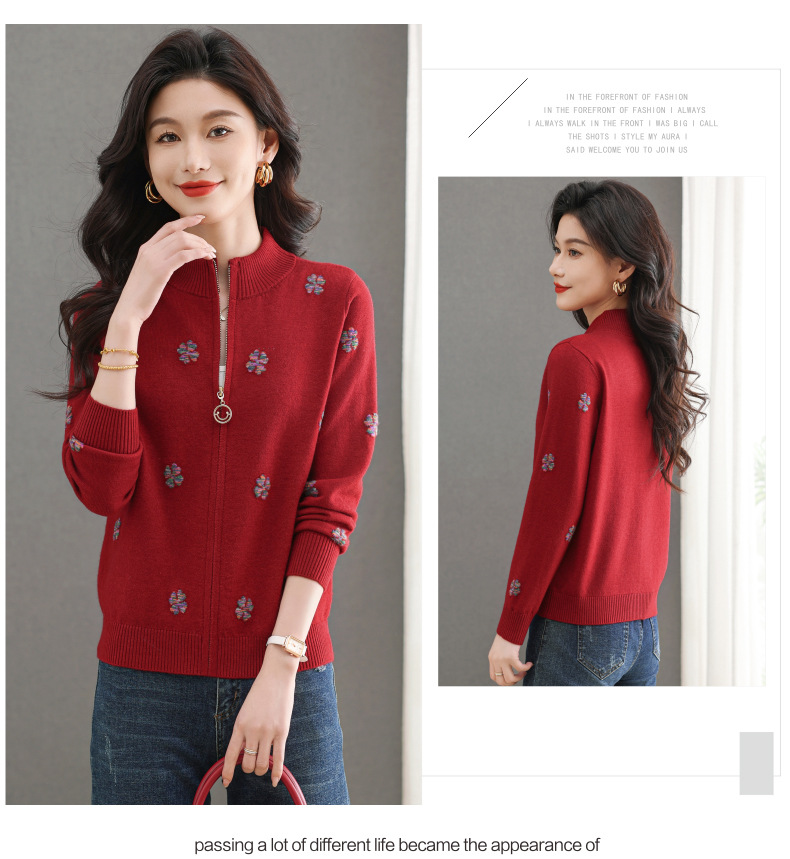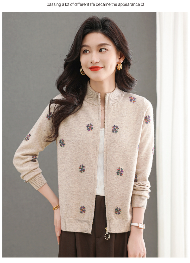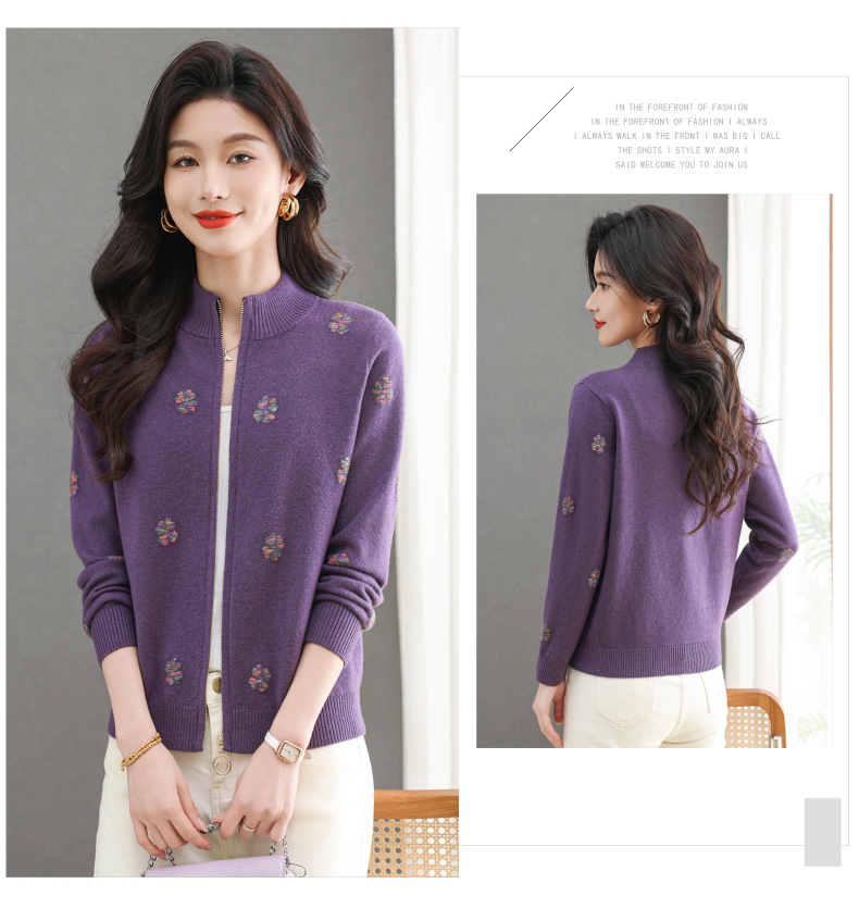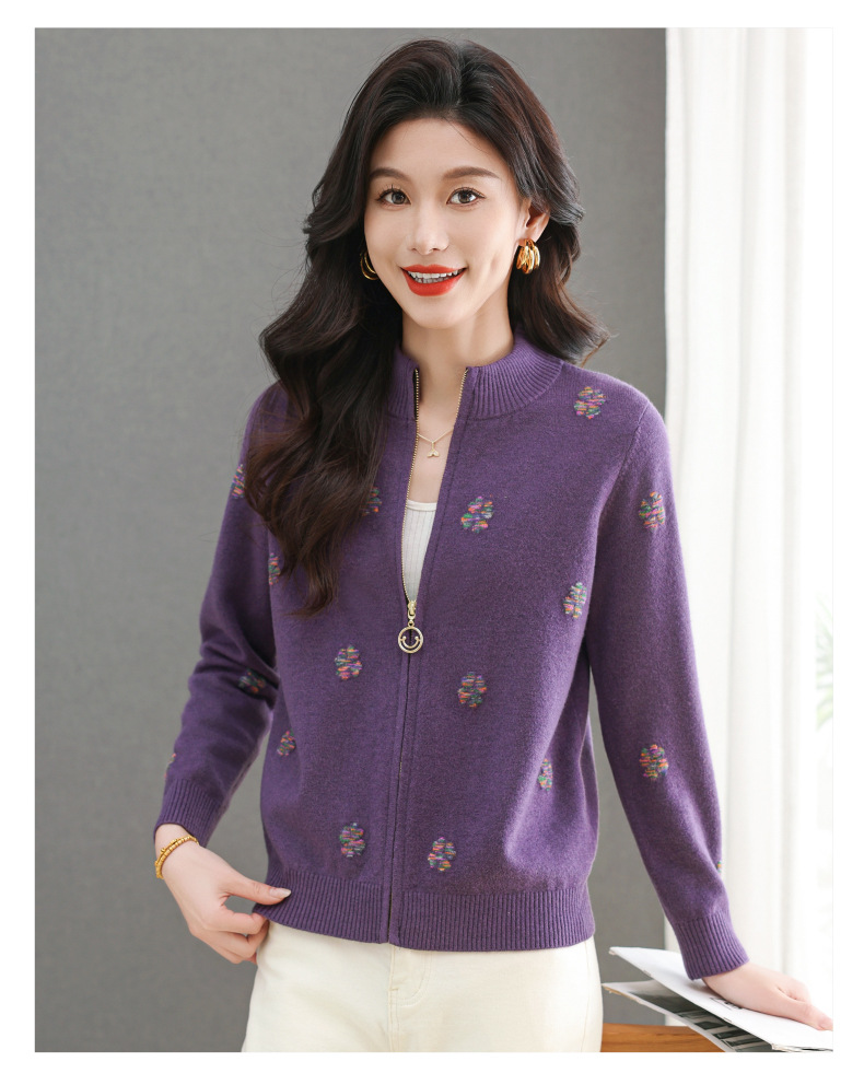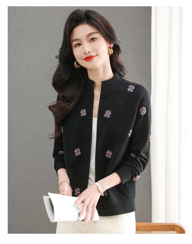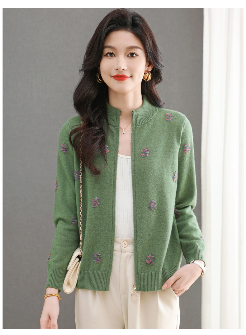 CC-101-96117立领拉链外套女士春秋2025新款短款针织开衫洋气提花上衣