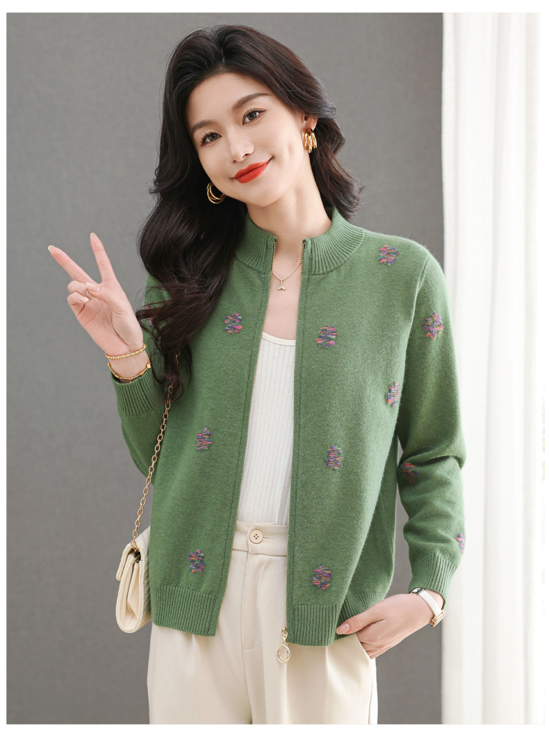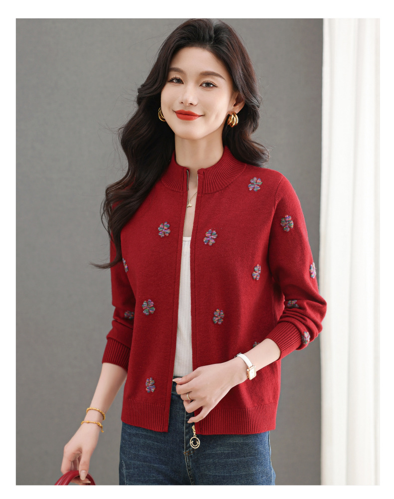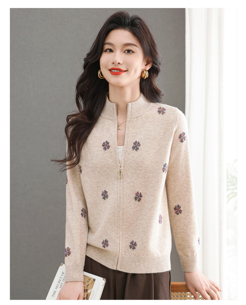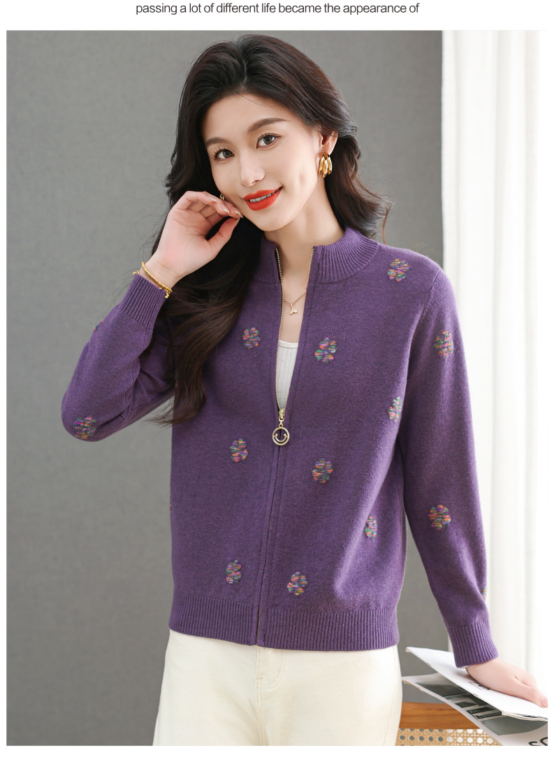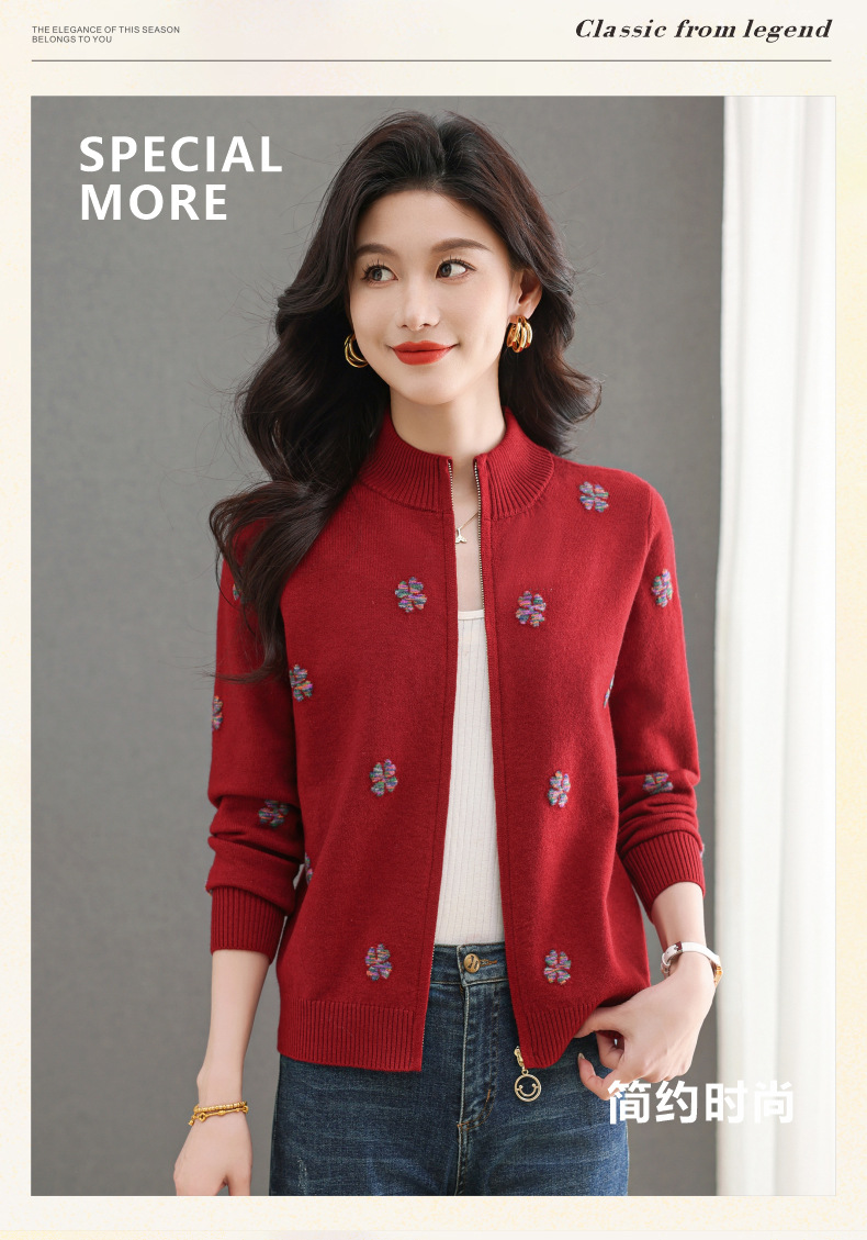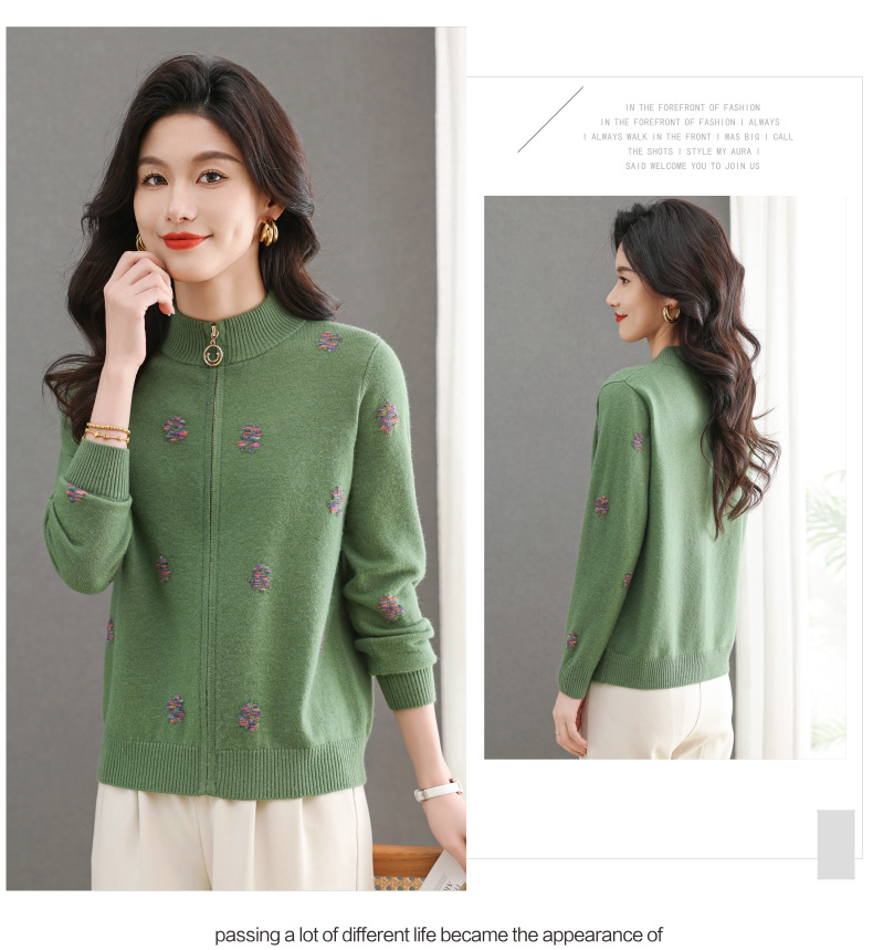 CC-101-96117立领拉链外套女士春秋2025新款短款针织开衫洋气提花上衣