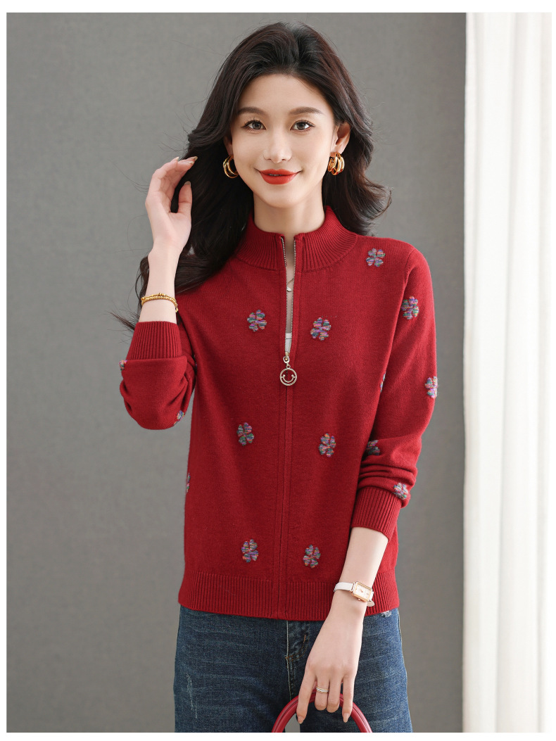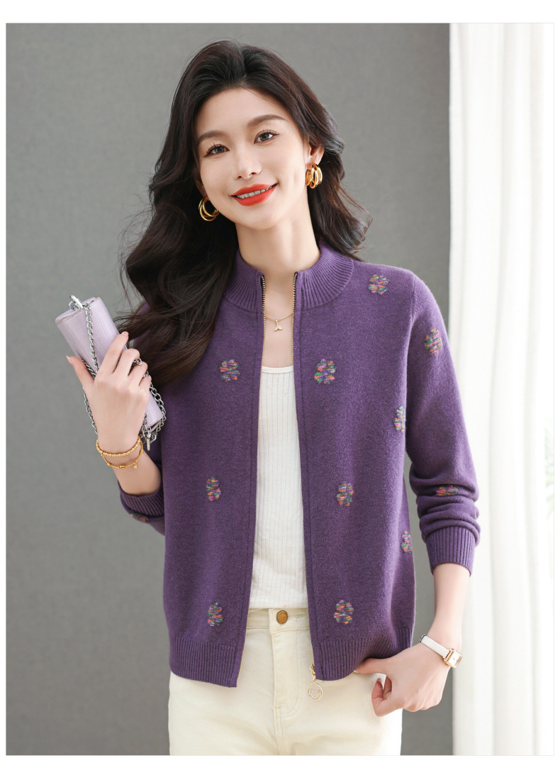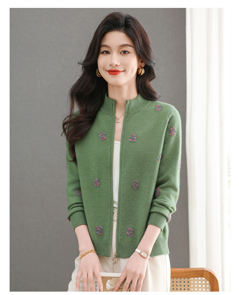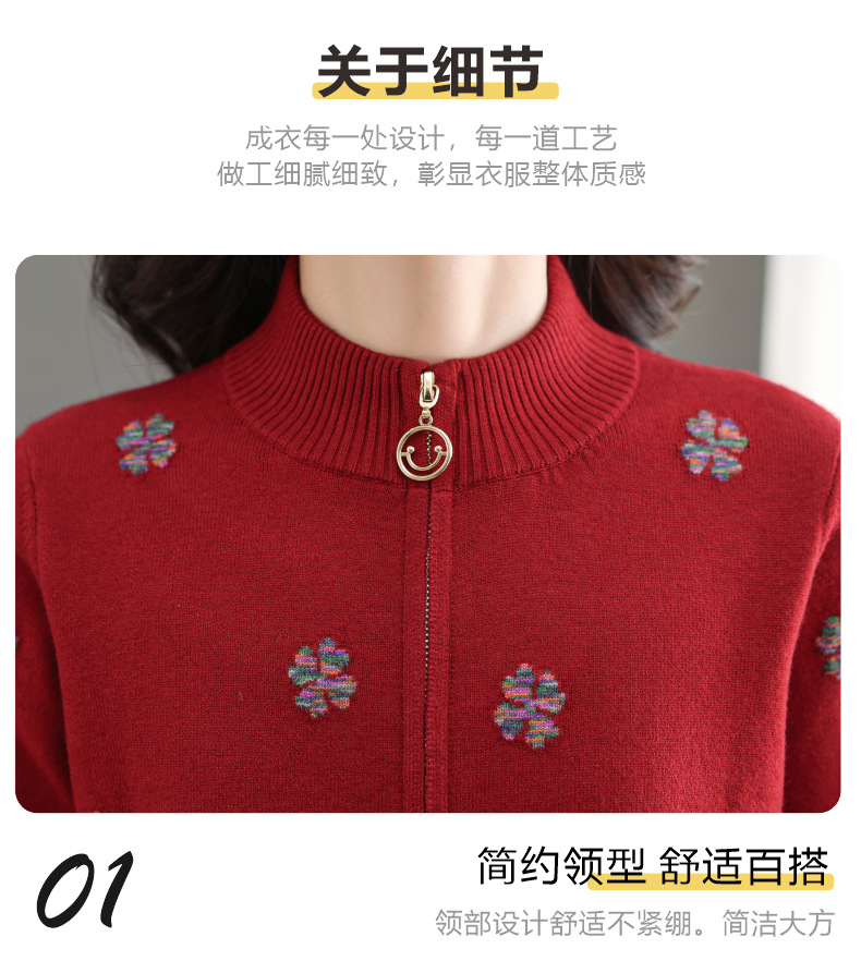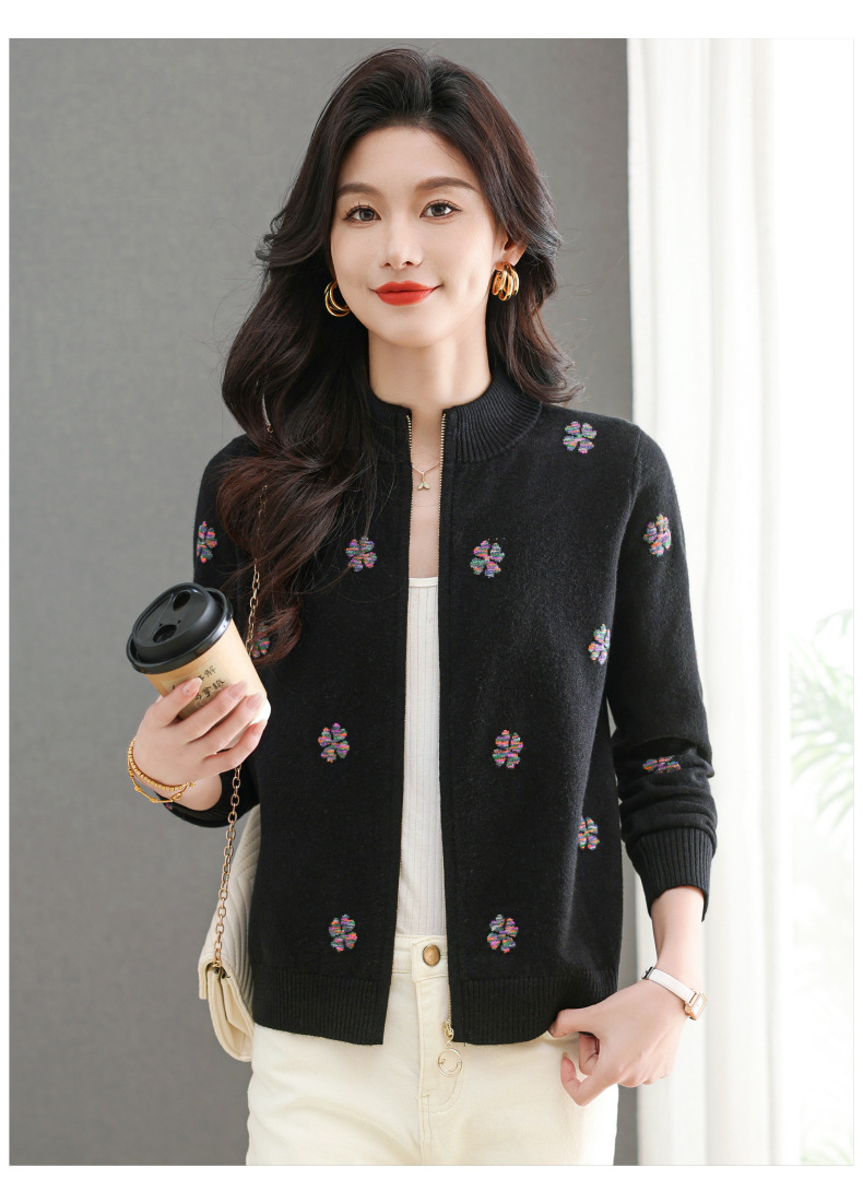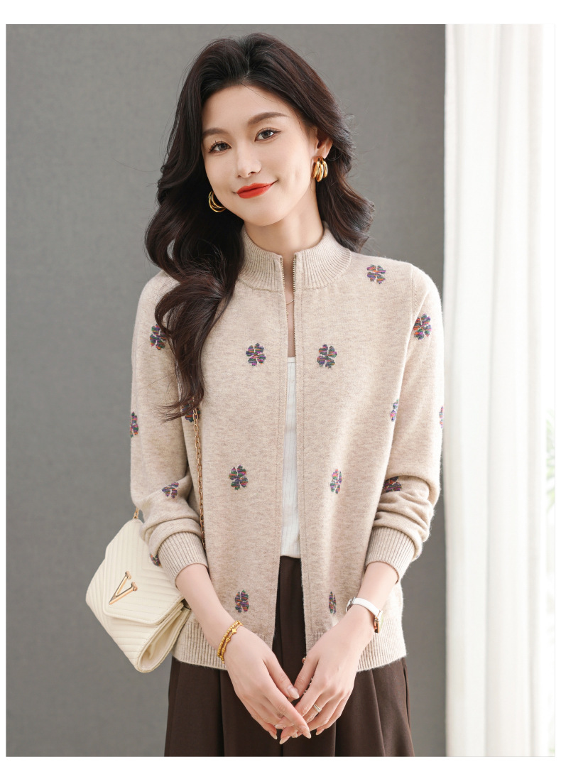 CC-101-96117立领拉链外套女士春秋2025新款短款针织开衫洋气提花上衣
