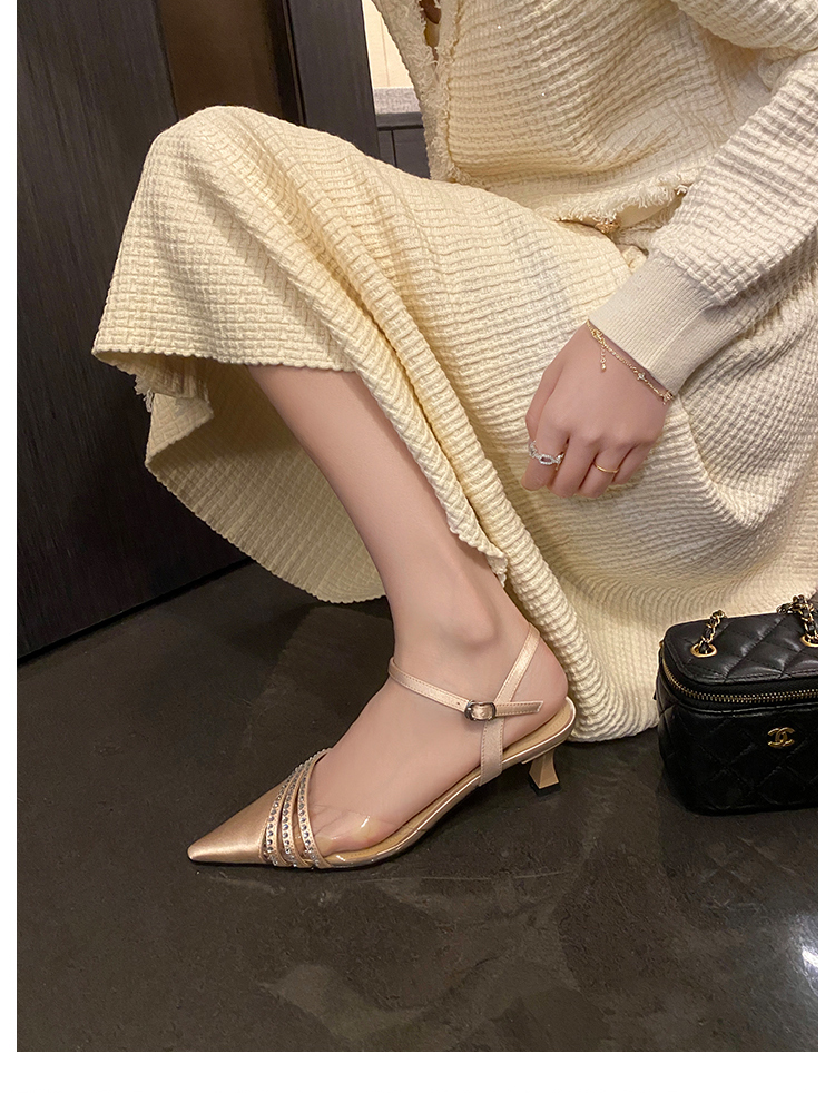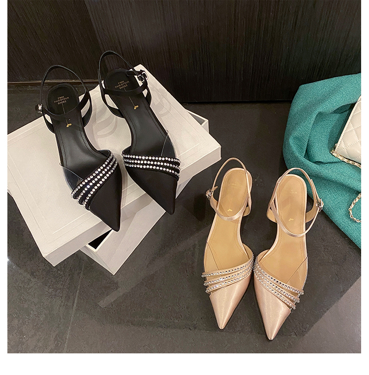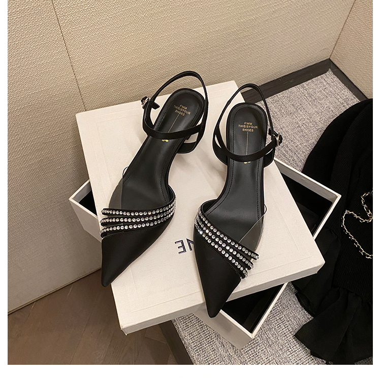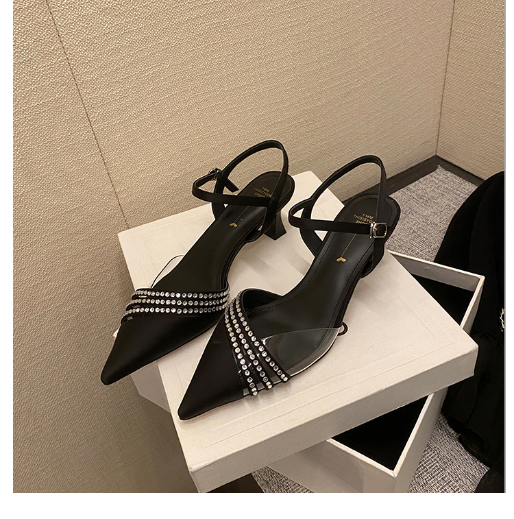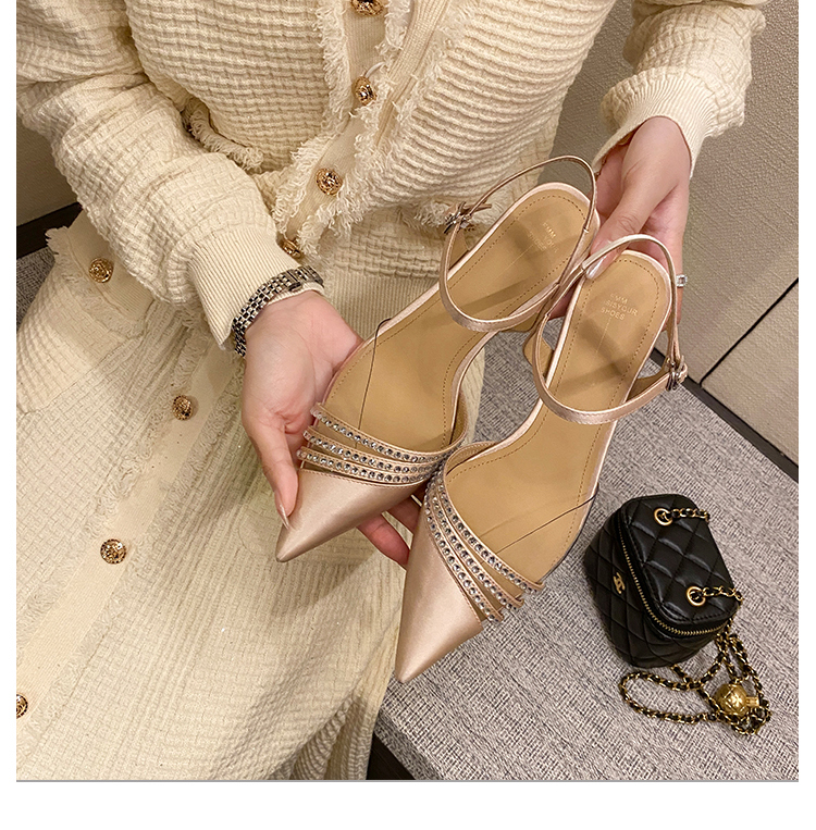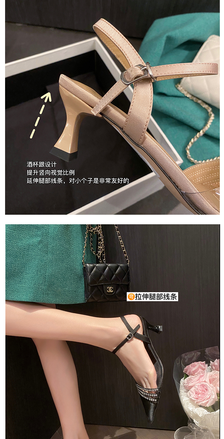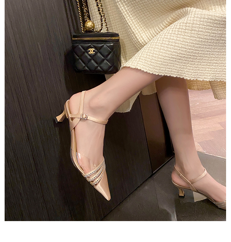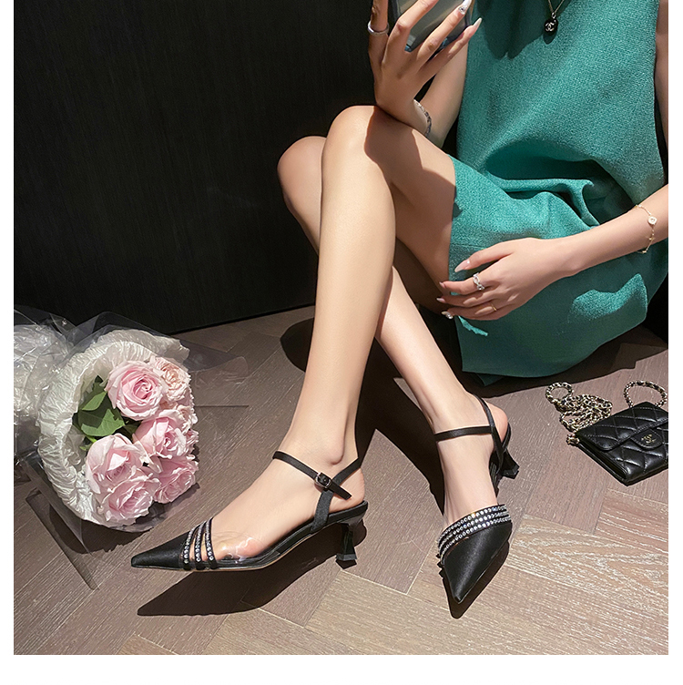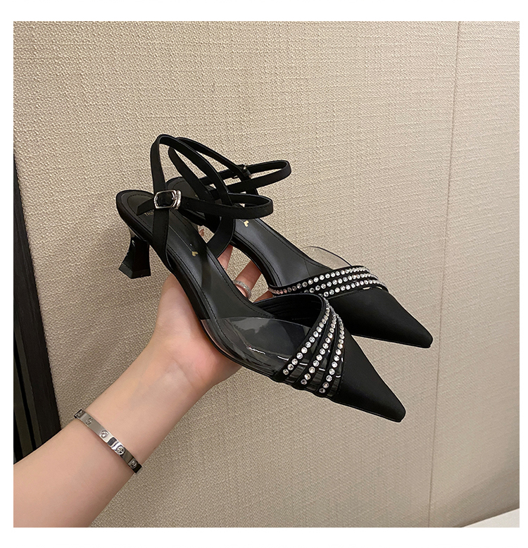 春季新款,尖头镶钻透明中跟凉鞋HCY-K3485