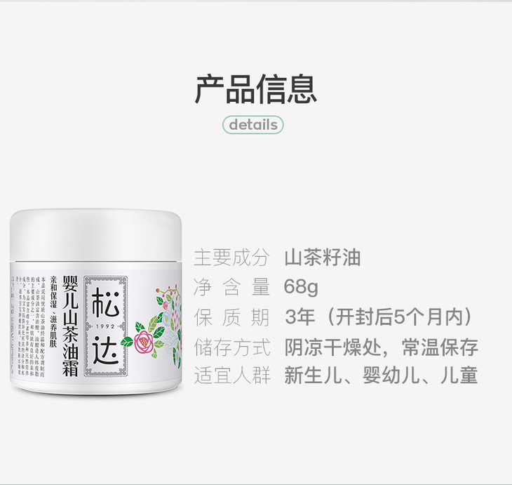 松达婴儿山茶油霜 68g婴幼儿童润肤面霜