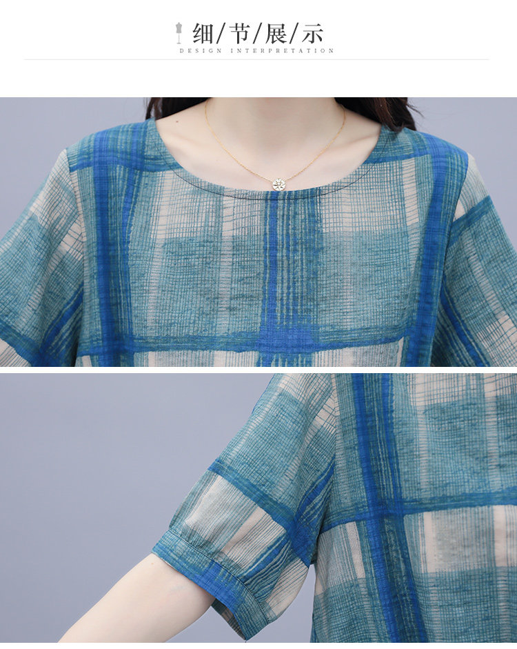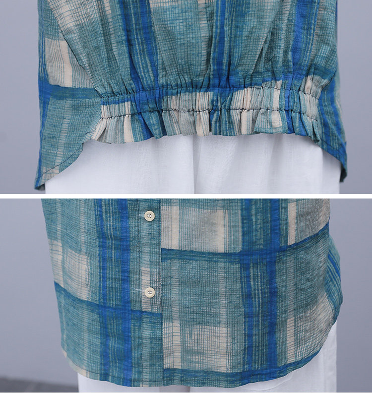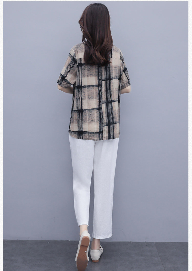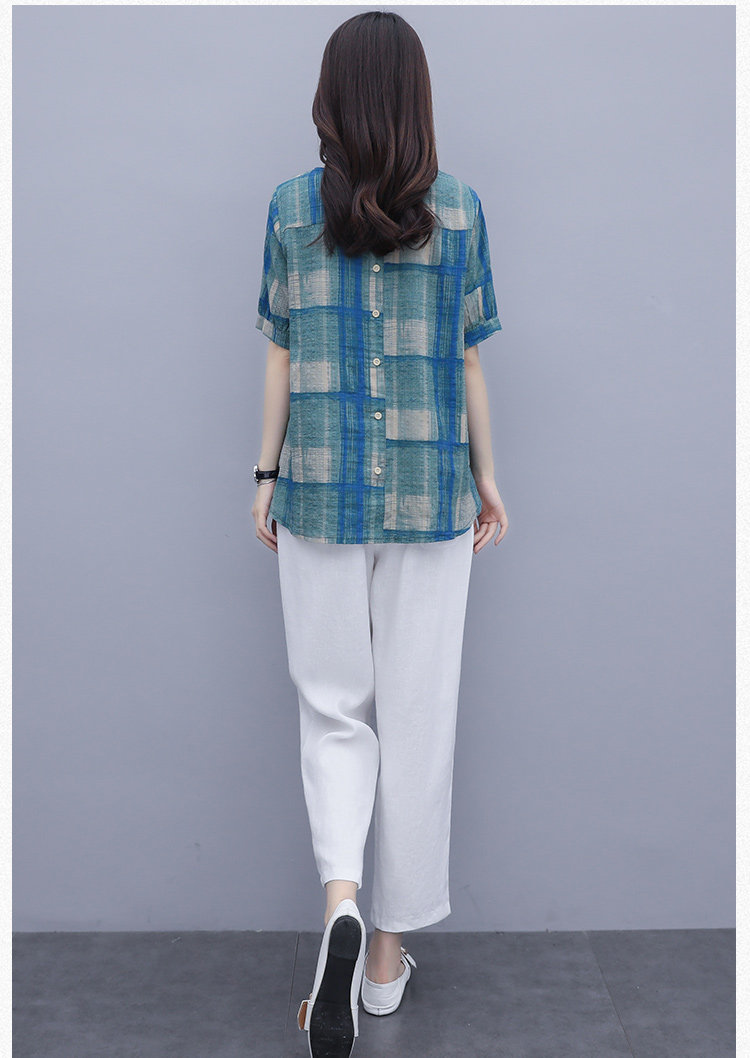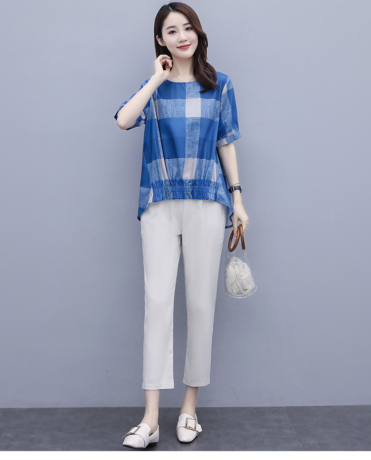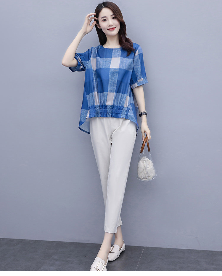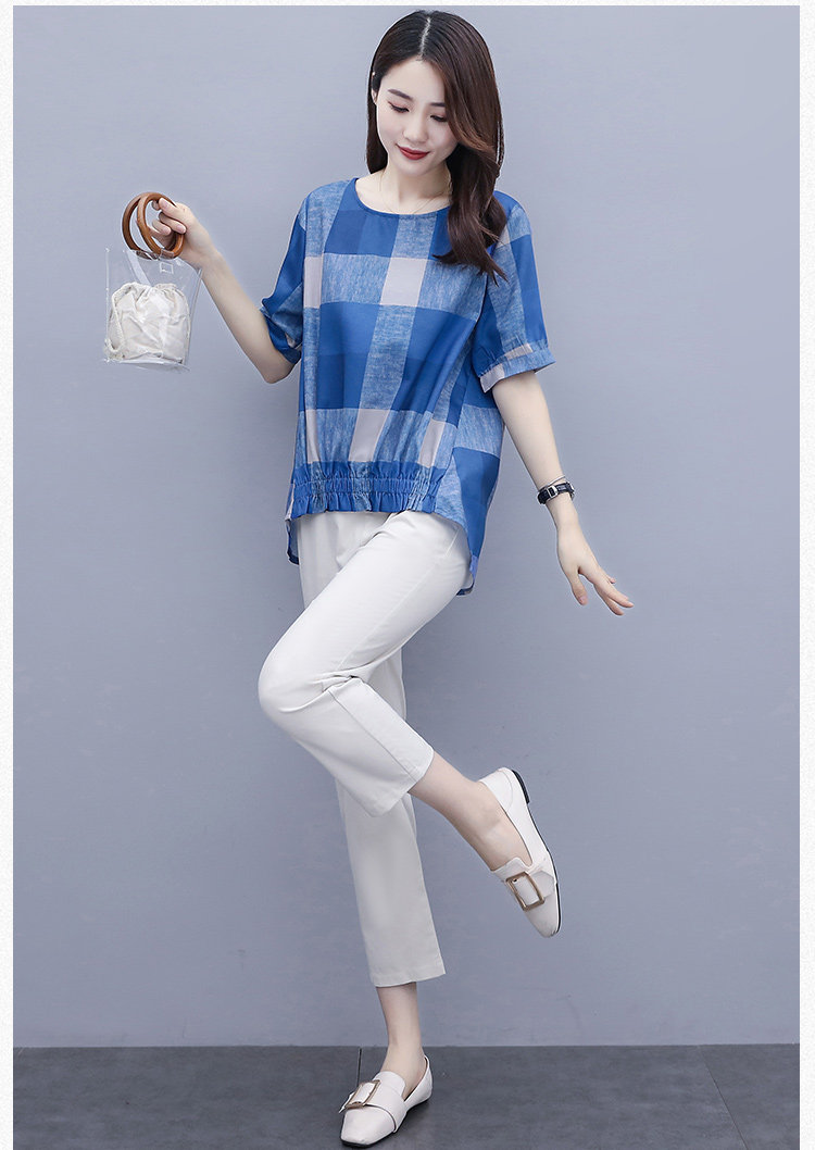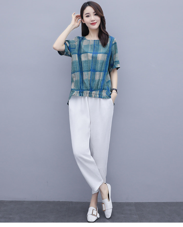WZNH-WJ20359新品抽褶格纹棉麻休闲时尚两件套装