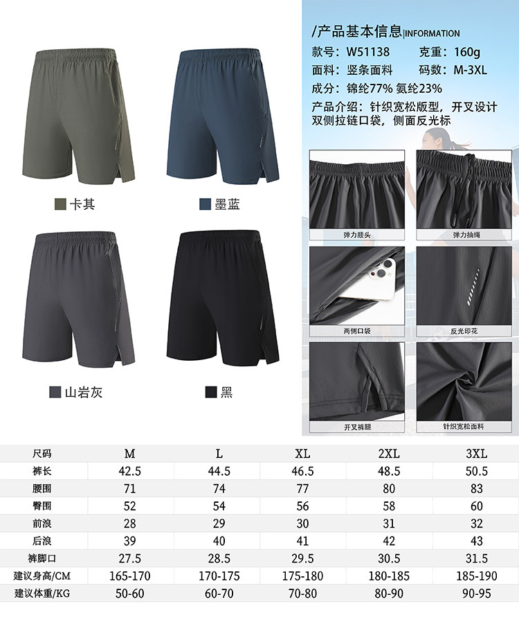 跃牌【跃LEAP-ACTIVE】 男士夏速干冰丝透气跑步篮球训练运动五分裤宽松休闲短裤W51138
