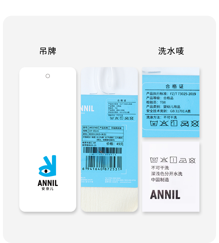 【实体店同款】男女童中袜两双装秋季新款安奈儿童装JM537483