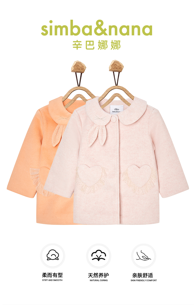 【辛巴娜娜】simbanana春秋女童毛呢子大衣女宝宝小童洋气休闲外套