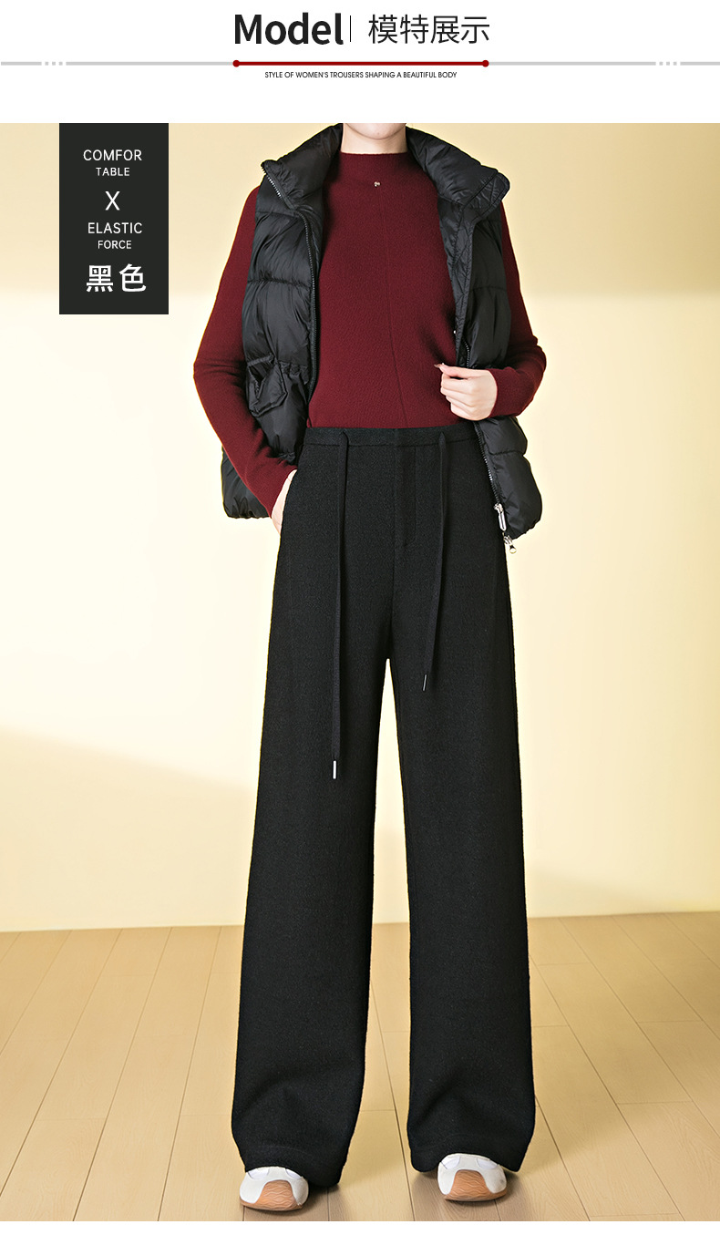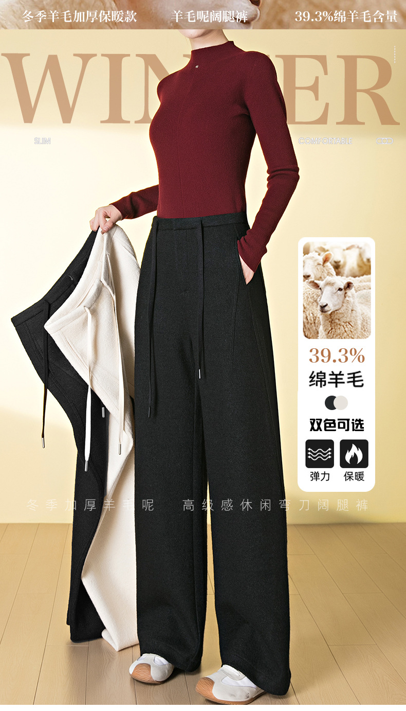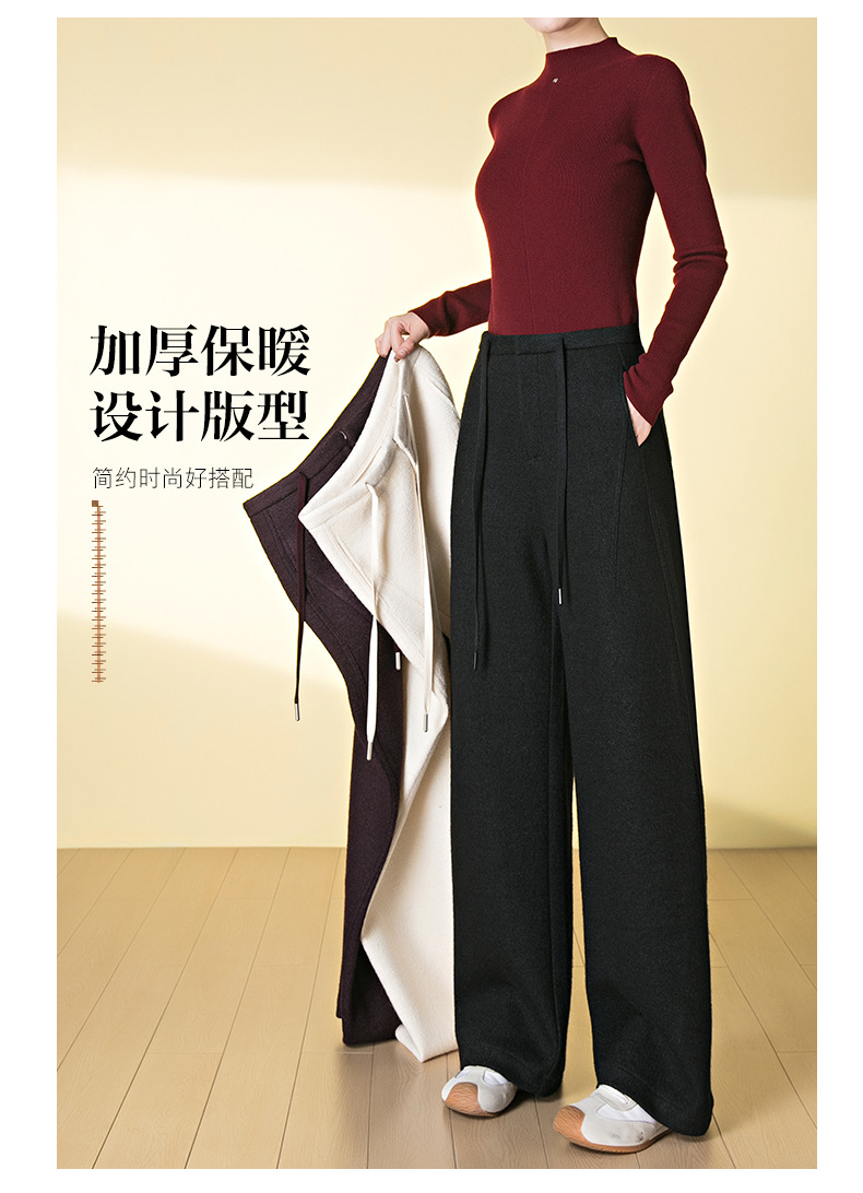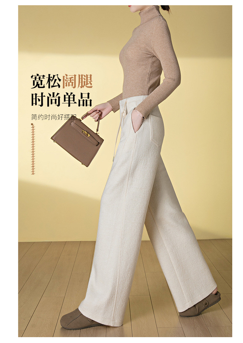 HSS 3089羊毛气质阔腿裤高腰加厚显瘦休闲弯刀裤
