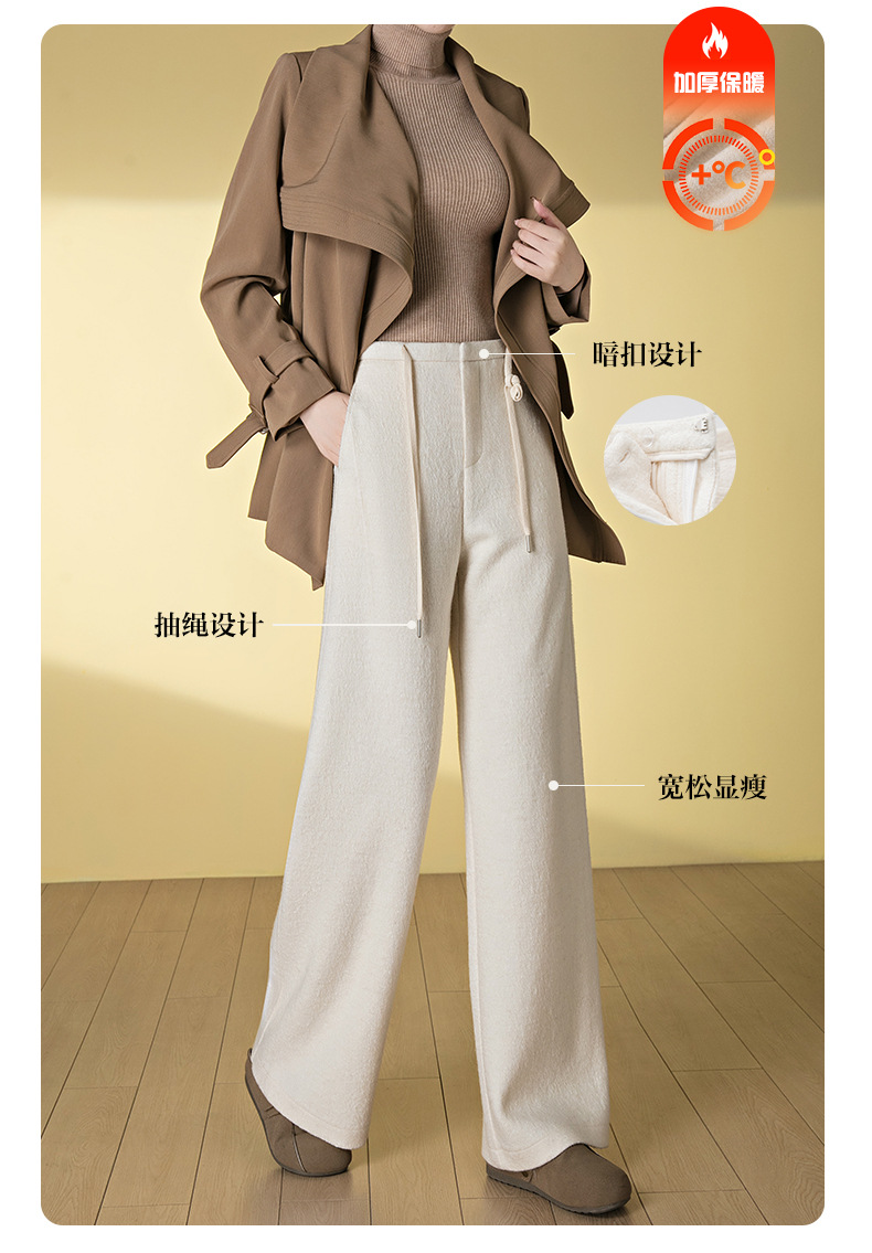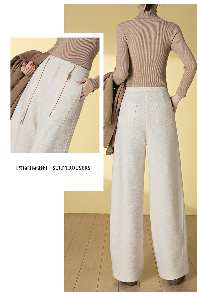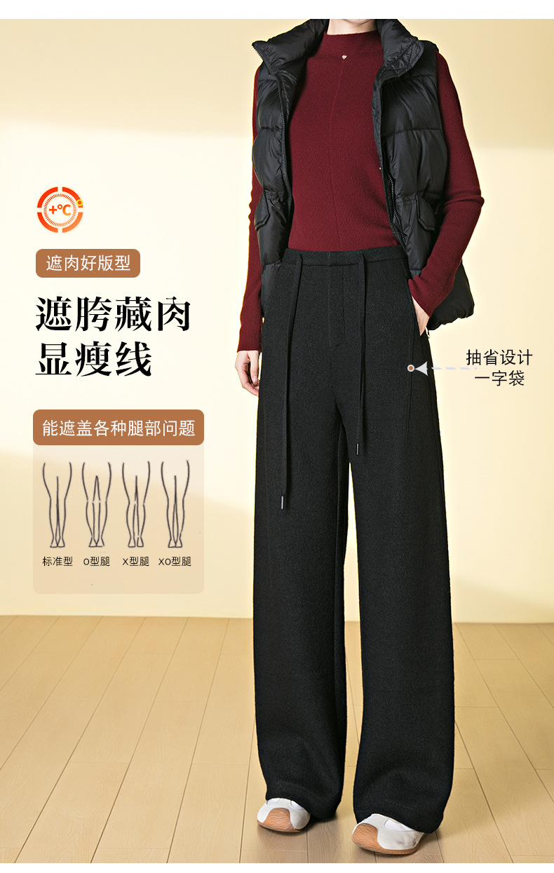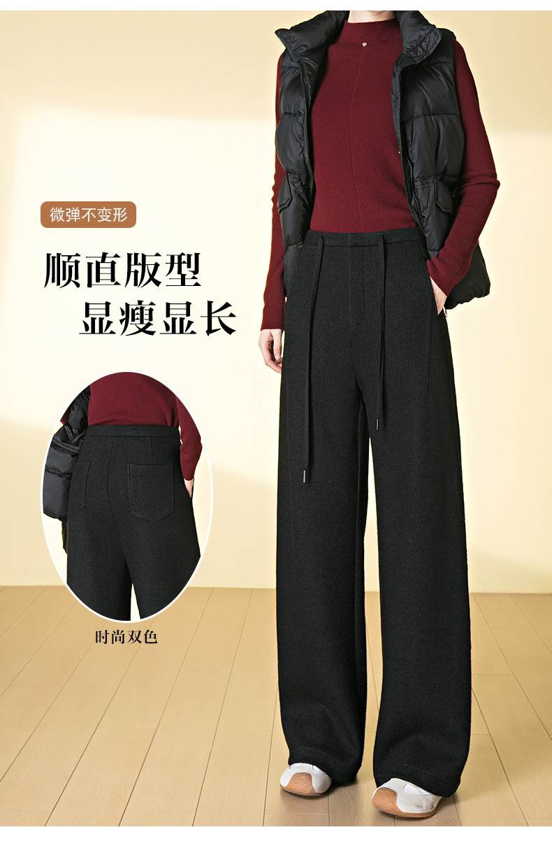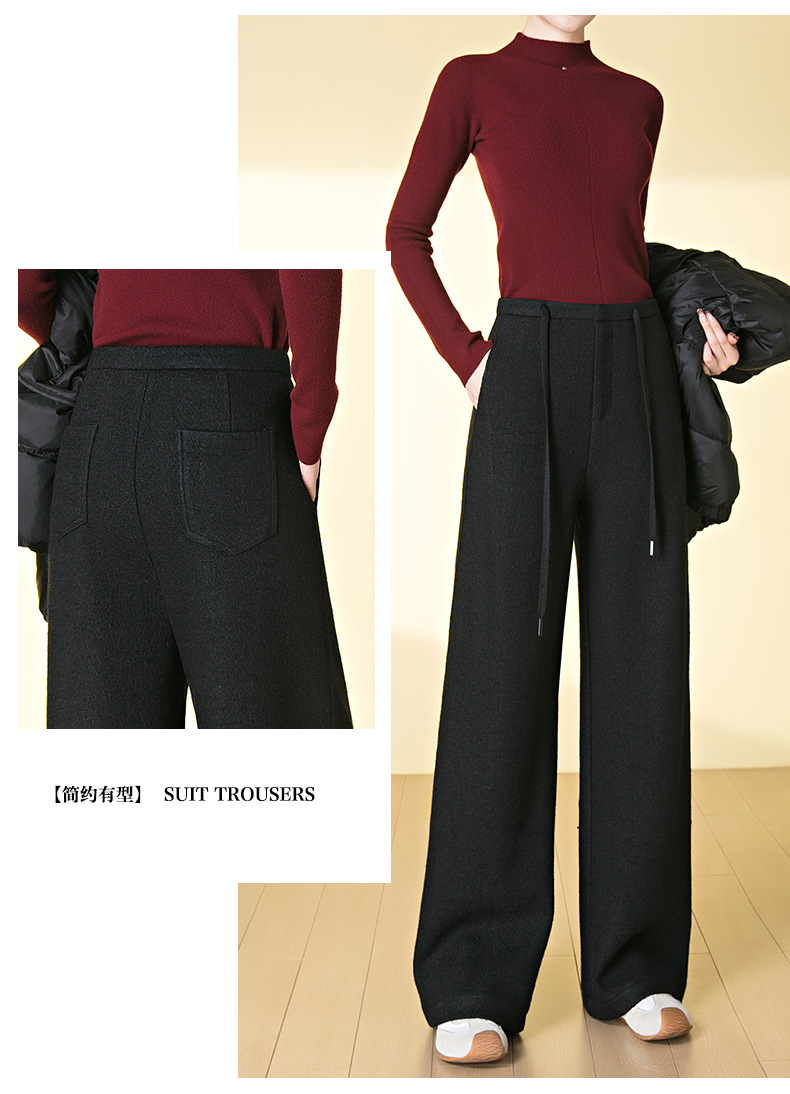 HSS 3089羊毛气质阔腿裤高腰加厚显瘦休闲弯刀裤