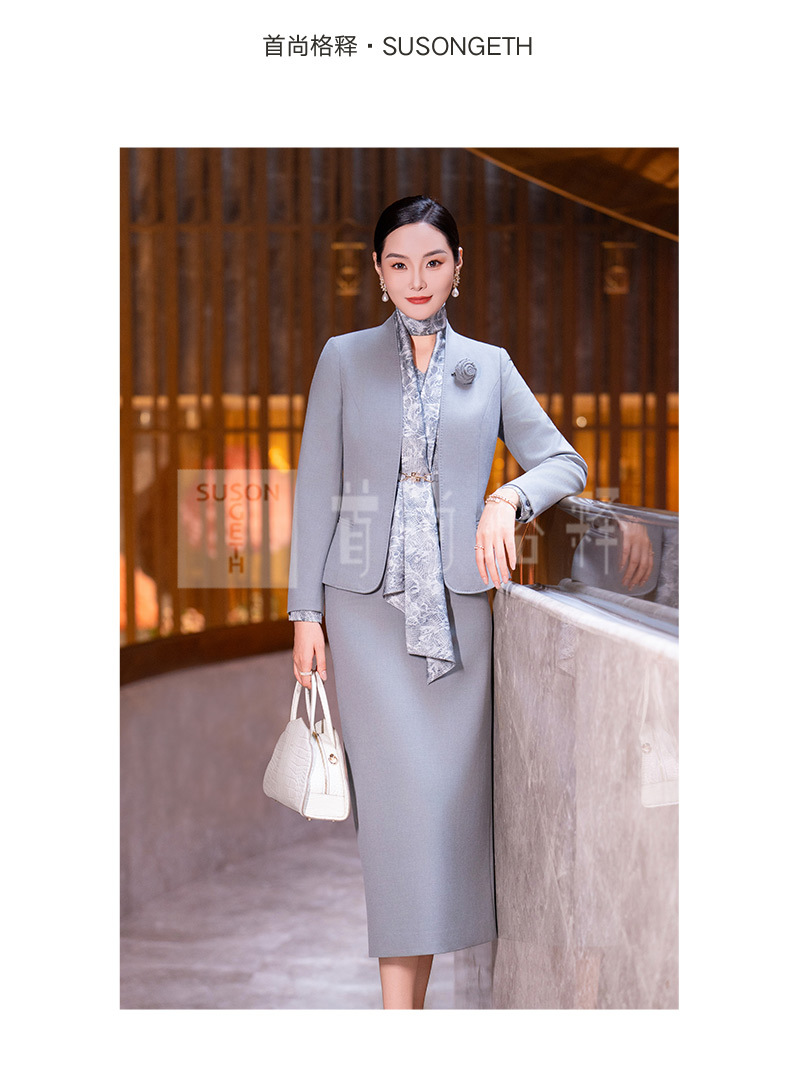 YBY 905H15时尚毛呢套装裙气质通勤西装外套连衣裙两件套