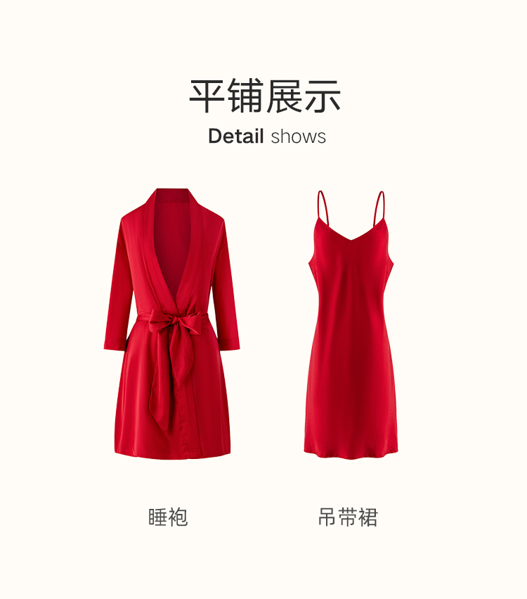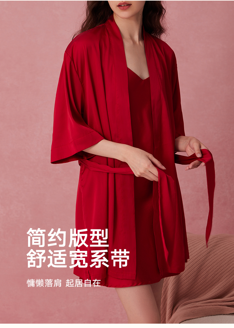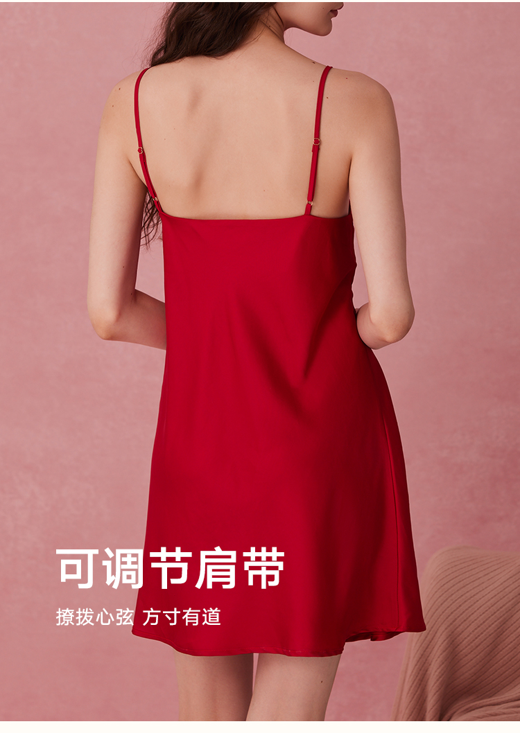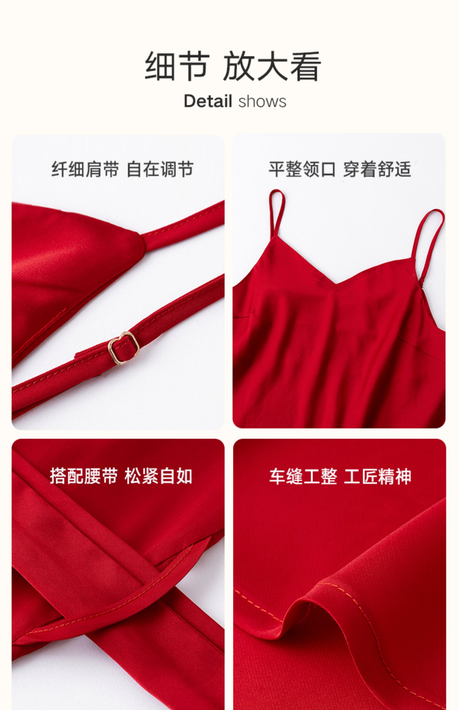 弗利少女睡衣女款家居服吊带结婚本命年红色性感缎面睡袍睡裙套装