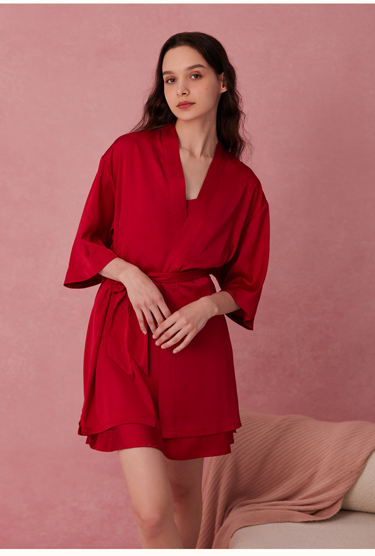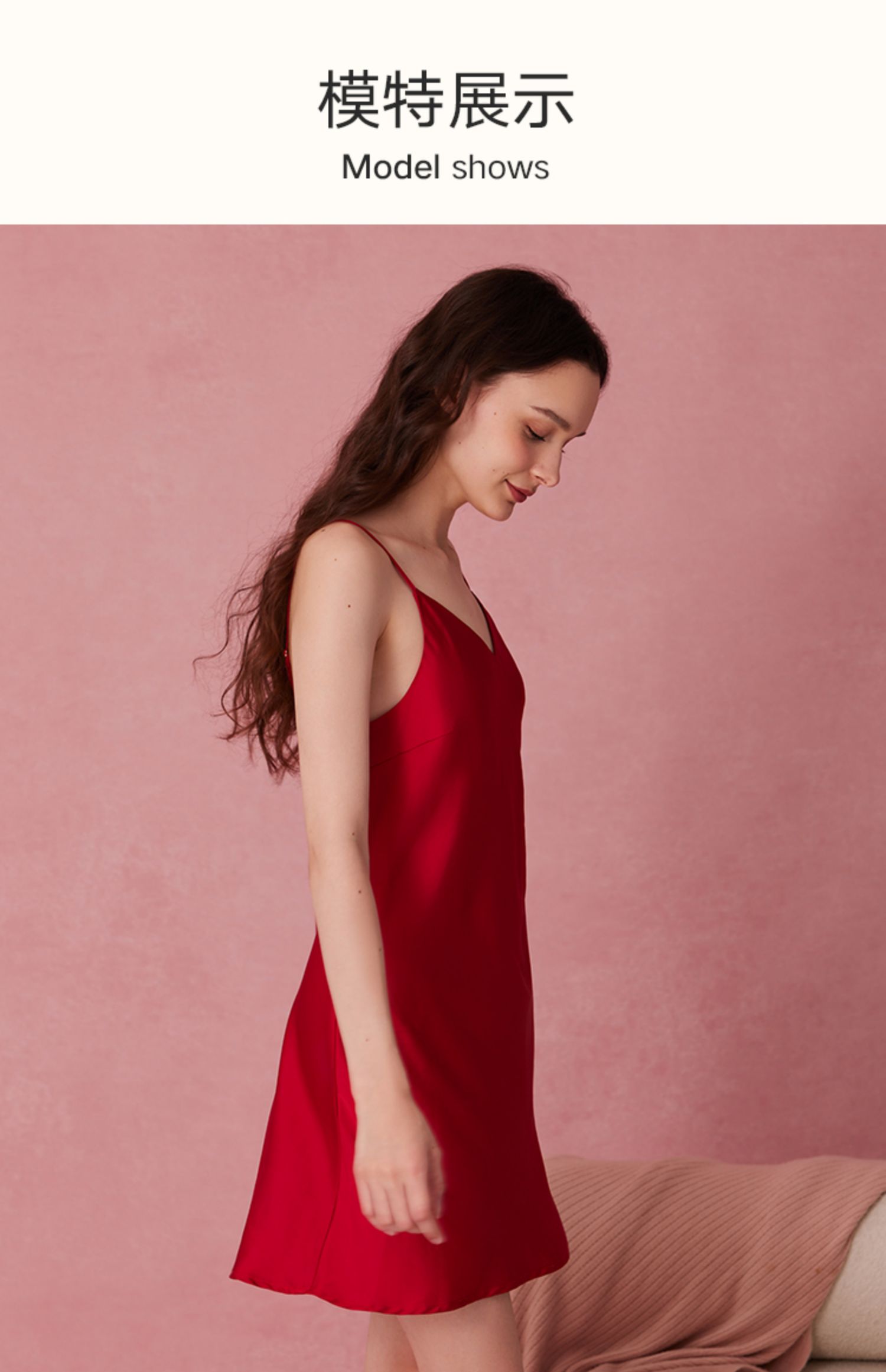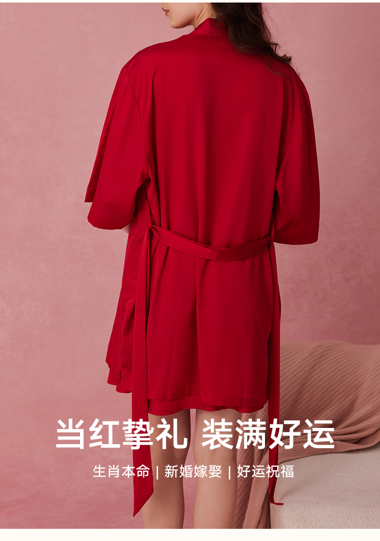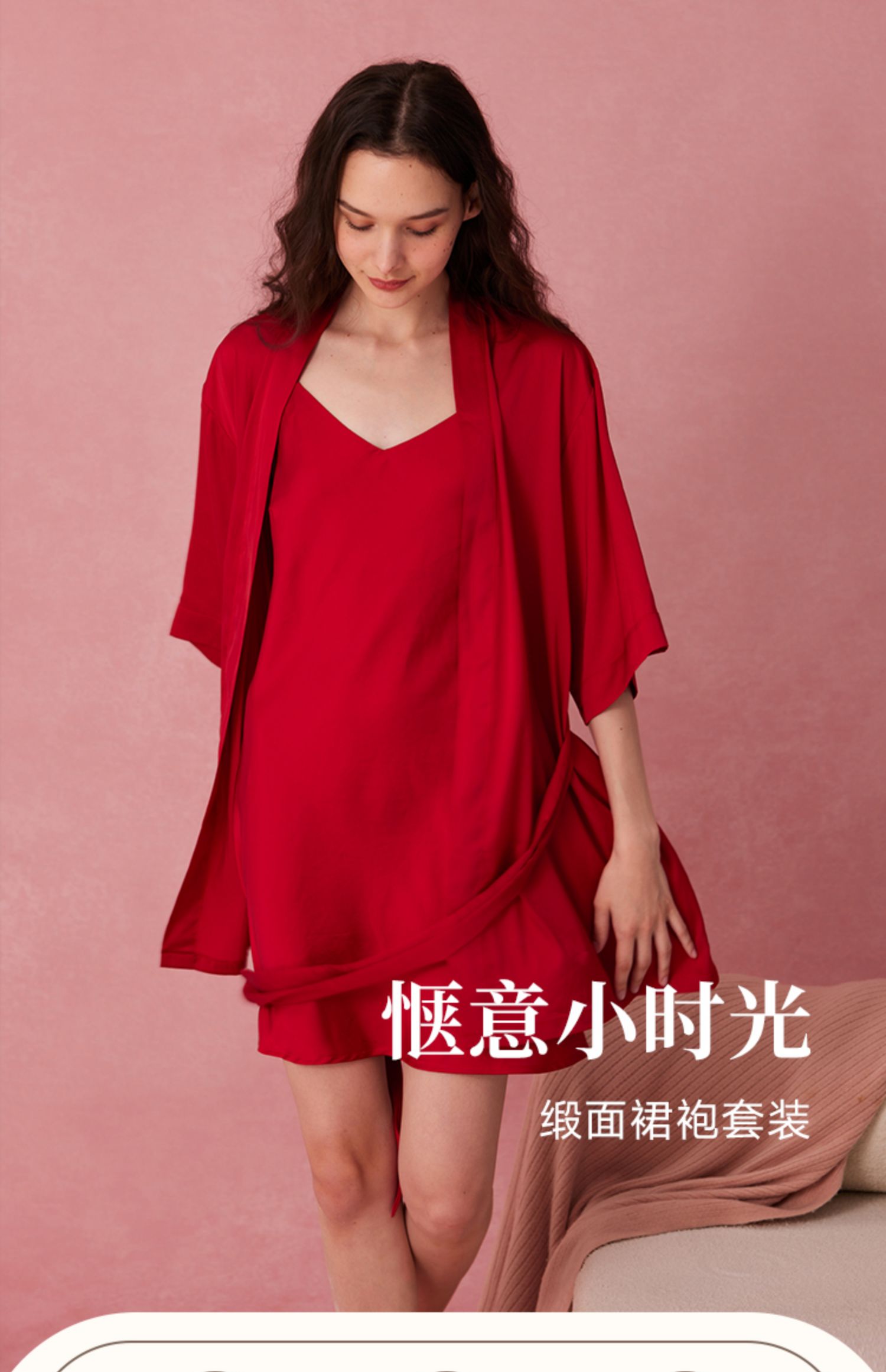 弗利少女睡衣女款家居服吊带结婚本命年红色性感缎面睡袍睡裙套装