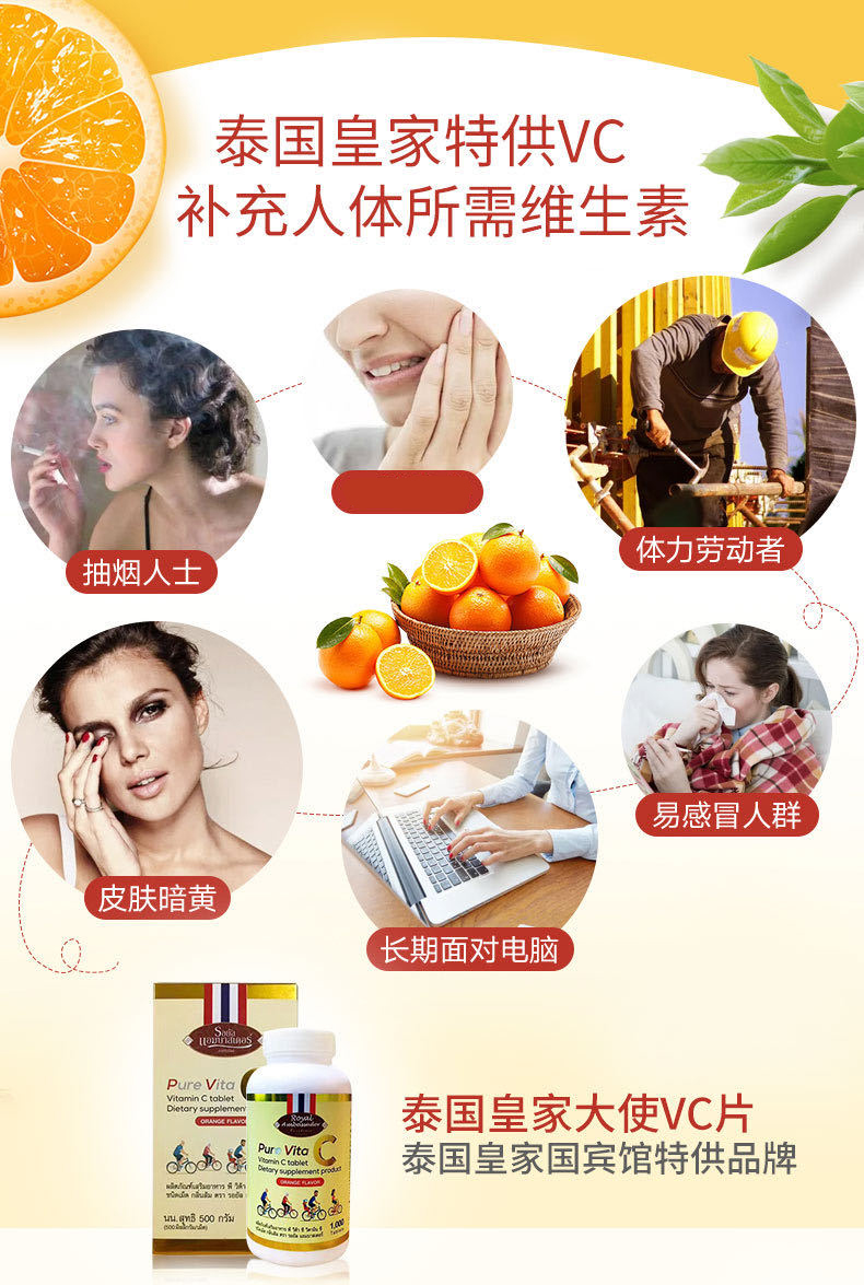 泰国进口vc咀嚼片维C皇家大使成人儿童维生素C增强体质免疫力正品