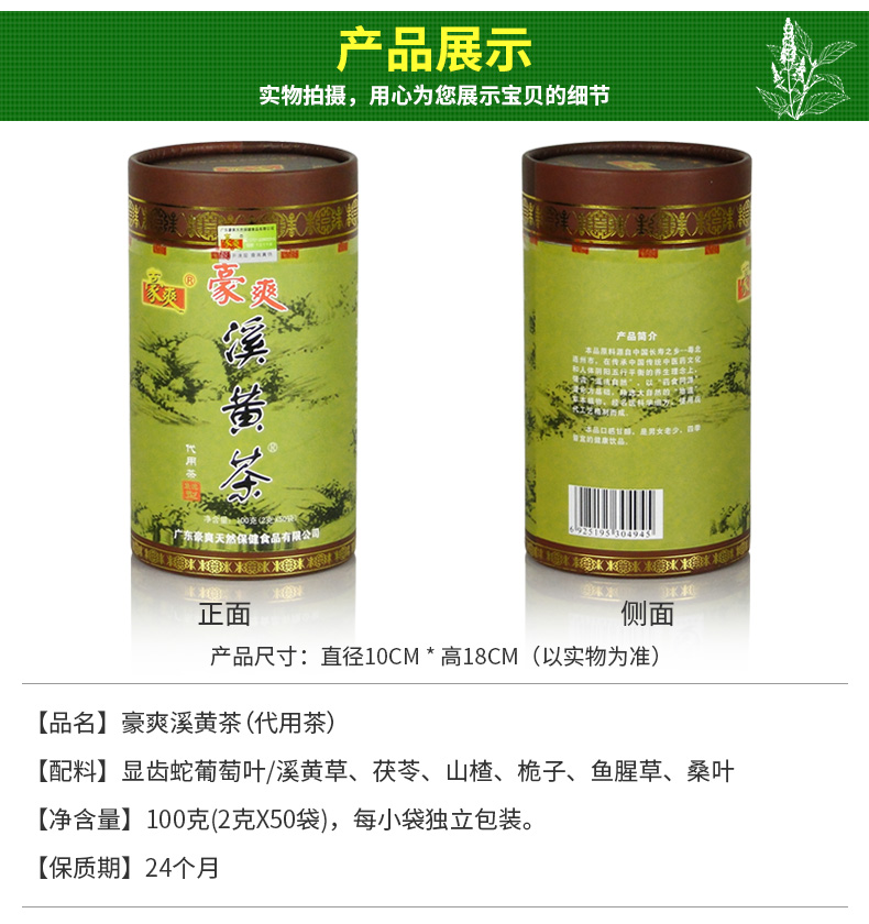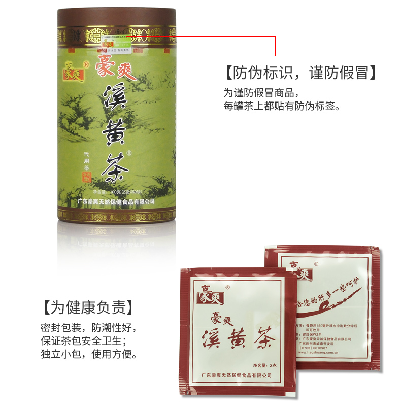 【地标产品】豪爽溪黄茶50袋绿罐装袋泡茶可搭养生茶旰火旺盛养旰之选清旰之火心情舒畅连州溪黄草茶粤北广东特产凉茶100g (2g*50袋)/罐