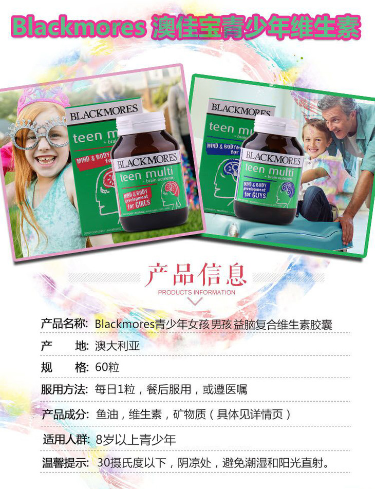【海外直邮】Blackmores /澳佳宝 青少年男孩复合维生素营养片 60粒