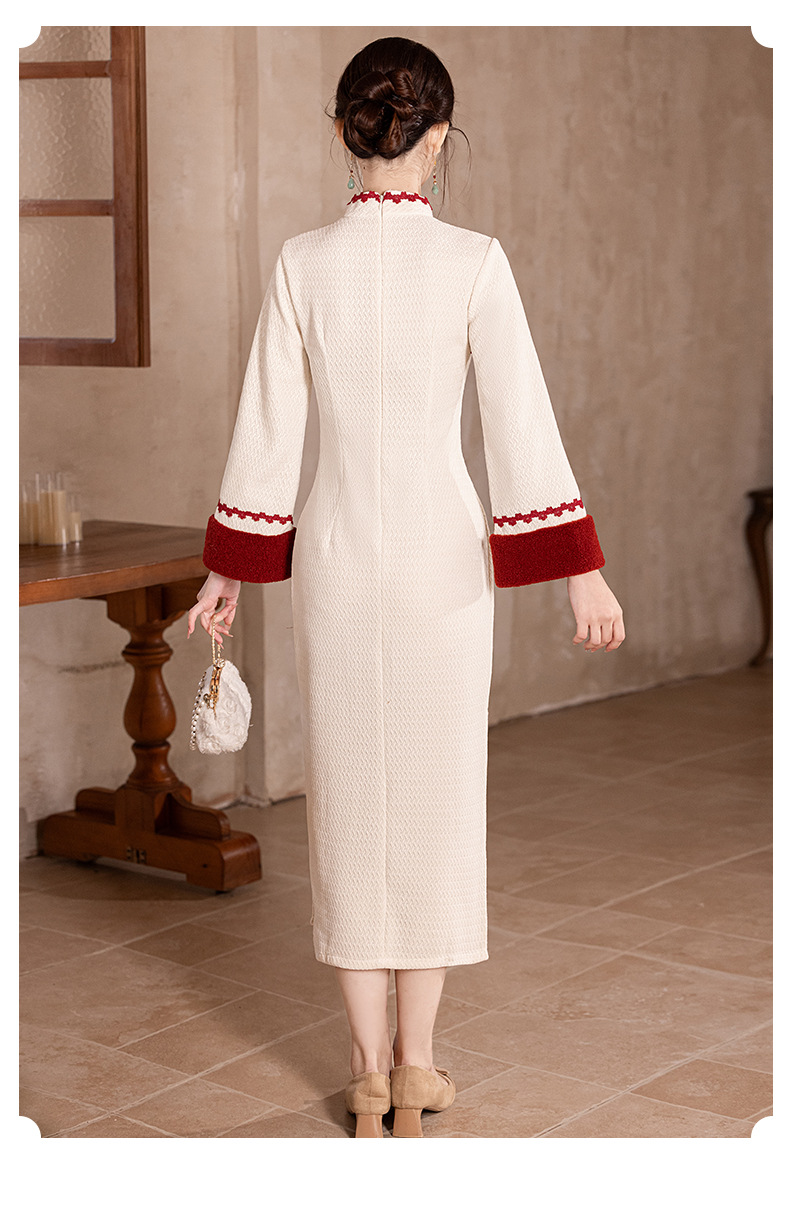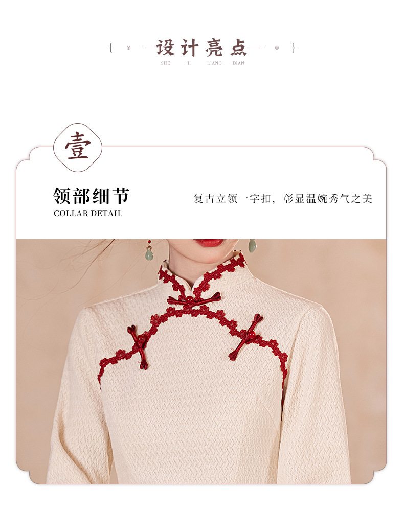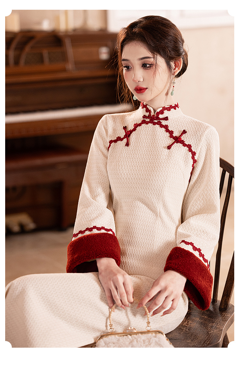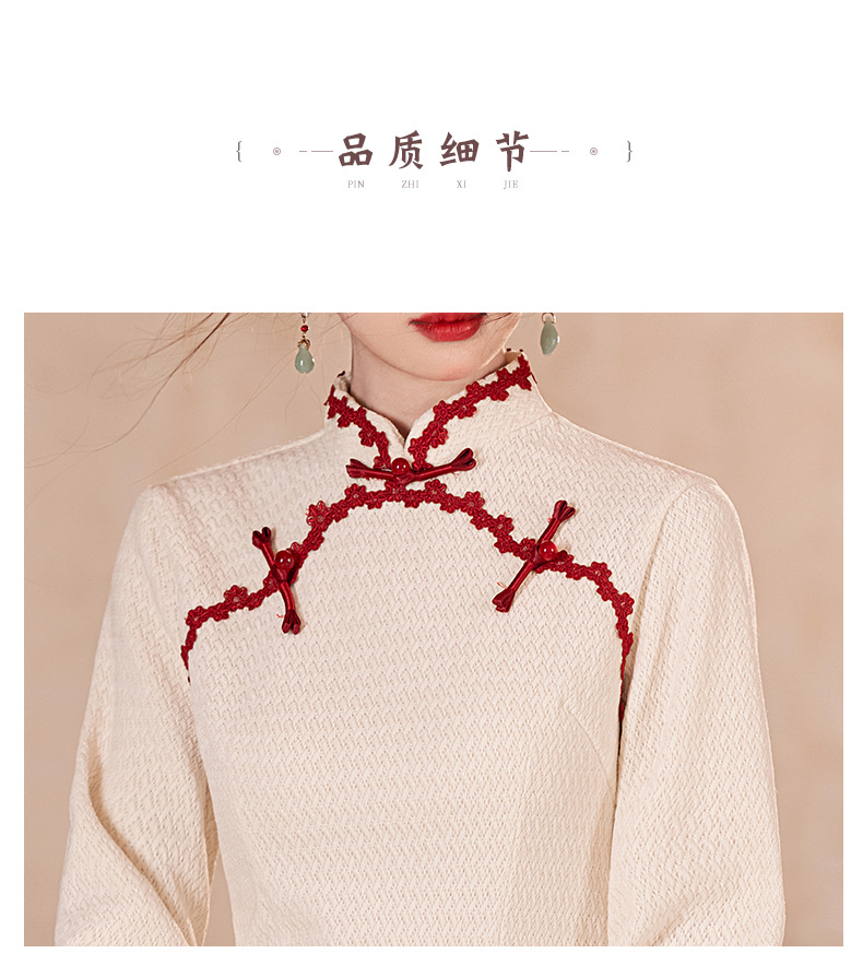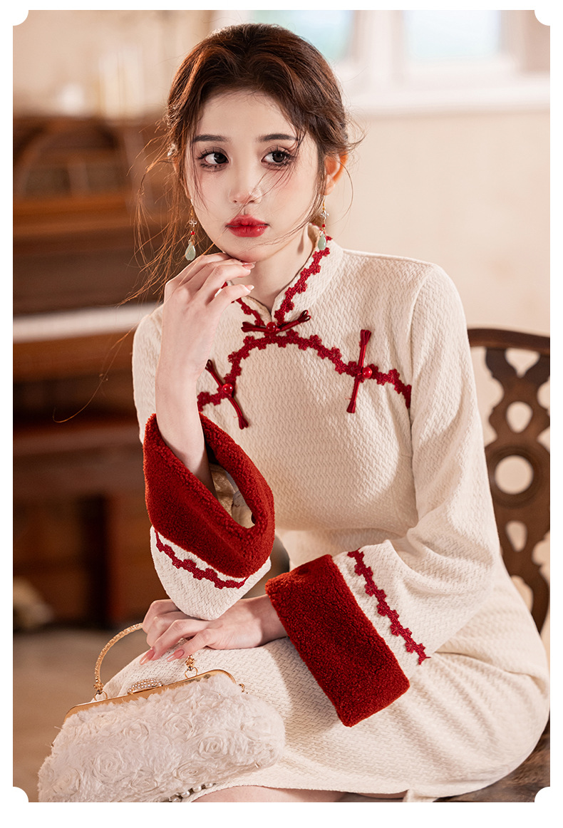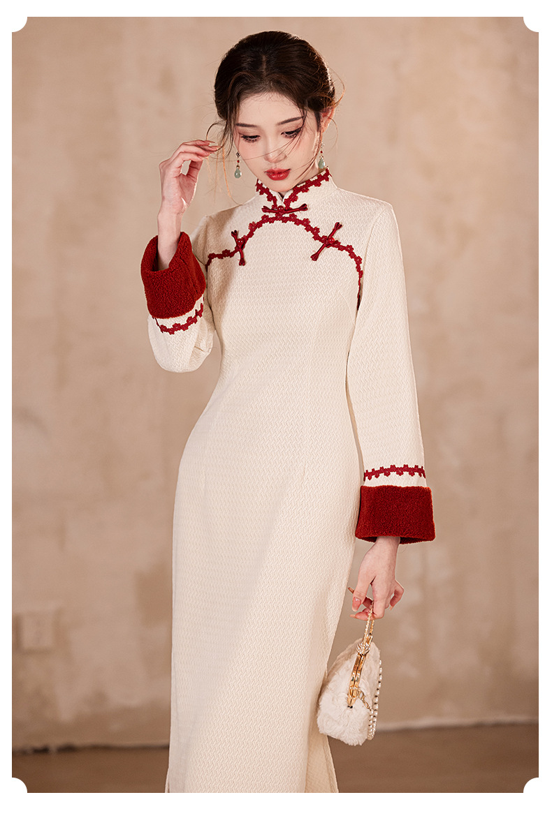 LSB3232 复古白色旗袍年轻款2024新款改良新中式素雅减龄加绒冬季修身长袖 商品图2