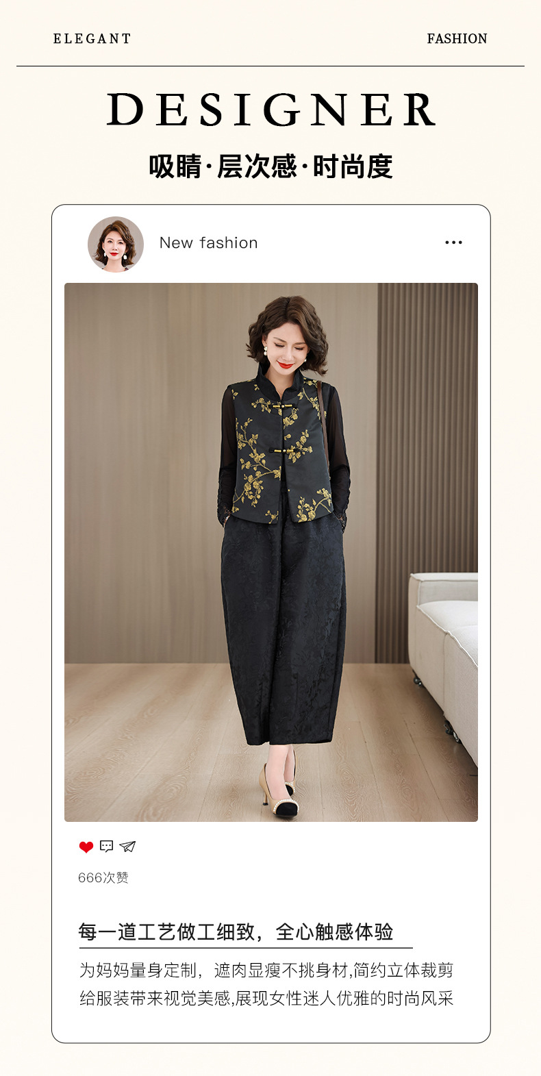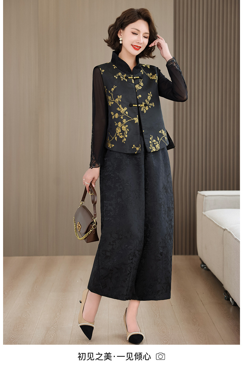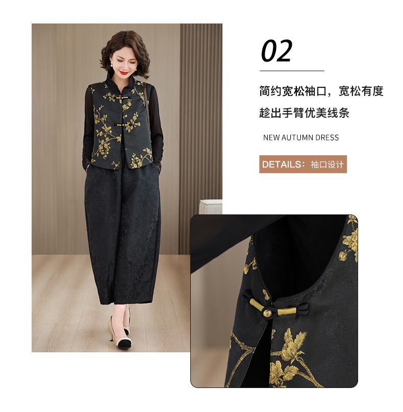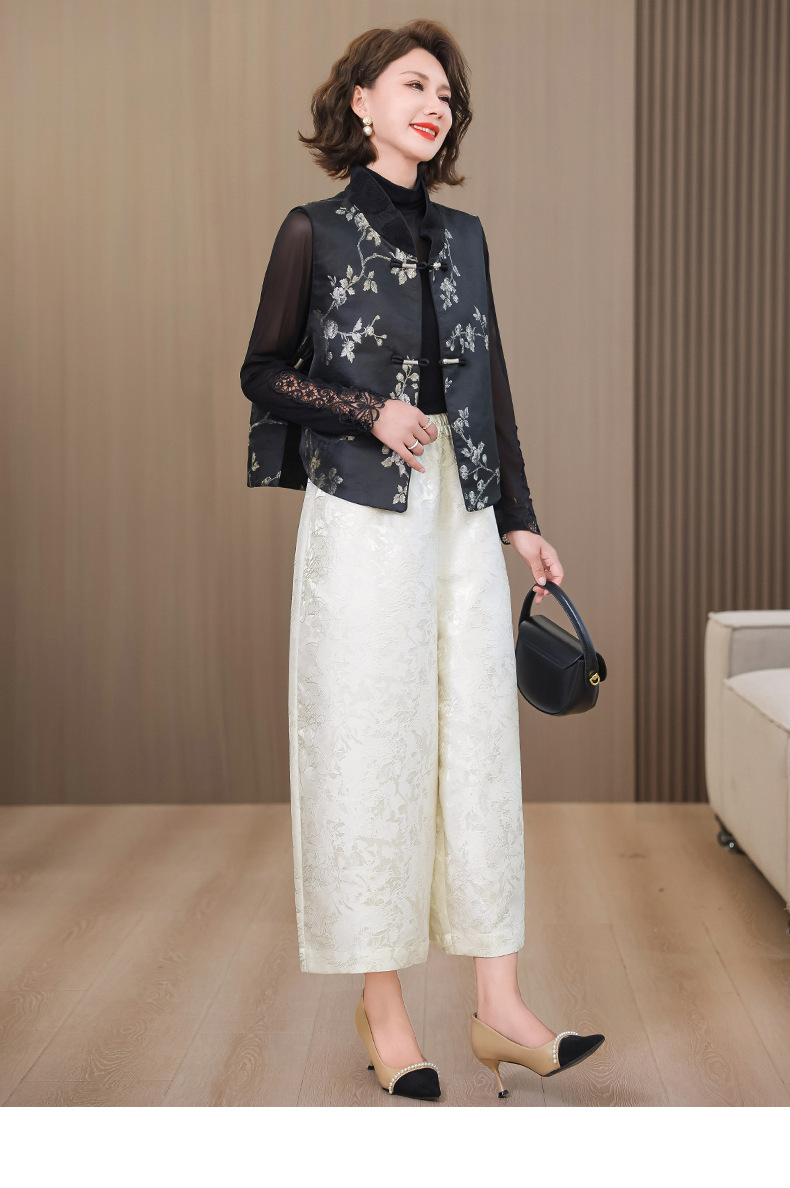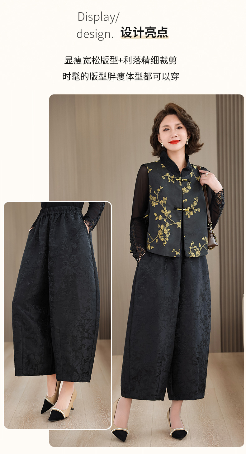 KQL422H81332025秋季新款休闲百搭花苞阔腿裤女时尚洋气马甲两件套