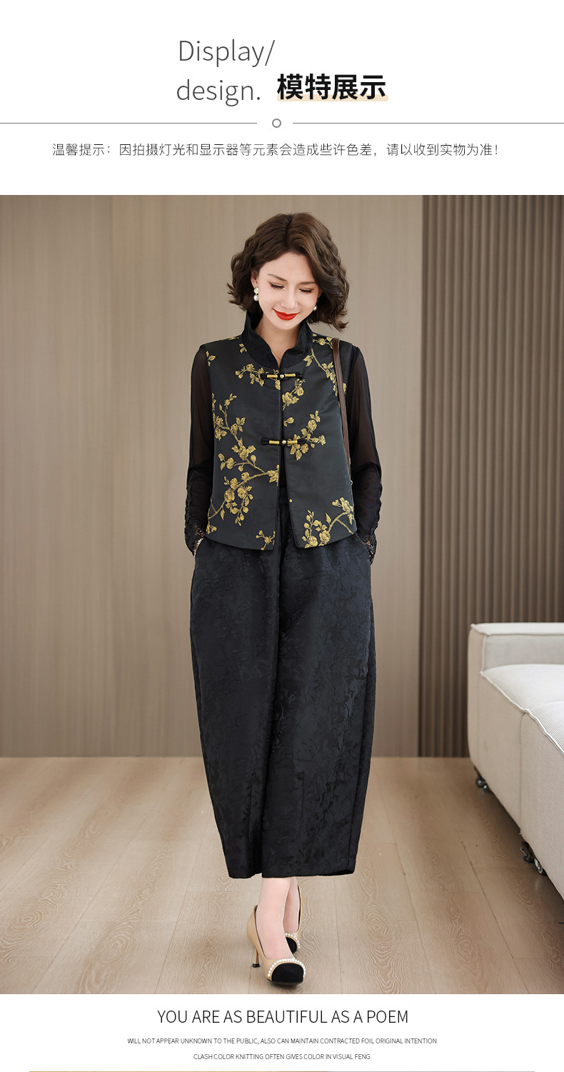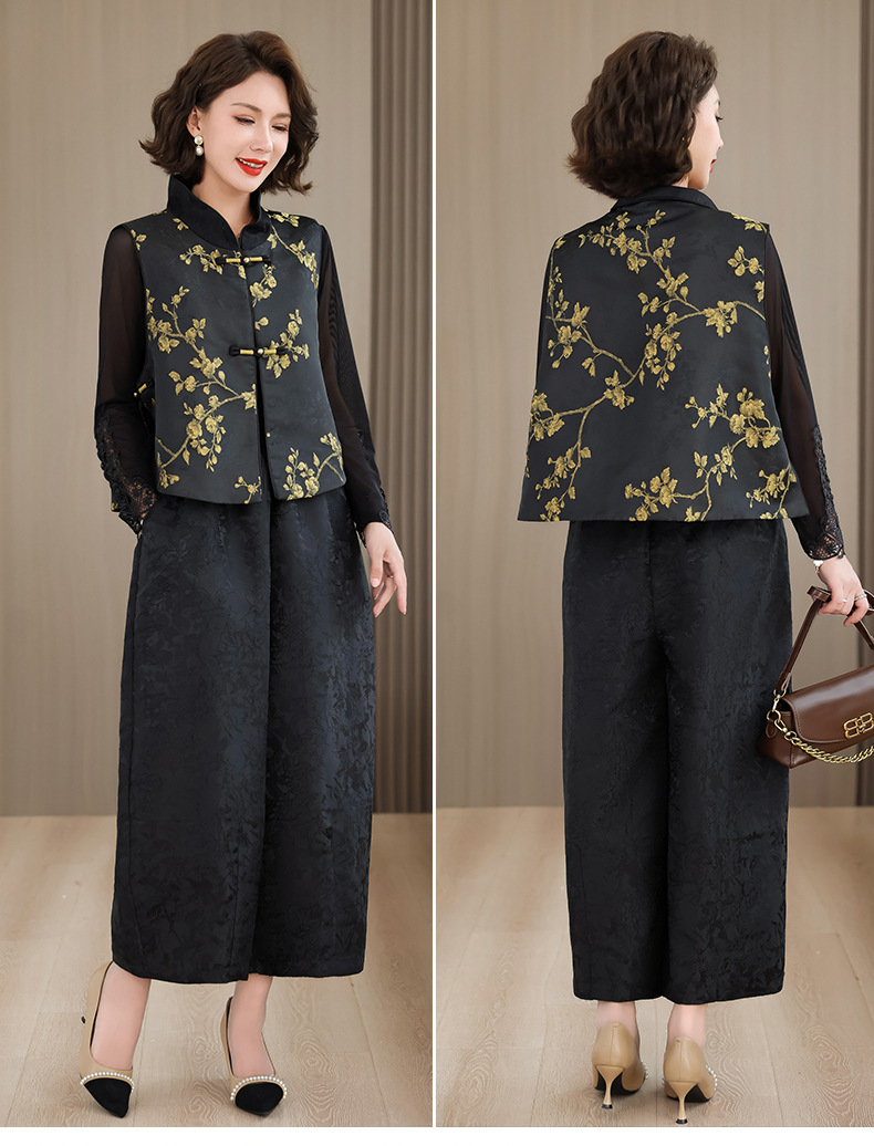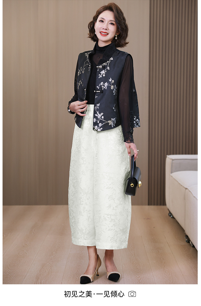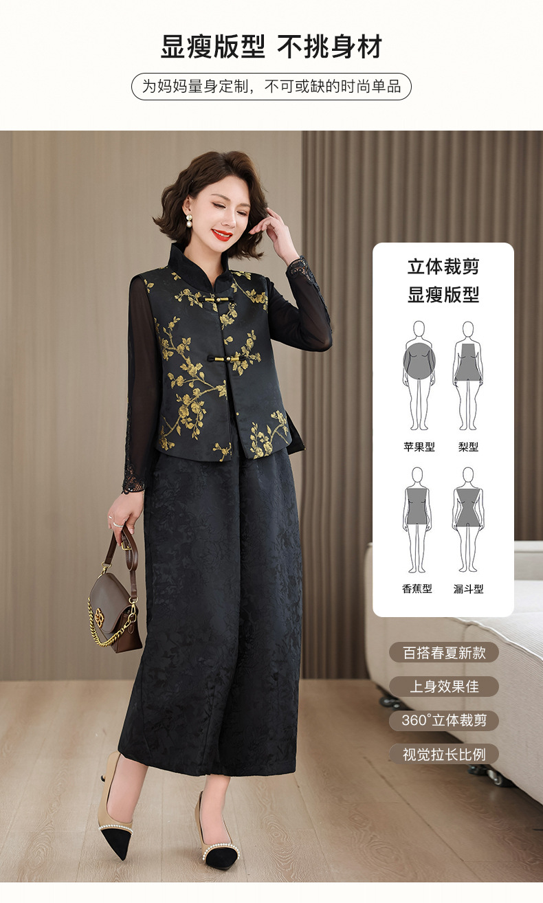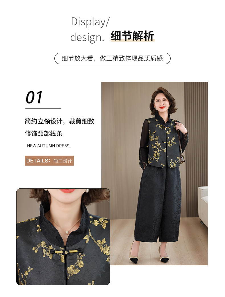KQL422H81332025秋季新款休闲百搭花苞阔腿裤女时尚洋气马甲两件套