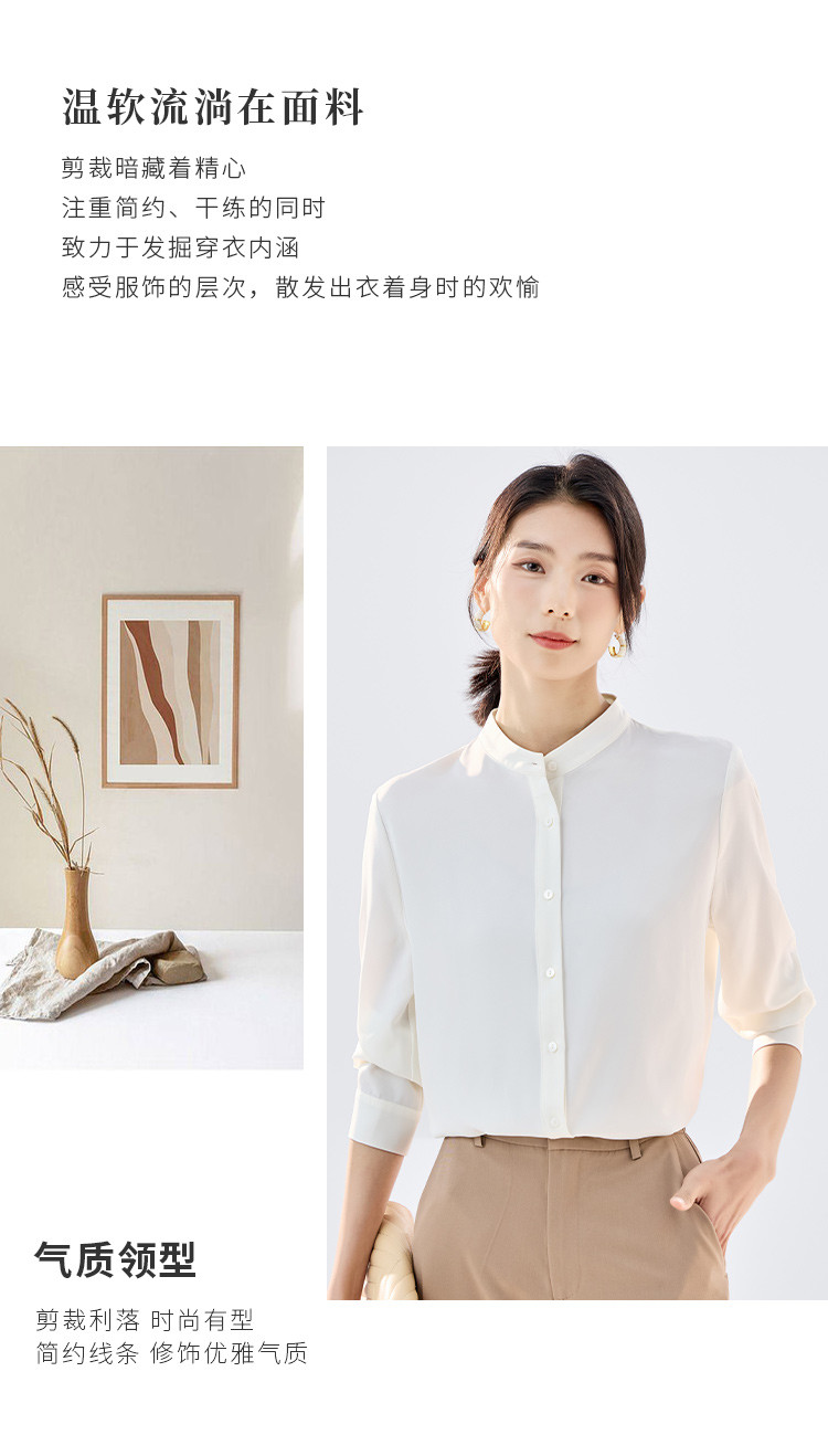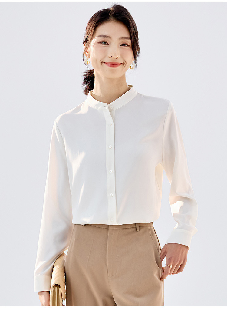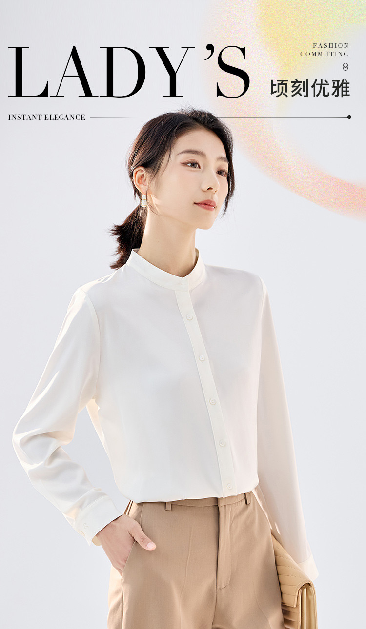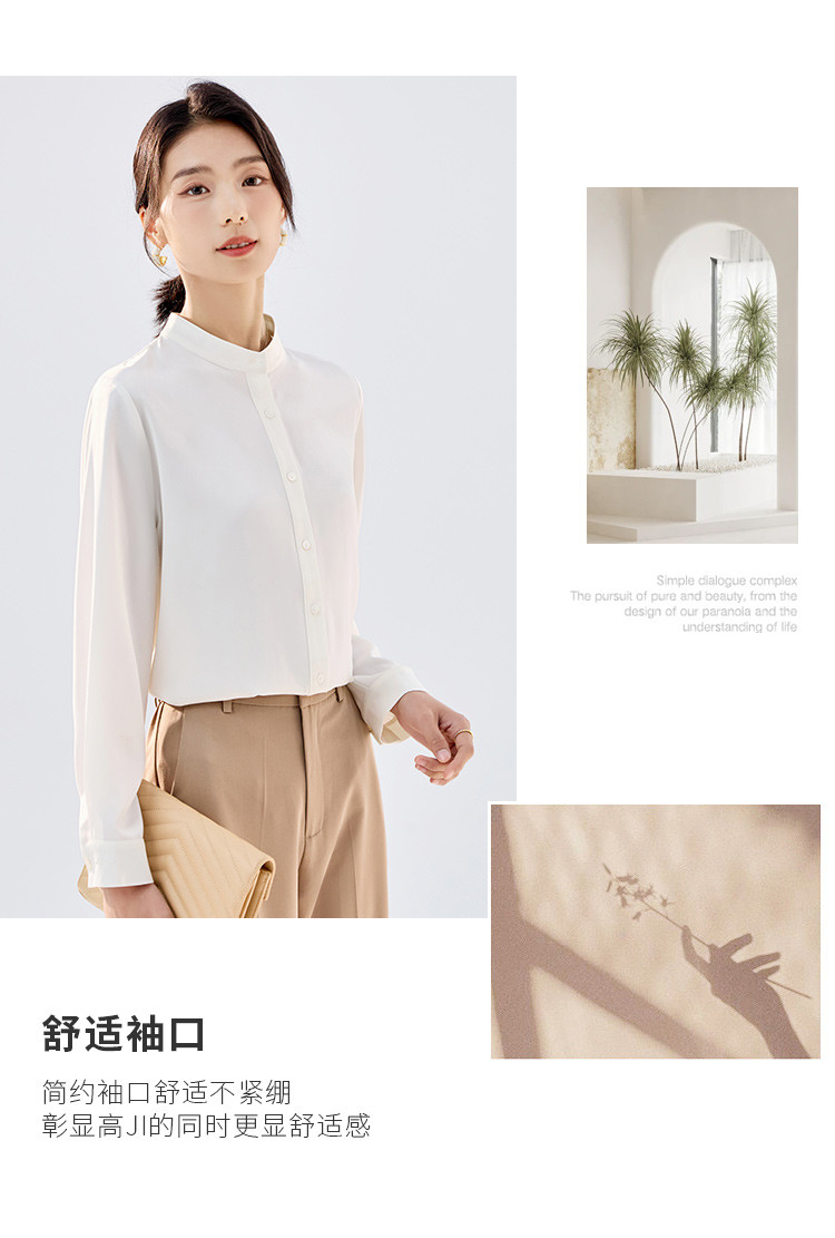 【简约优雅】罗蒙女士长袖衬衫舒适休闲商务百搭圆领开衫衬衫女