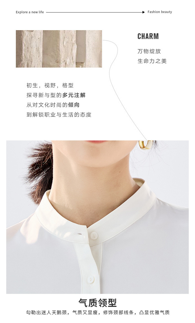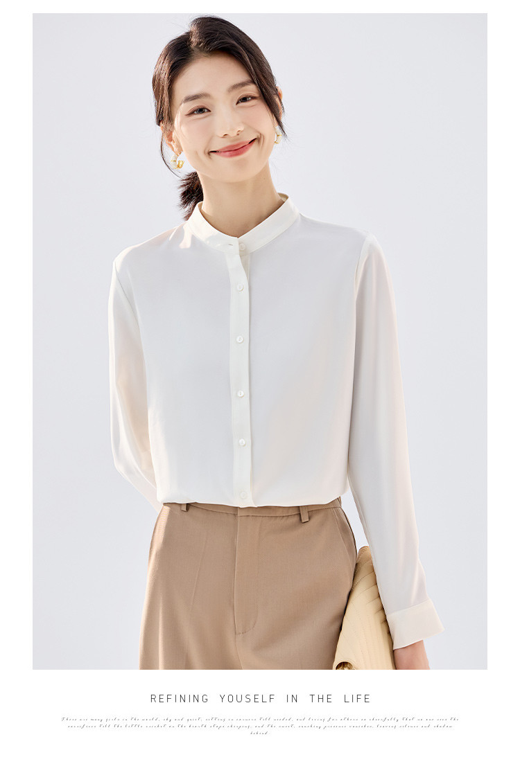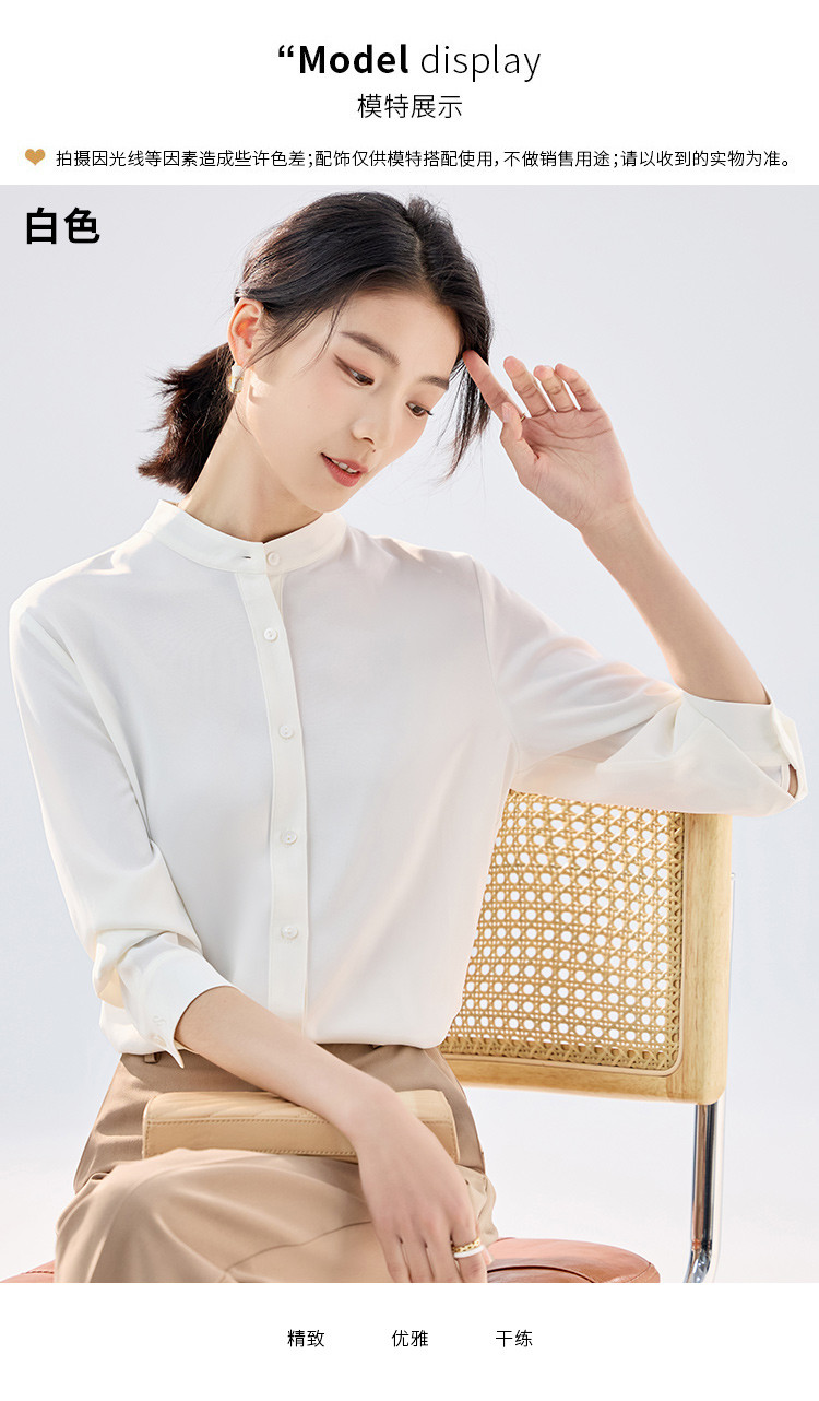 【简约优雅】罗蒙女士长袖衬衫舒适休闲商务百搭圆领开衫衬衫女