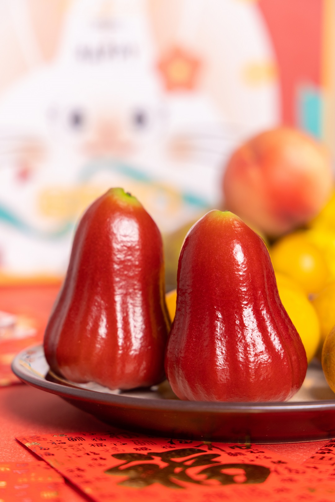 在新年的时候,大鱼大肉吃腻了,就可以来一个清甜多汁的泰国莲雾,解腻补水的一把手!一颗莲雾八杯水,让你不知不觉的就把水喝了,是老少皆宜的一款水果