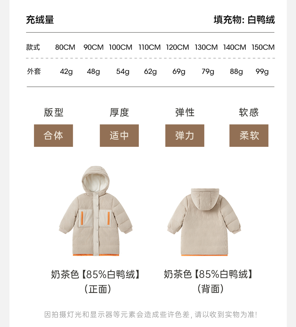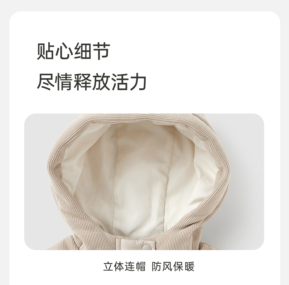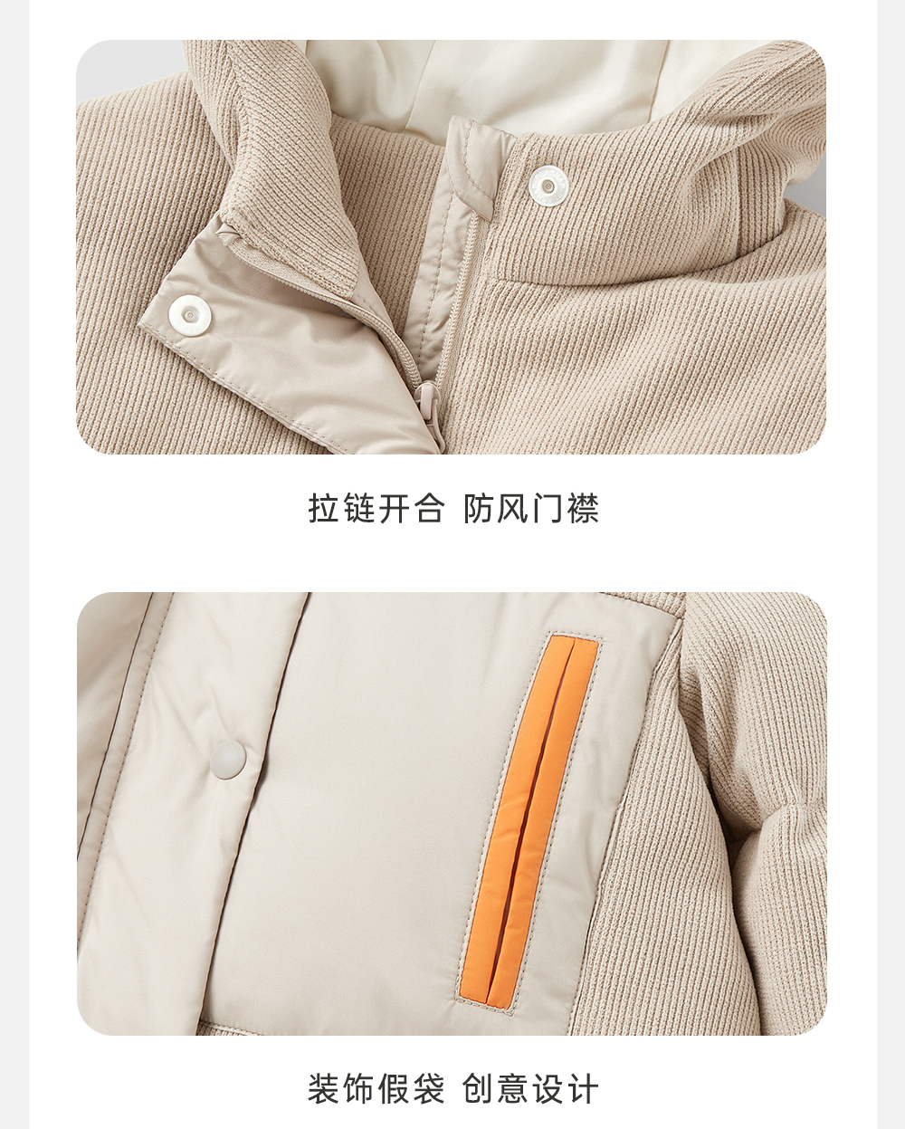 【商场同款】英氏儿童羽绒服冬季男童灯芯绒加厚羽绒外套新款超韧绒