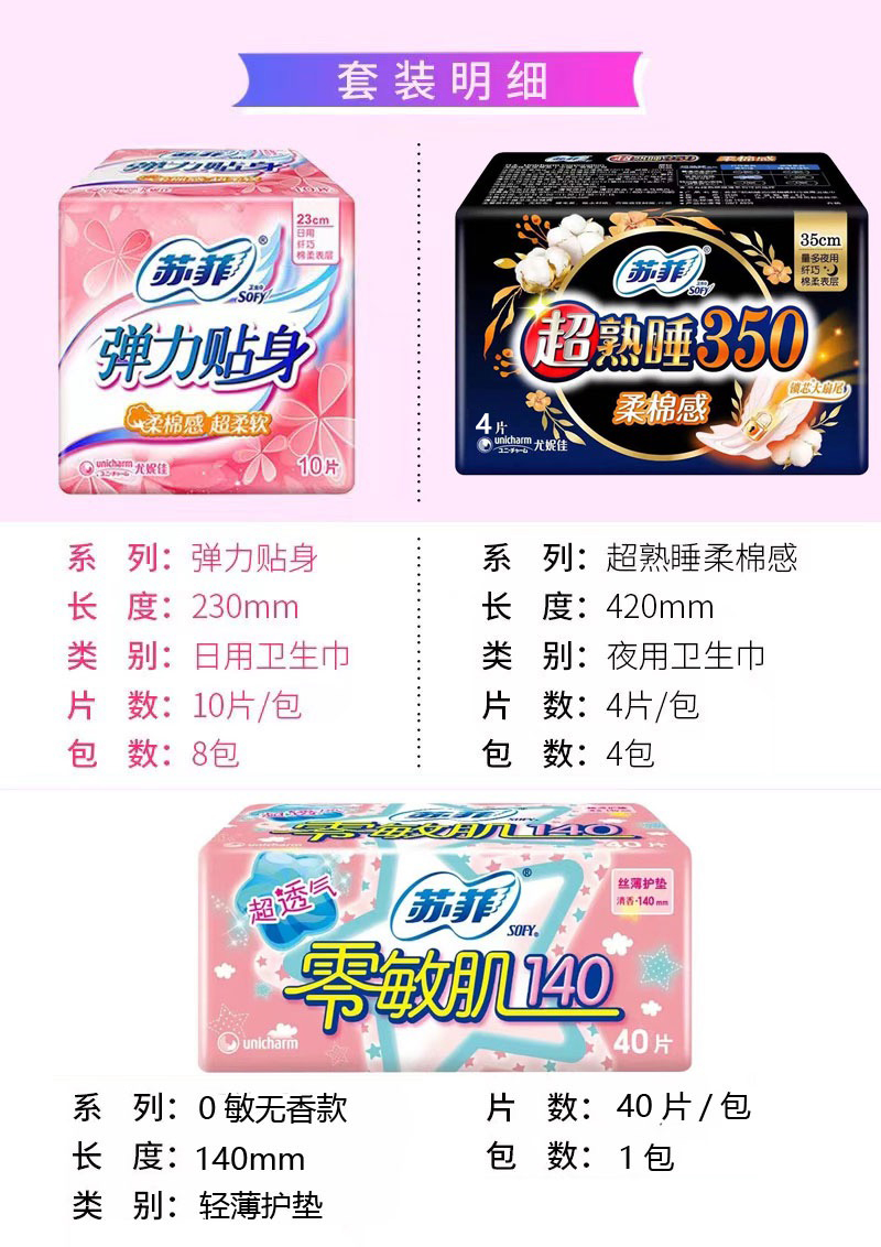 组合套餐明细:共136片(日用80+夜用16+护垫40)