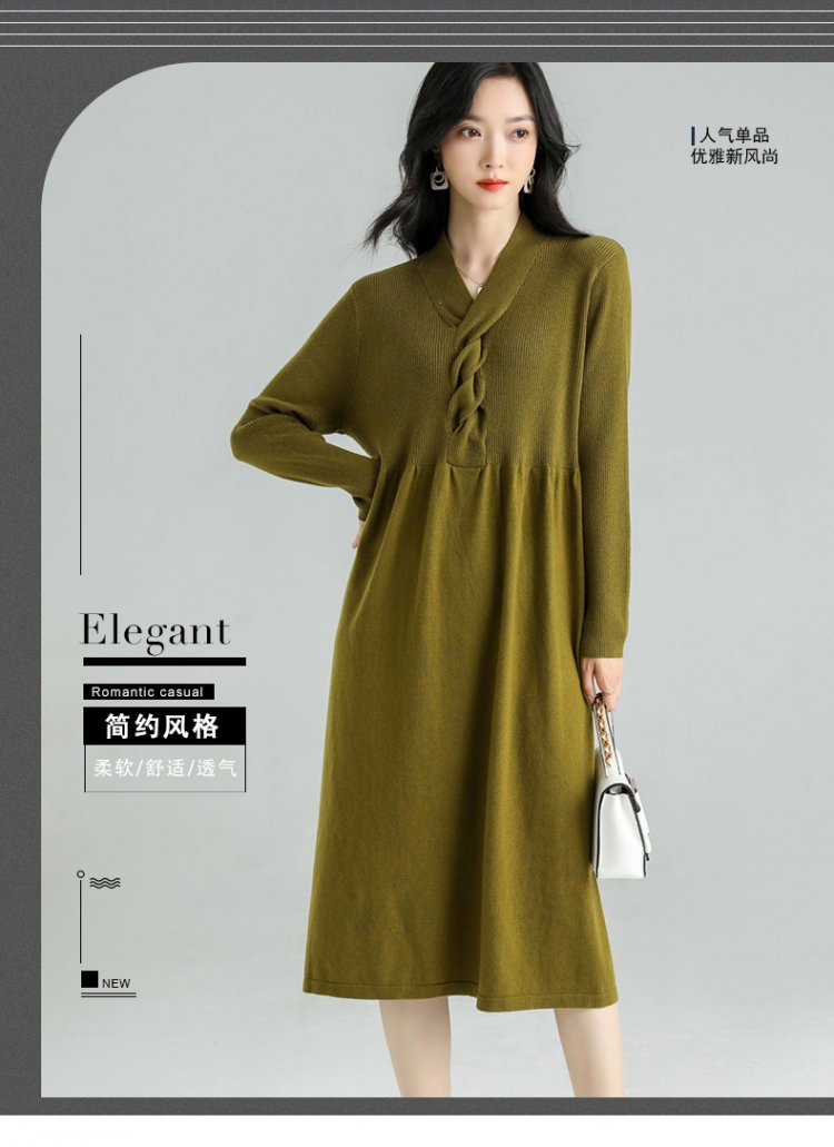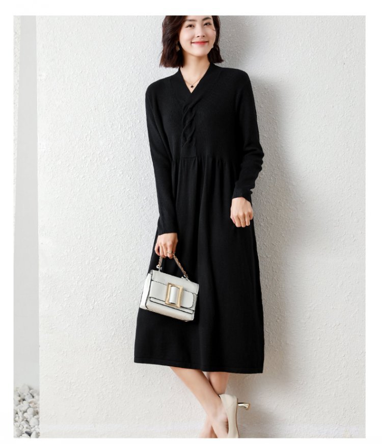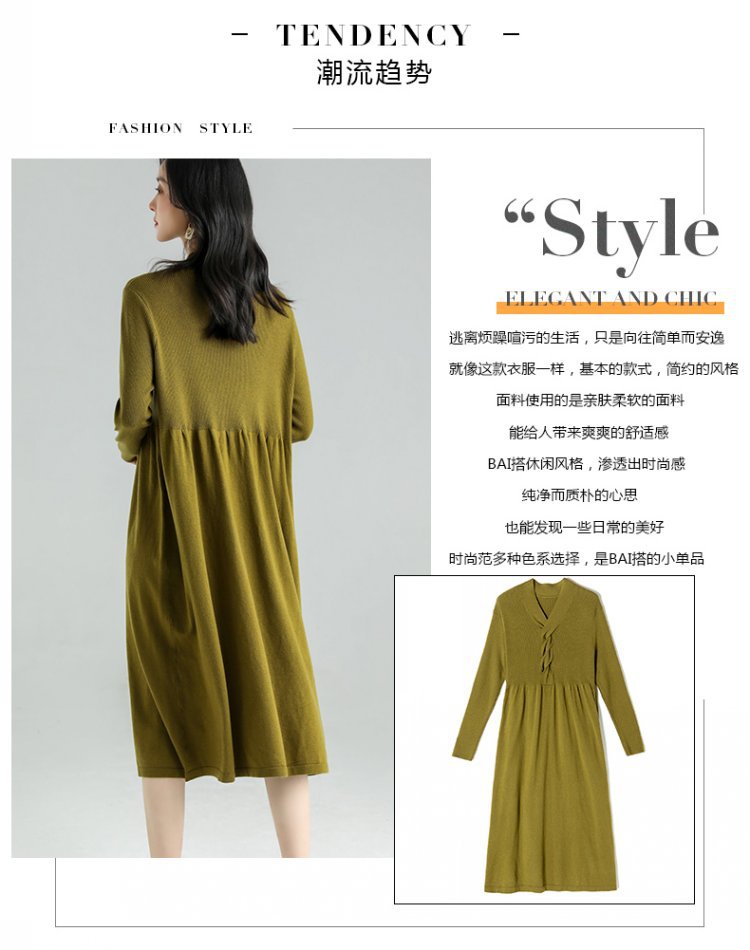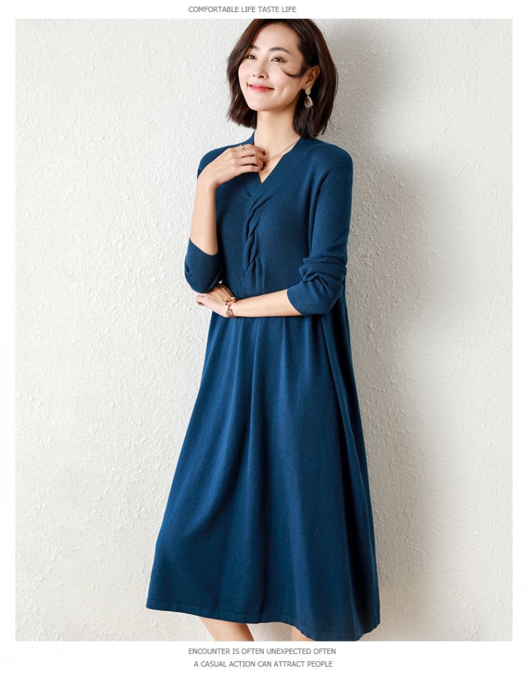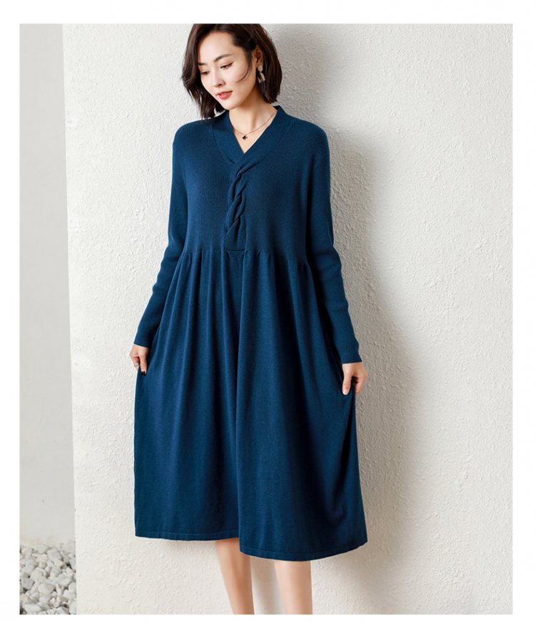 2022秋冬新款毛衣打底衫长款针织裙V领A版宽松遮肚大码连衣裙 ZQ1489-6103