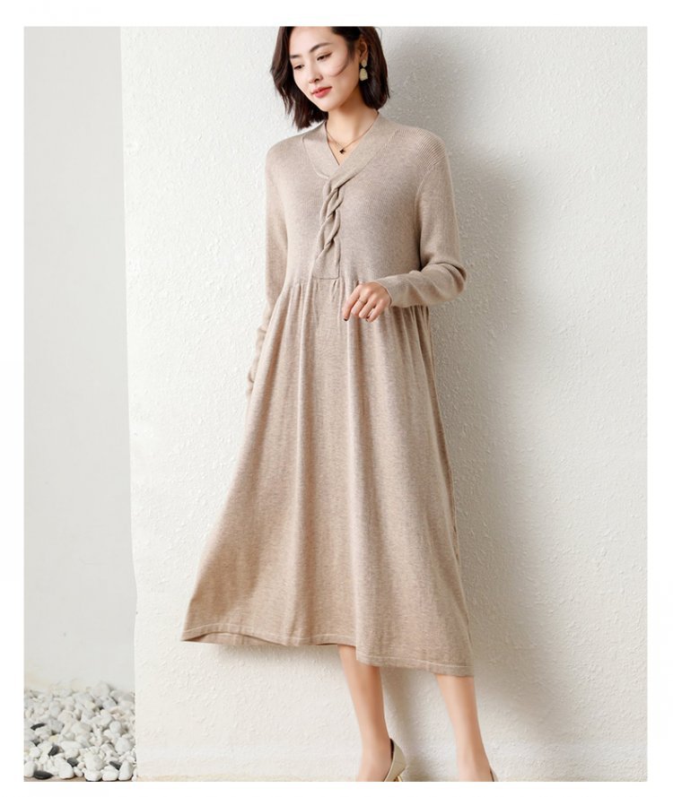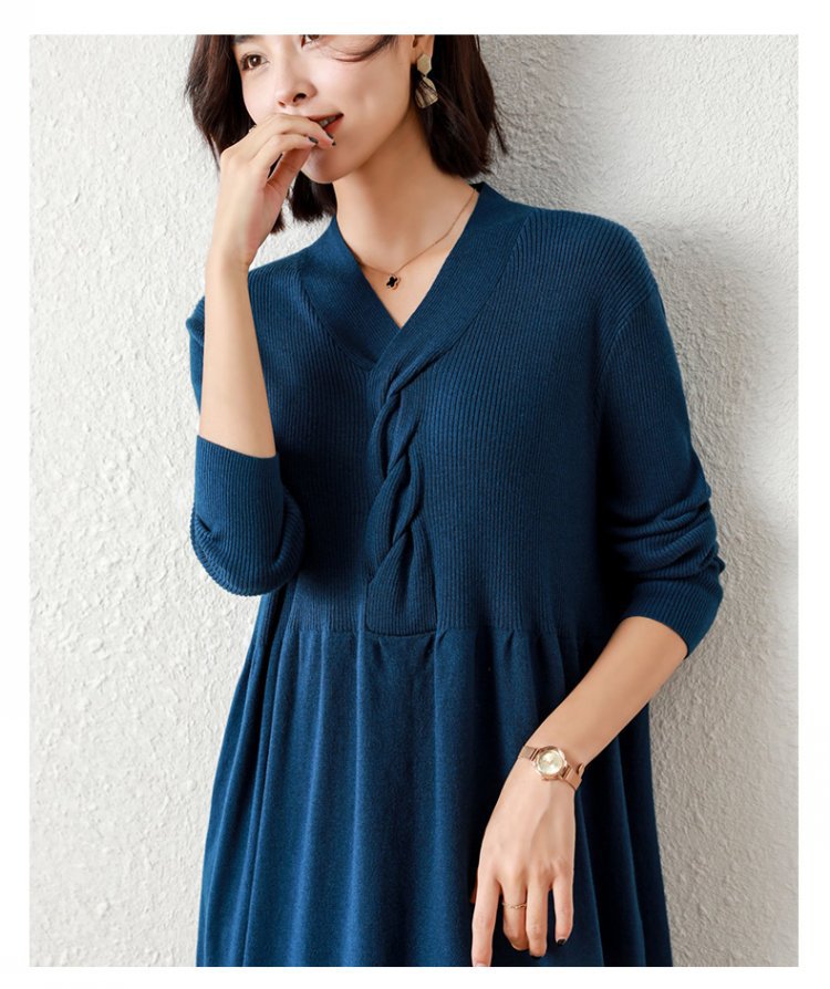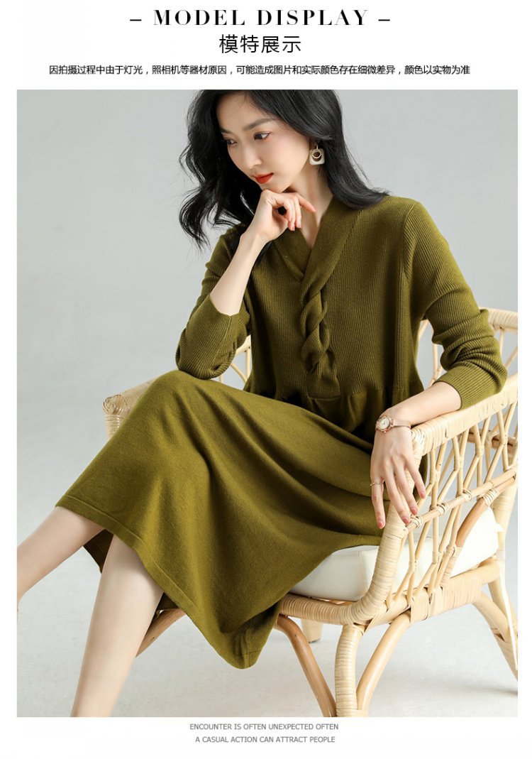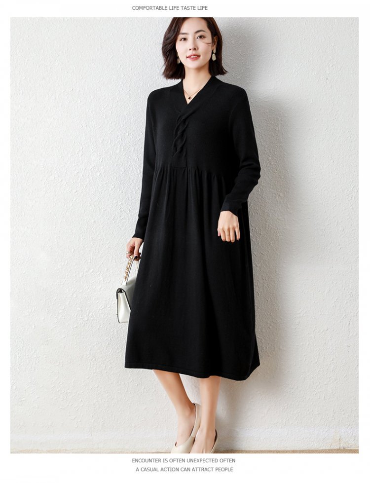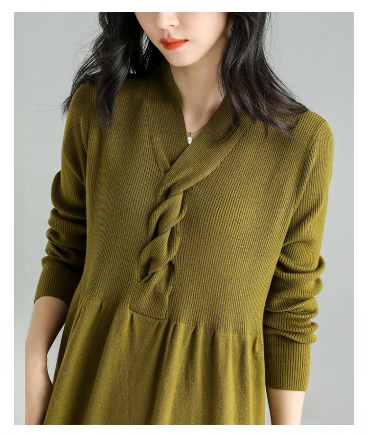 2022秋冬新款毛衣打底衫长款针织裙V领A版宽松遮肚大码连衣裙 ZQ1489-6103