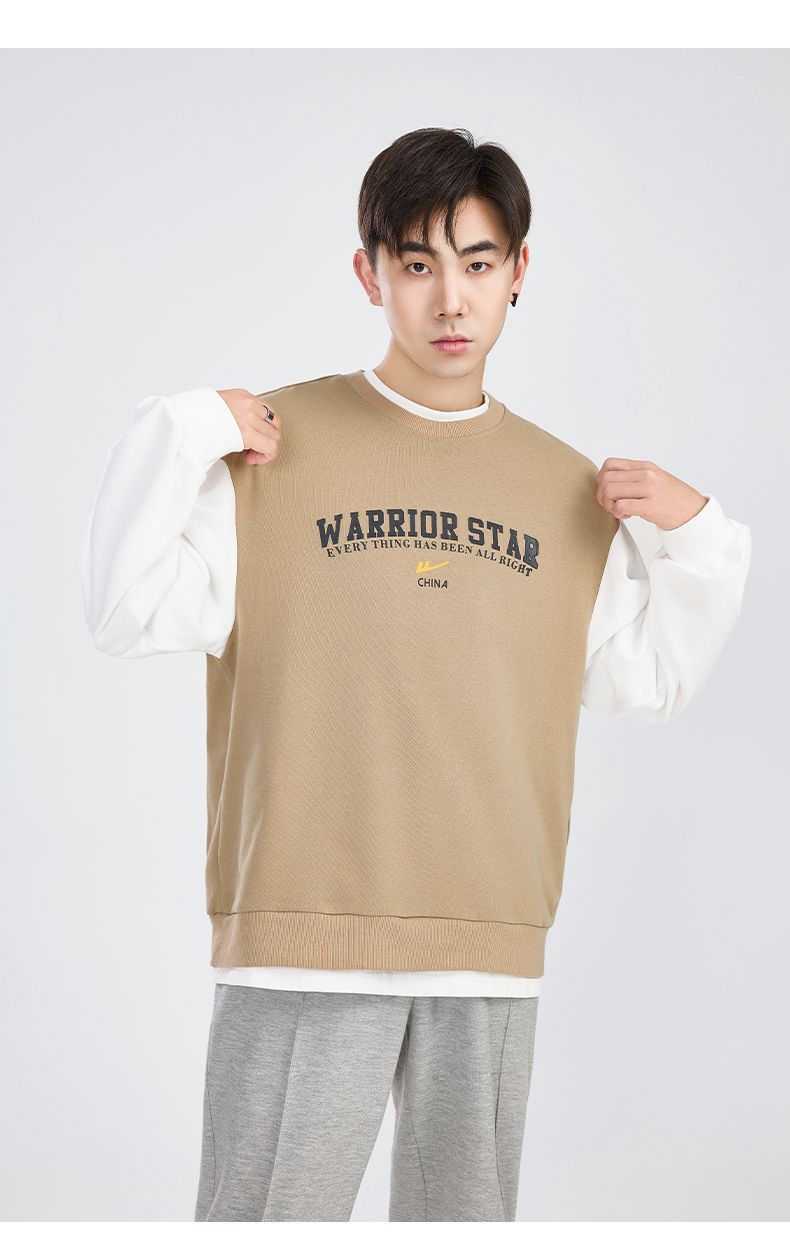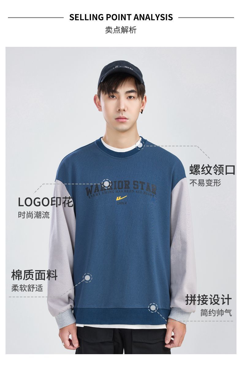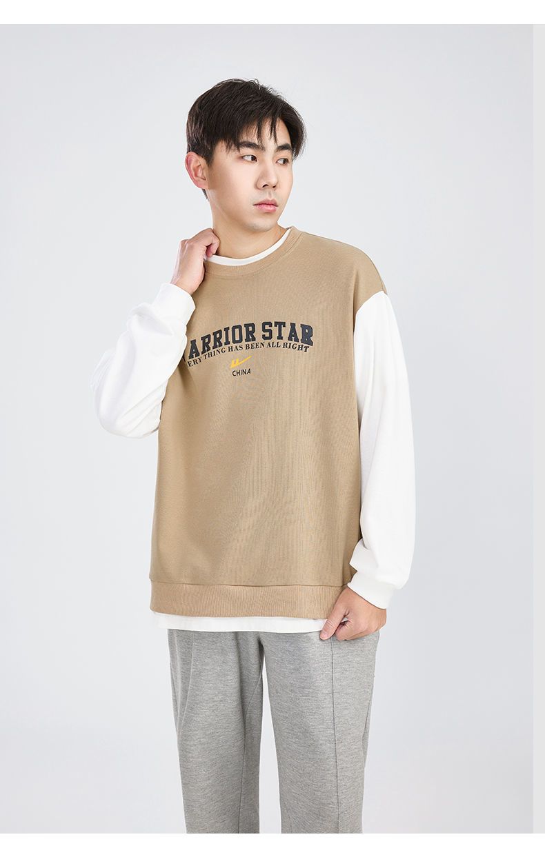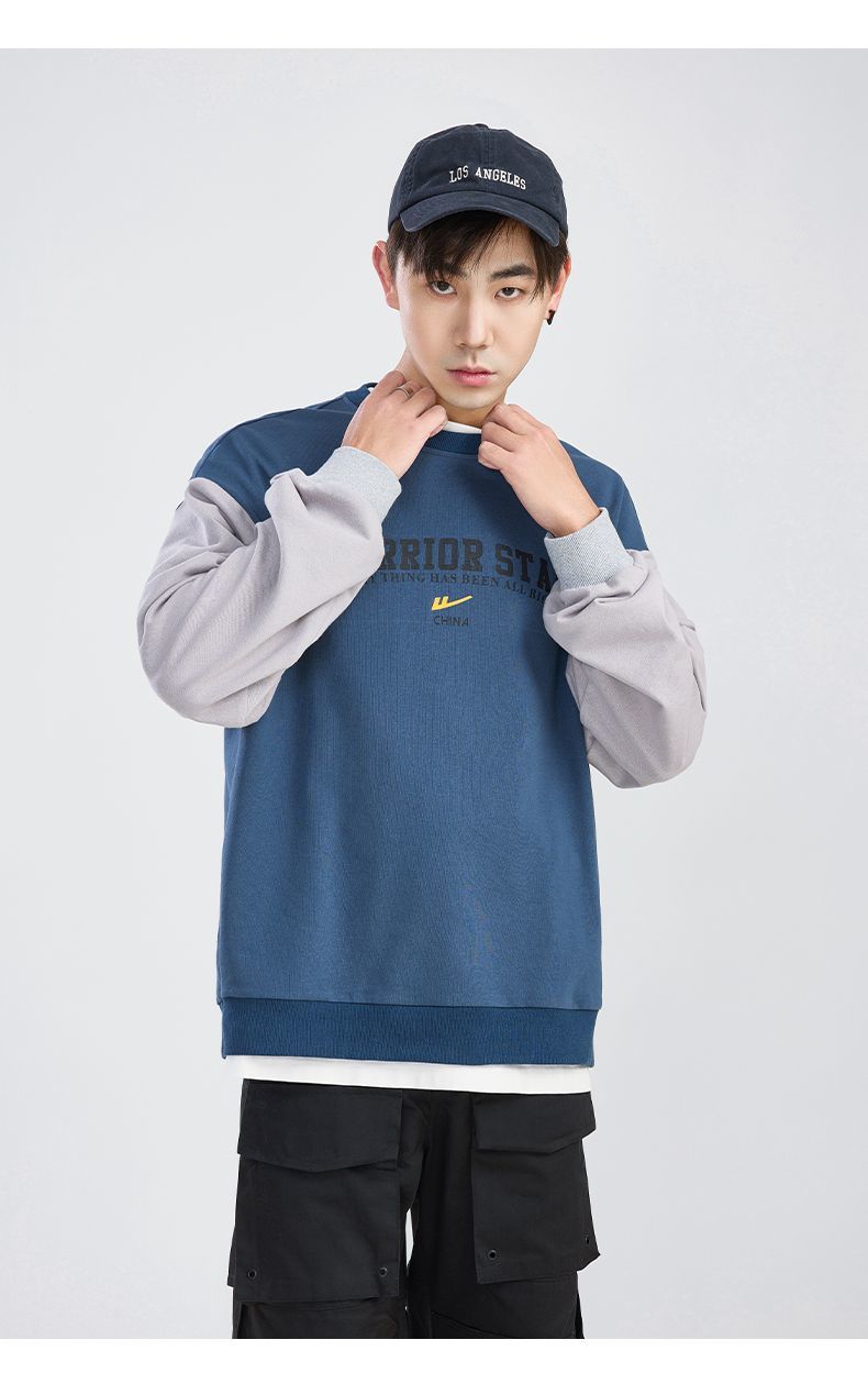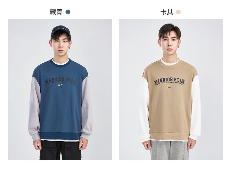 回力卫衣男2025秋季新款男士圆领套头撞色长袖宽松休闲运动上衣男