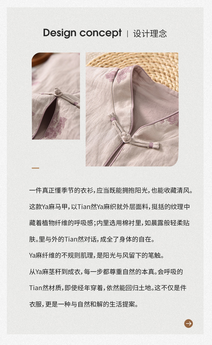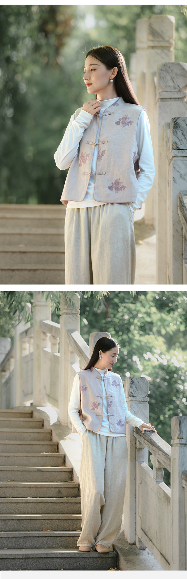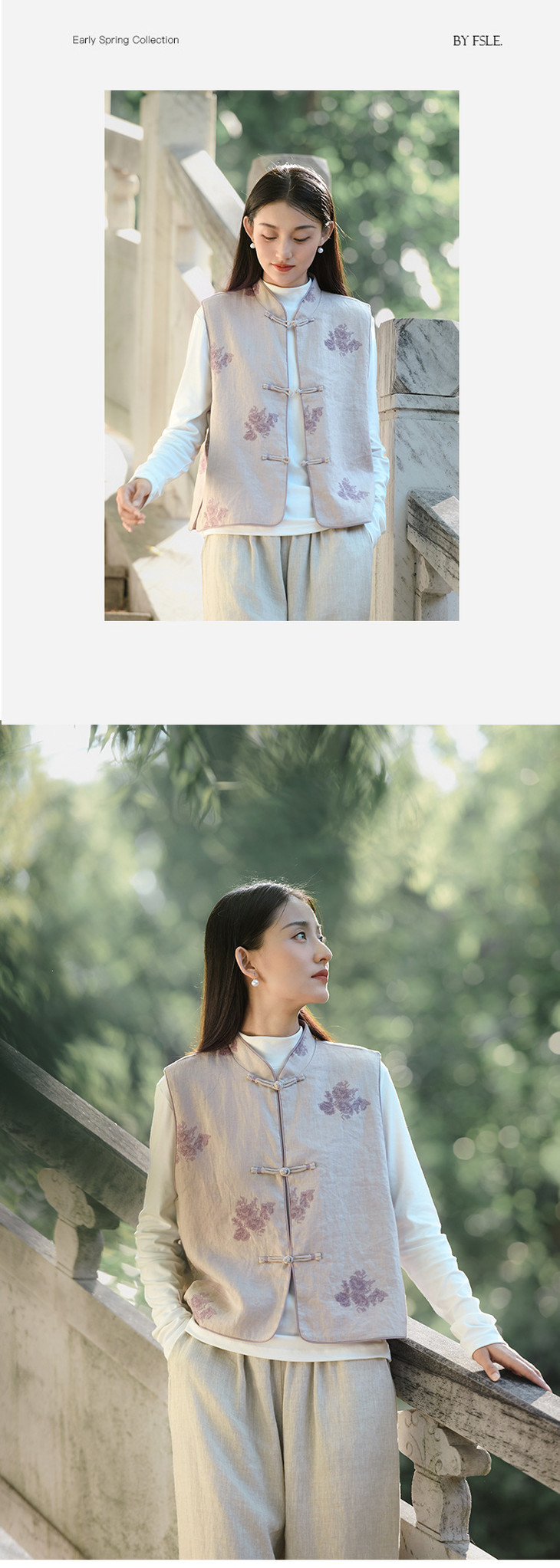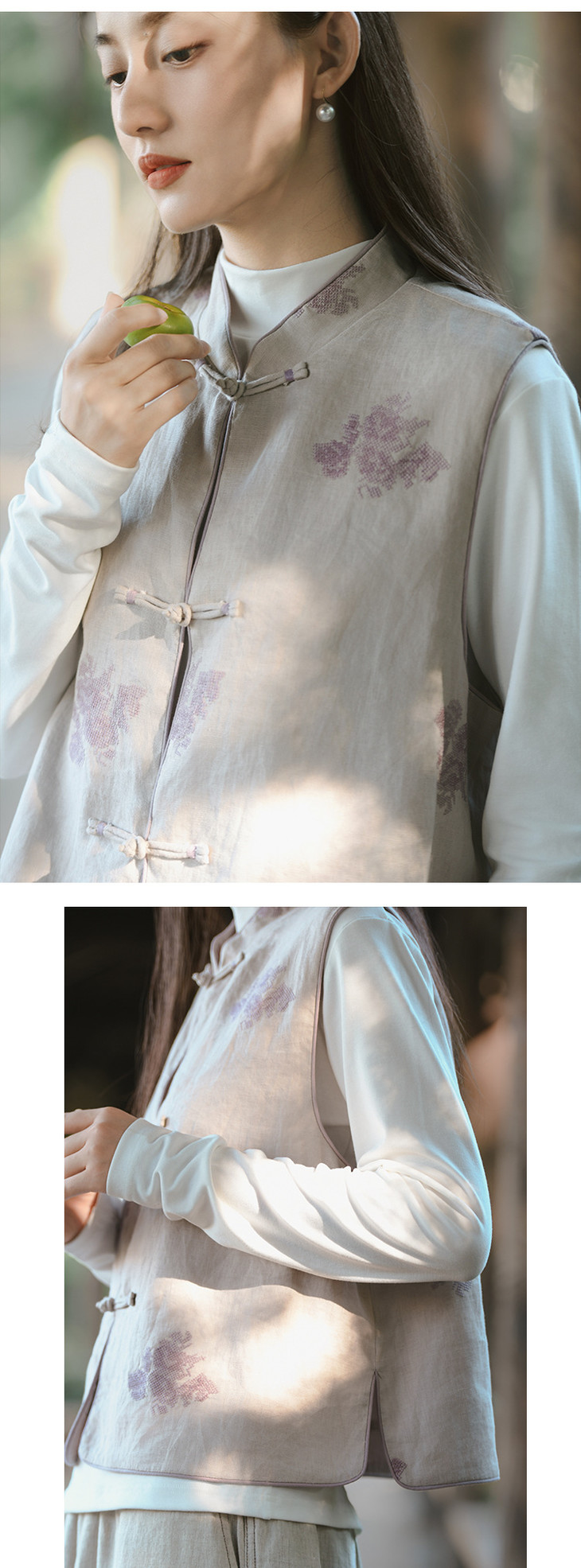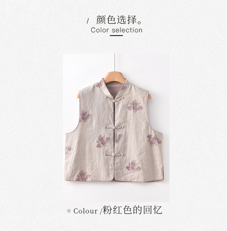 新中式印花亚麻马甲,中国风复古背心QM-6547