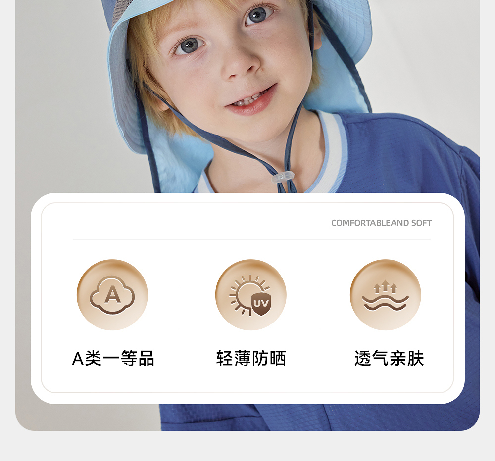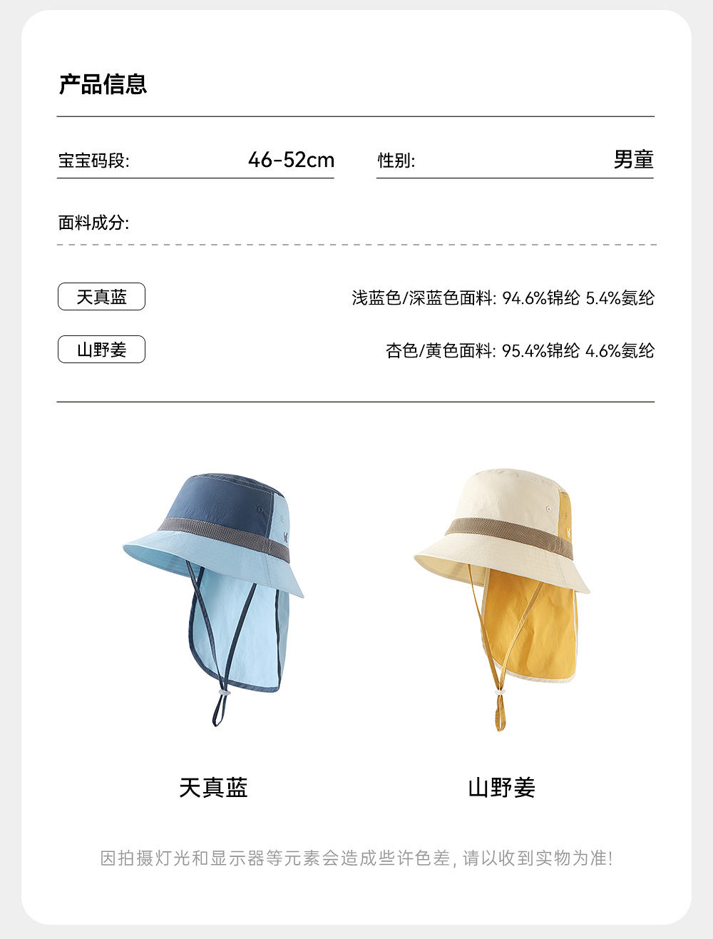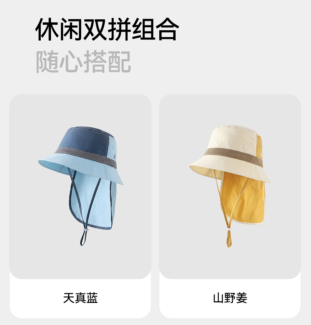 【商场同款】英氏儿童帽子夏季遮阳防晒帽男童户外护颈防晒渔夫帽