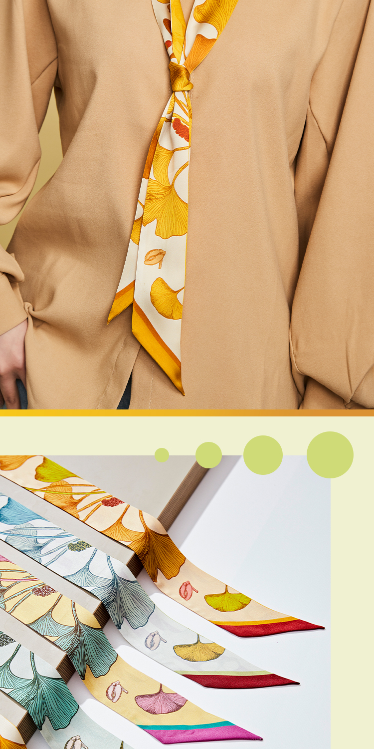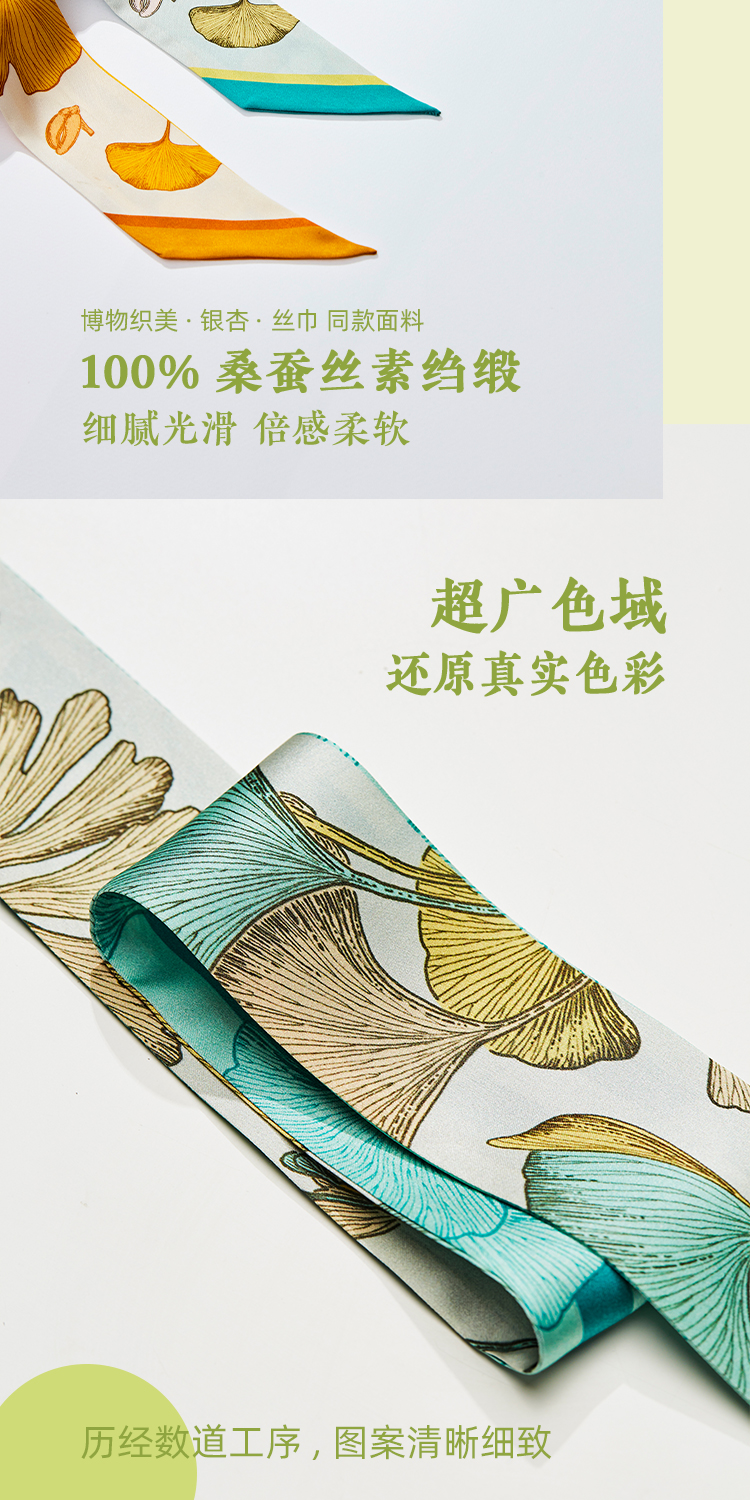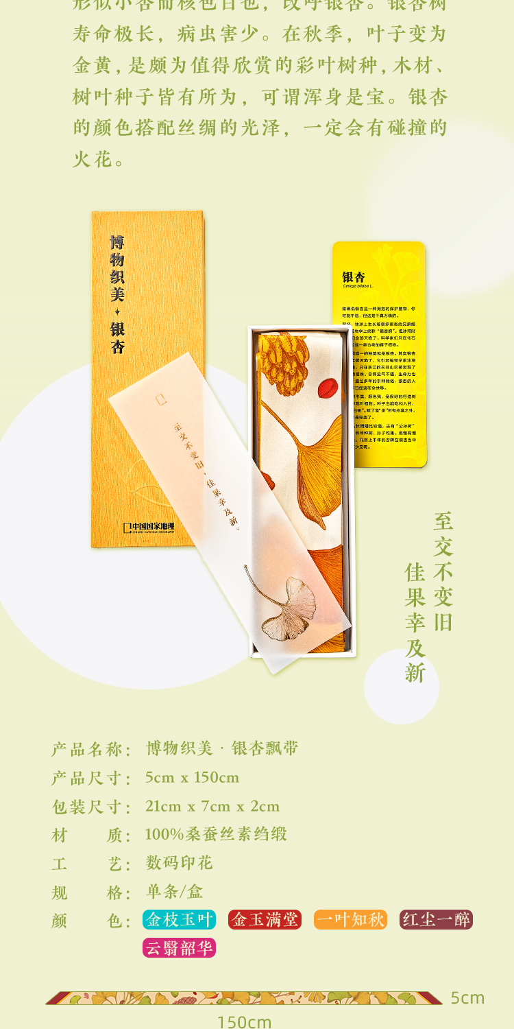 博物文创银杏飘带 丝带桑蚕丝丝春秋装饰植物插画礼物