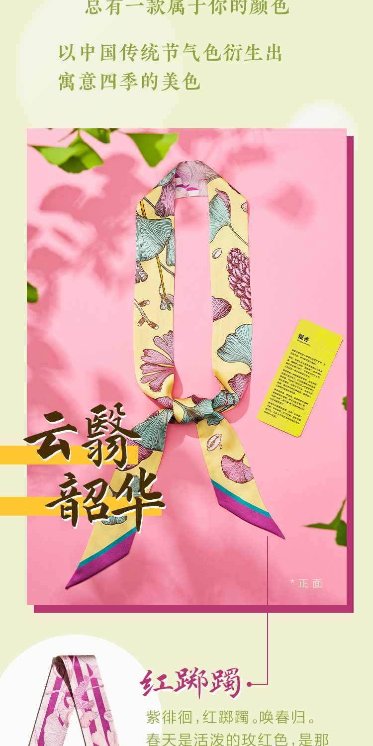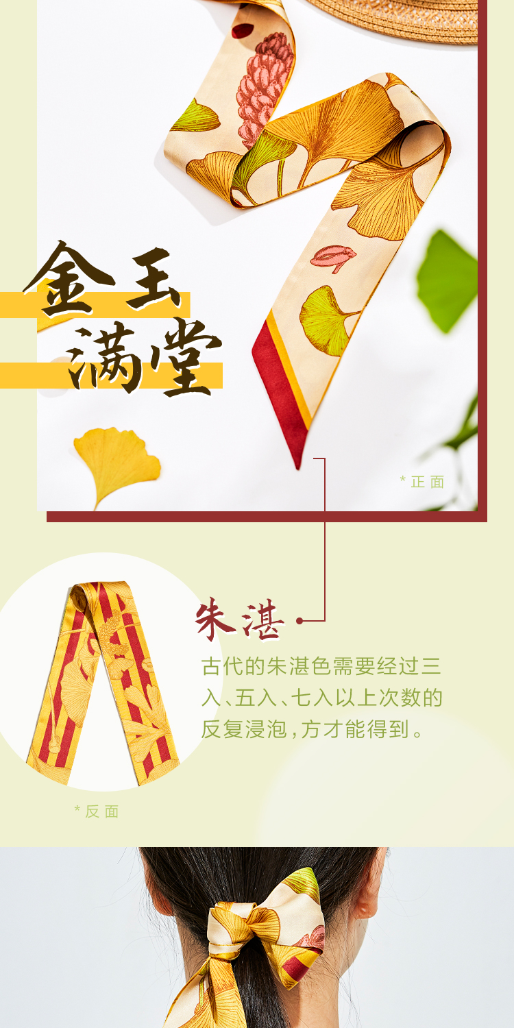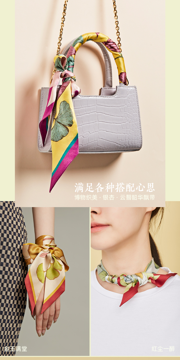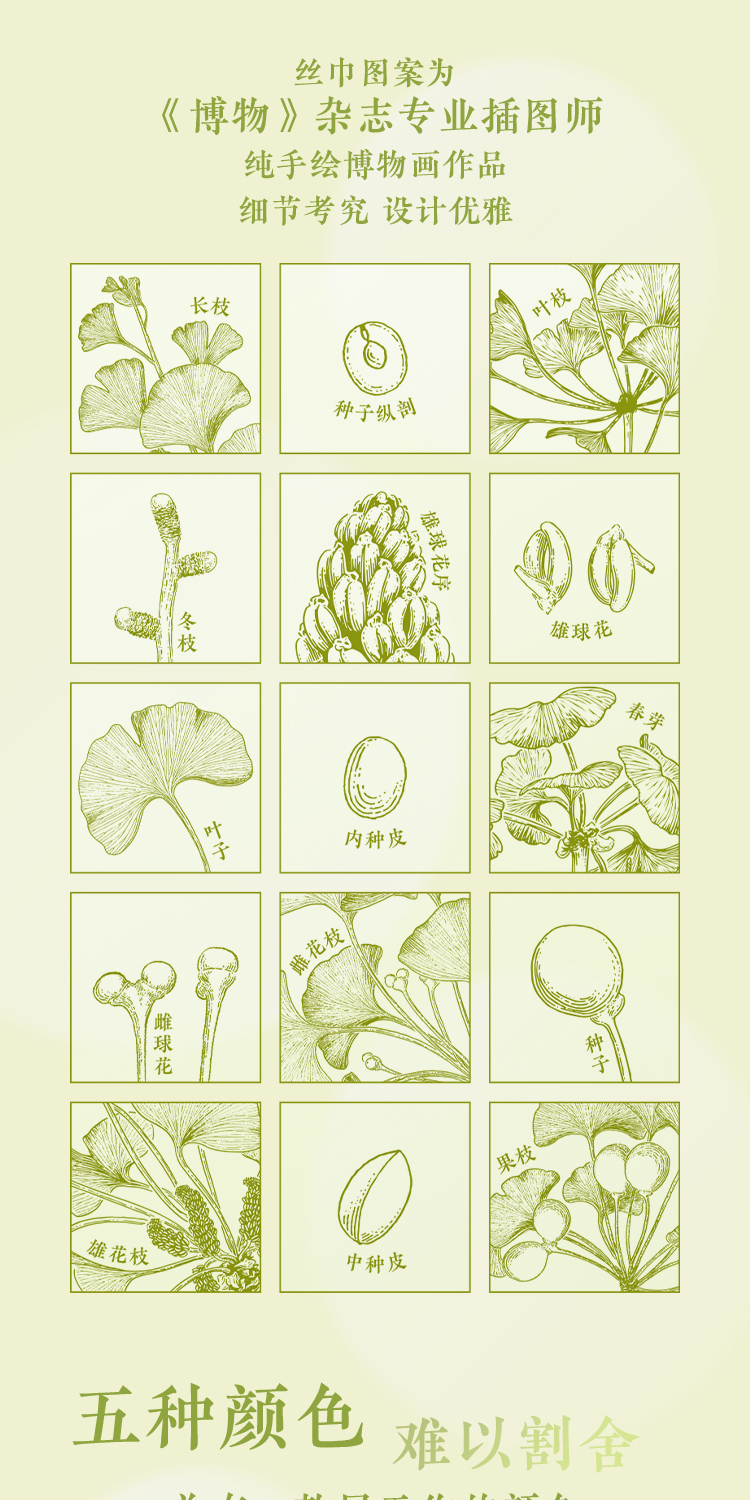博物文创银杏飘带 丝带桑蚕丝丝春秋装饰植物插画礼物