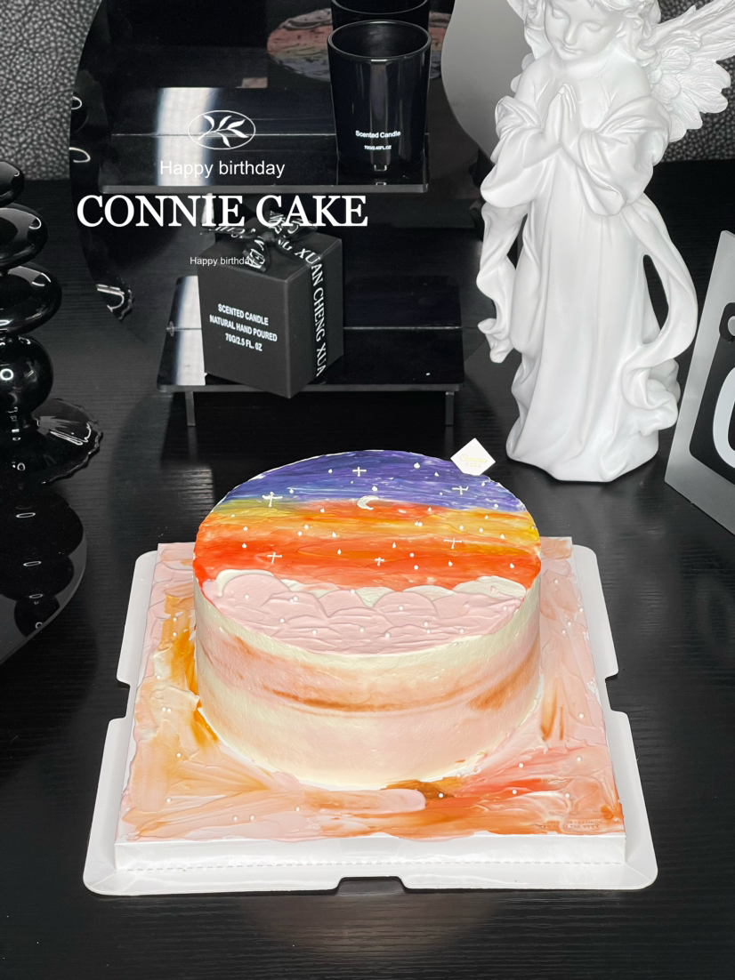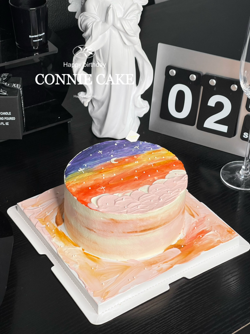 【1268】手绘朝霞日落油画蛋糕