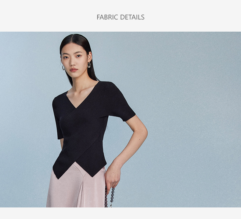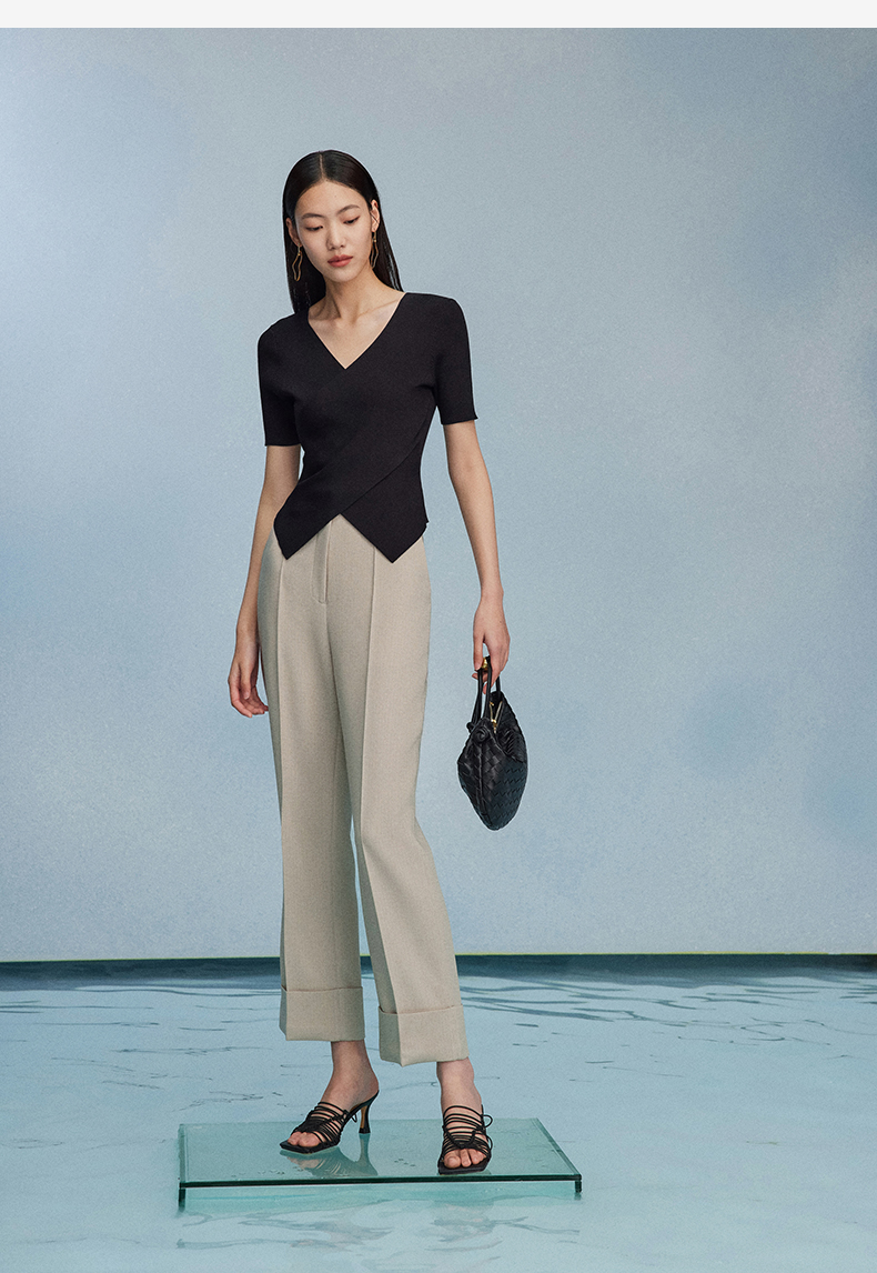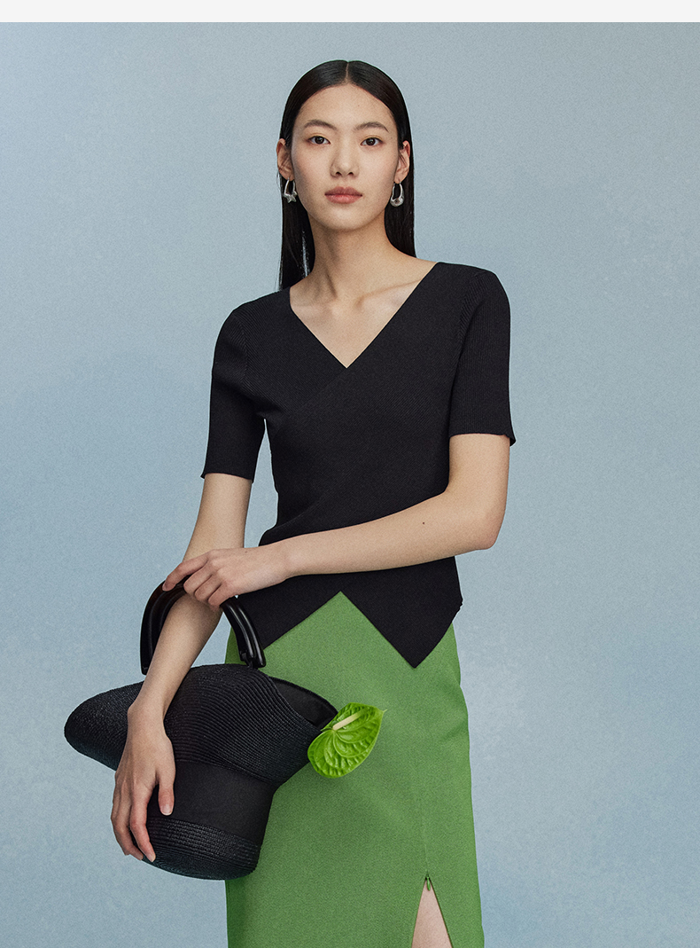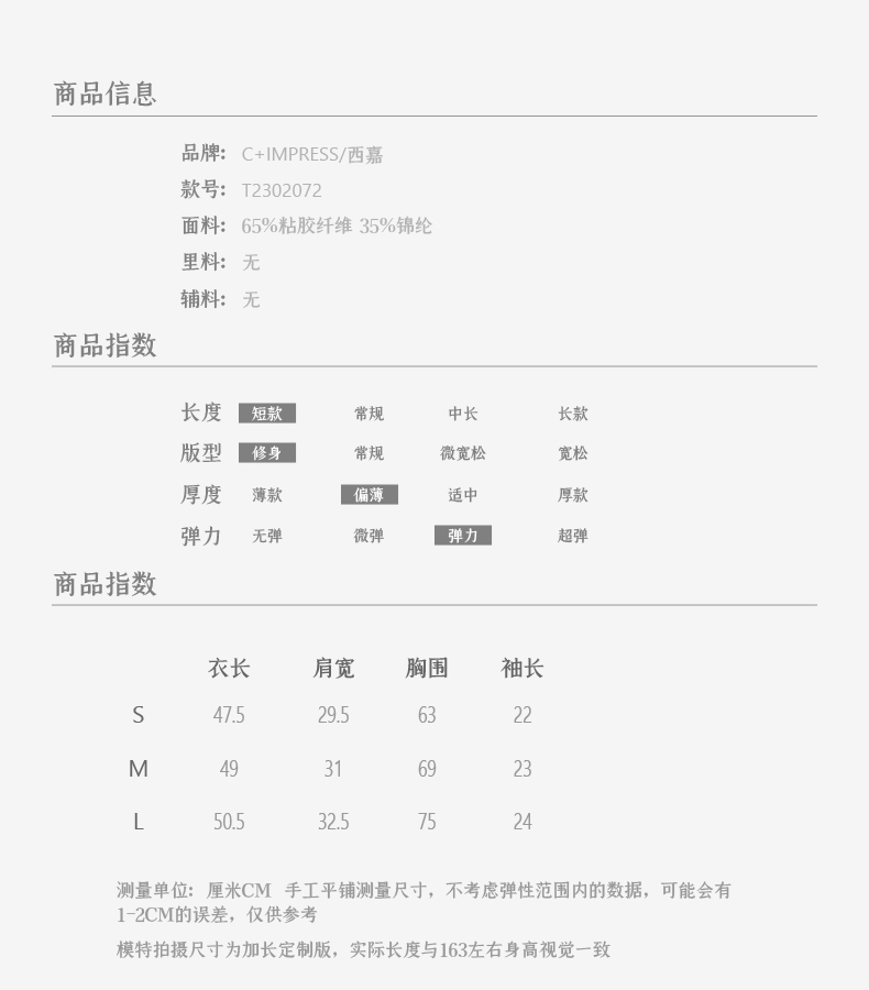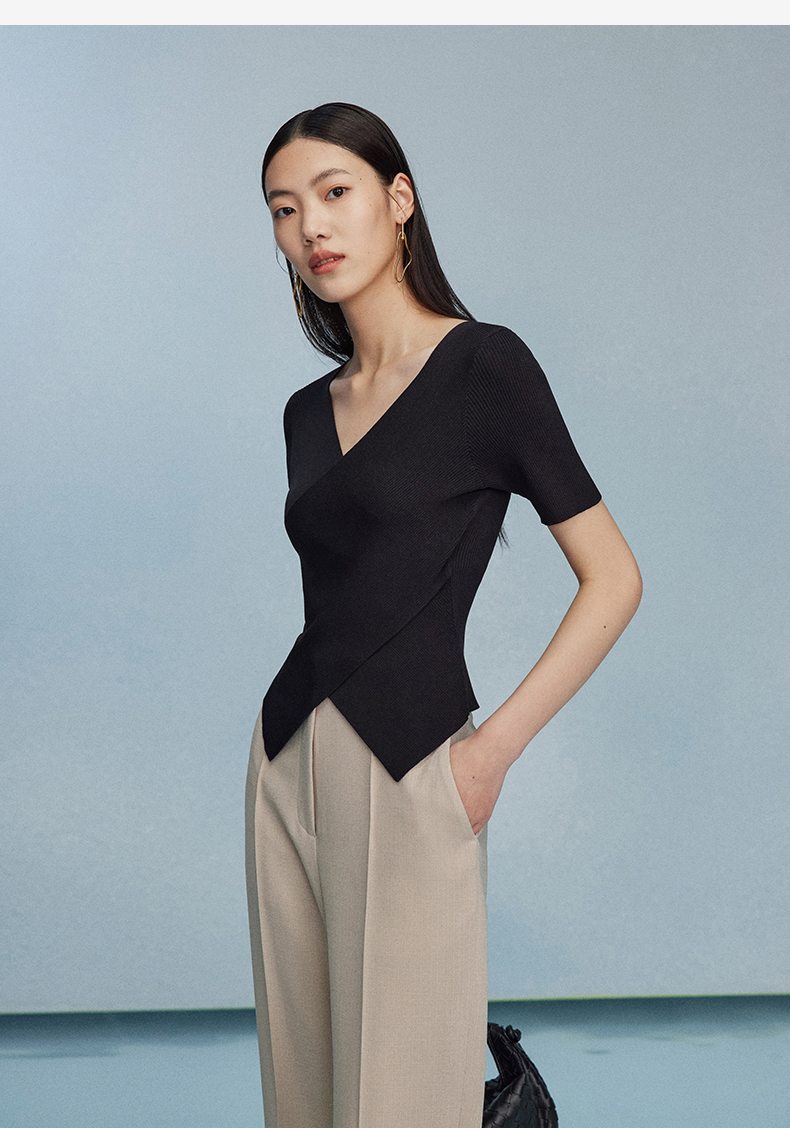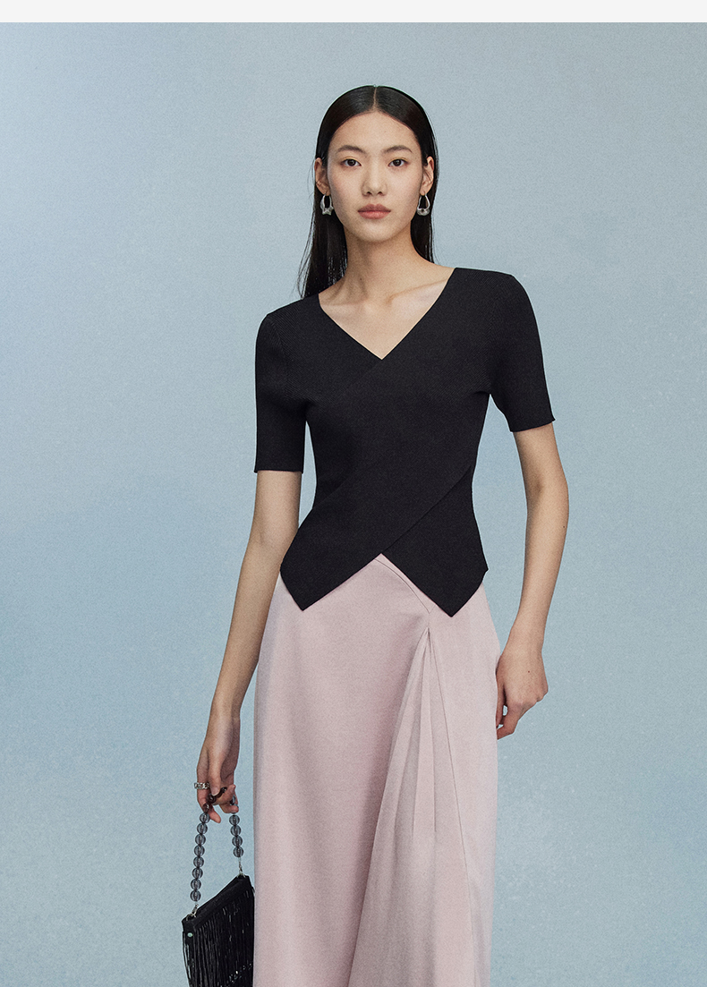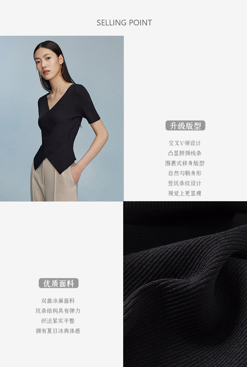 西嘉C+IMPRESS/西嘉夏季冰麻双曲短袖t恤女装2023年新款短款修身上衣T2302072