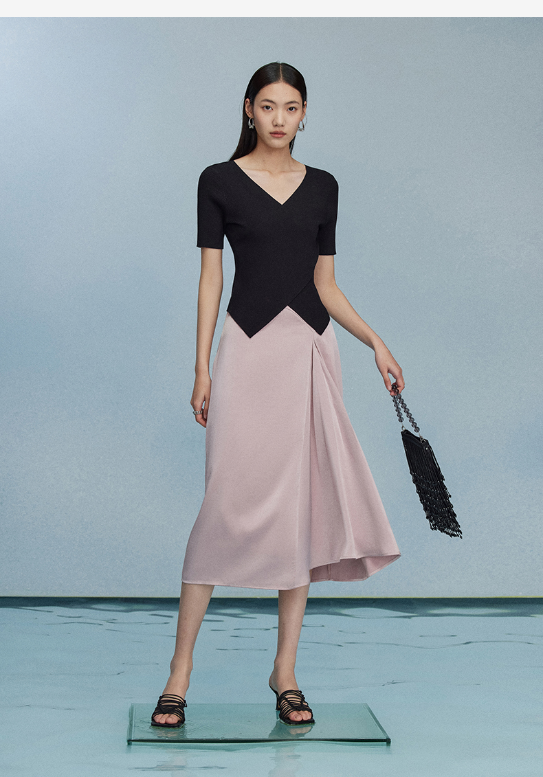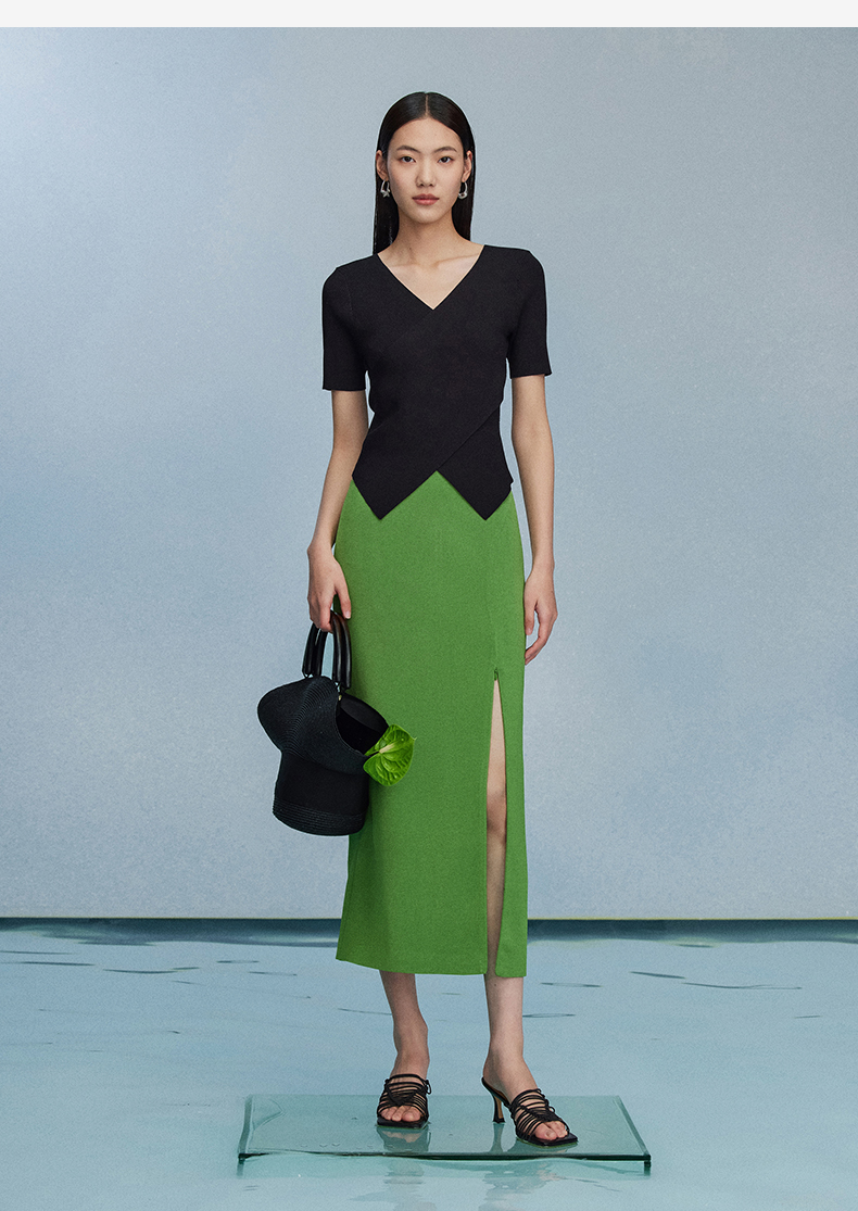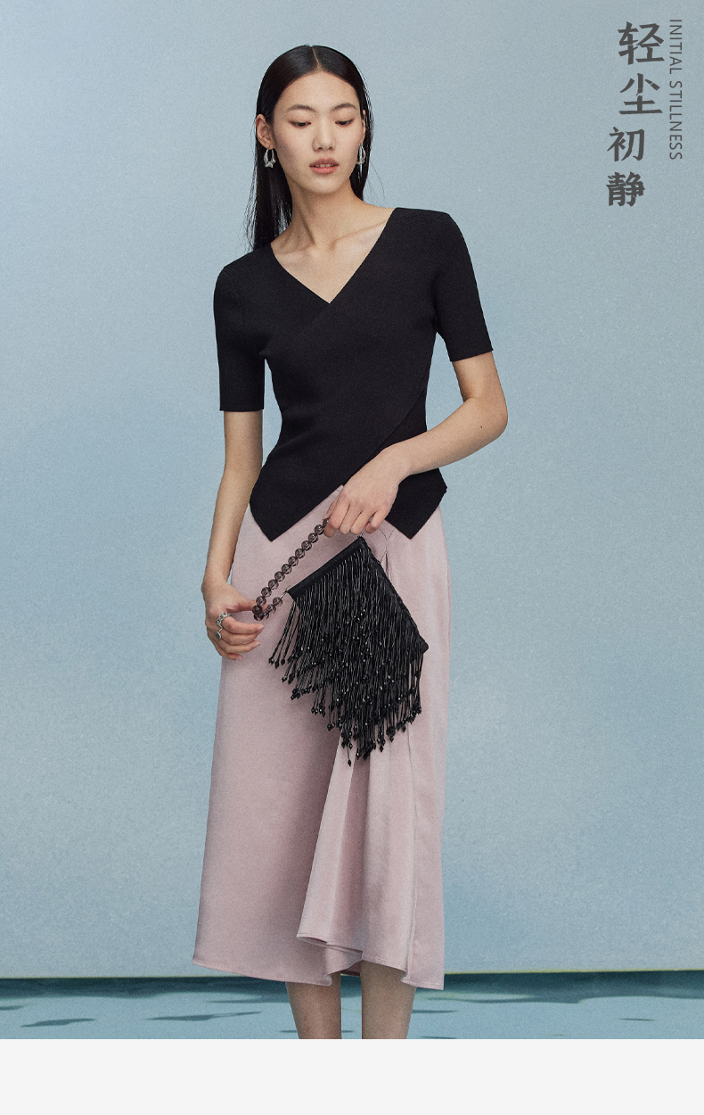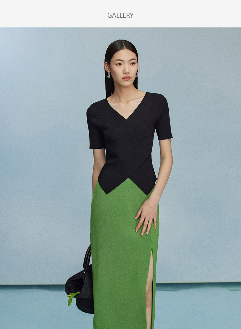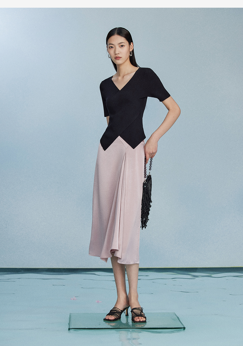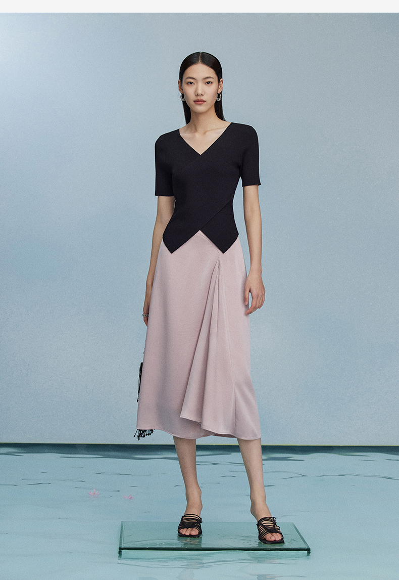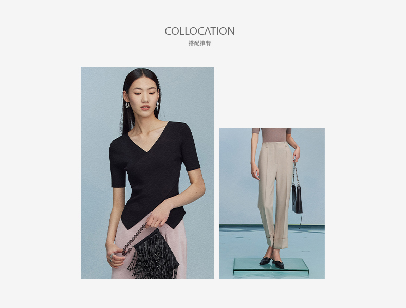 西嘉C+IMPRESS/西嘉夏季冰麻双曲短袖t恤女装2023年新款短款修身上衣T2302072