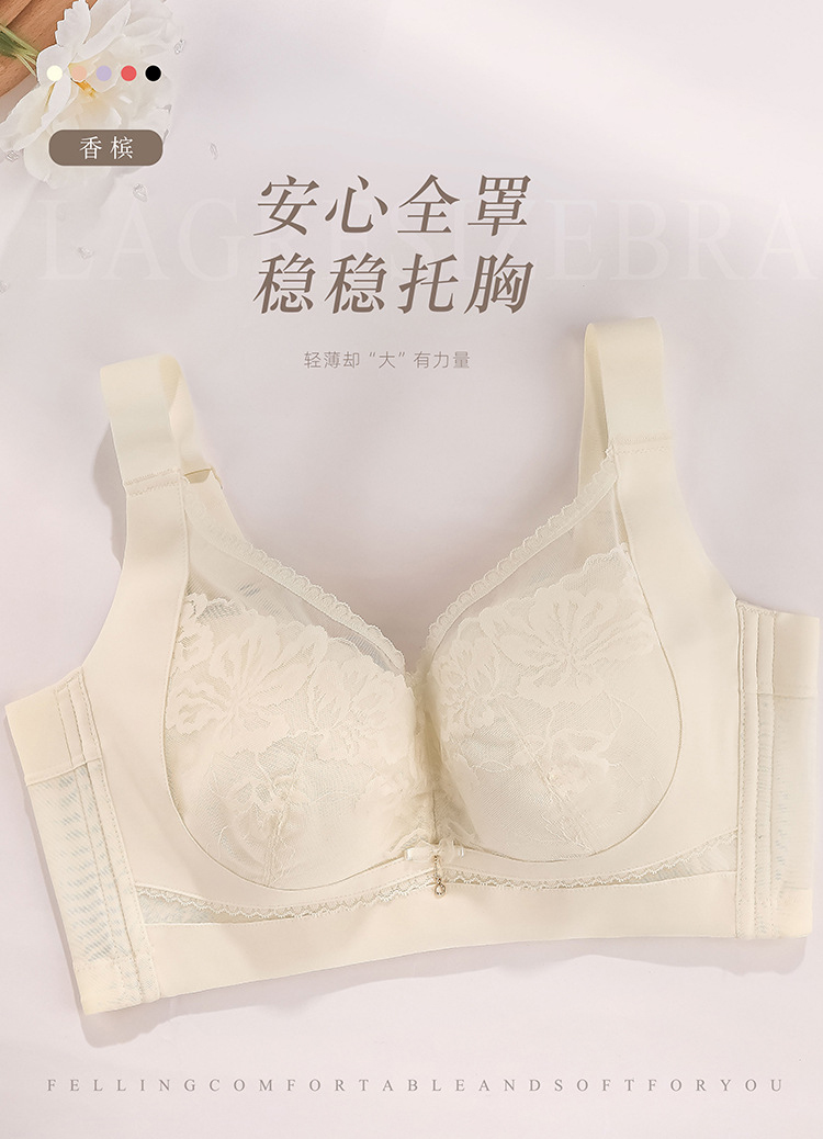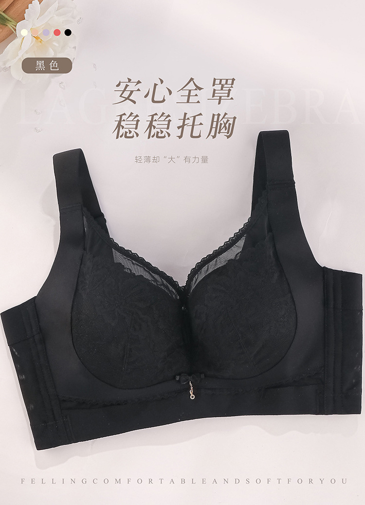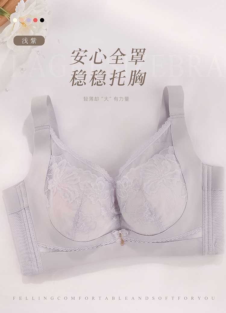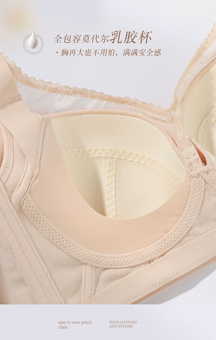 ZYQ-510 大胸显瘦文胸乳胶舒适透气性感蕾丝五排扣调整型薄款大码内衣女士(单件)