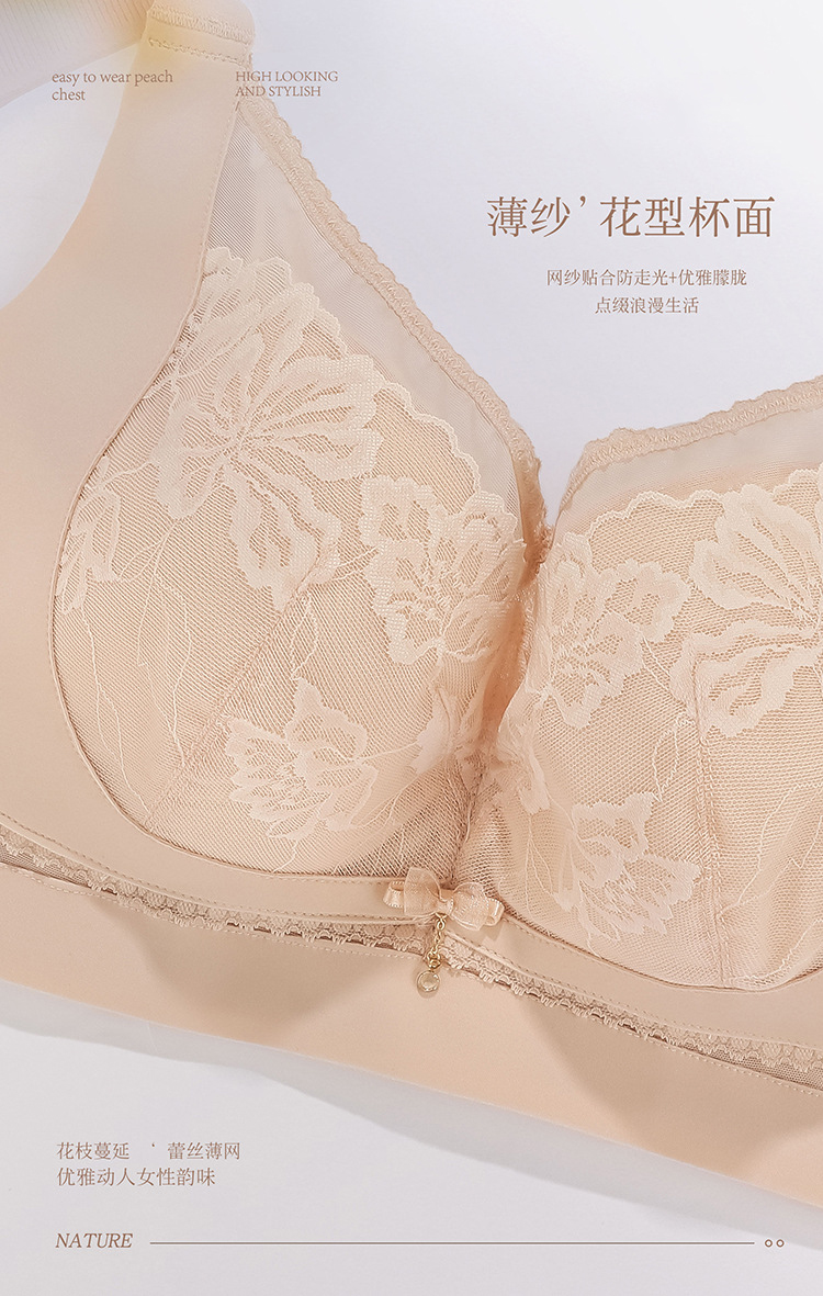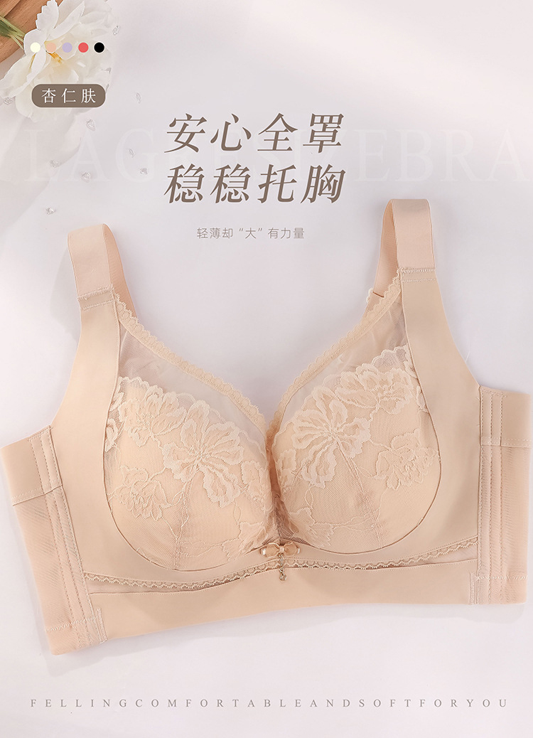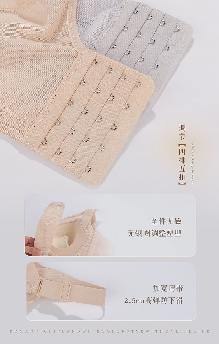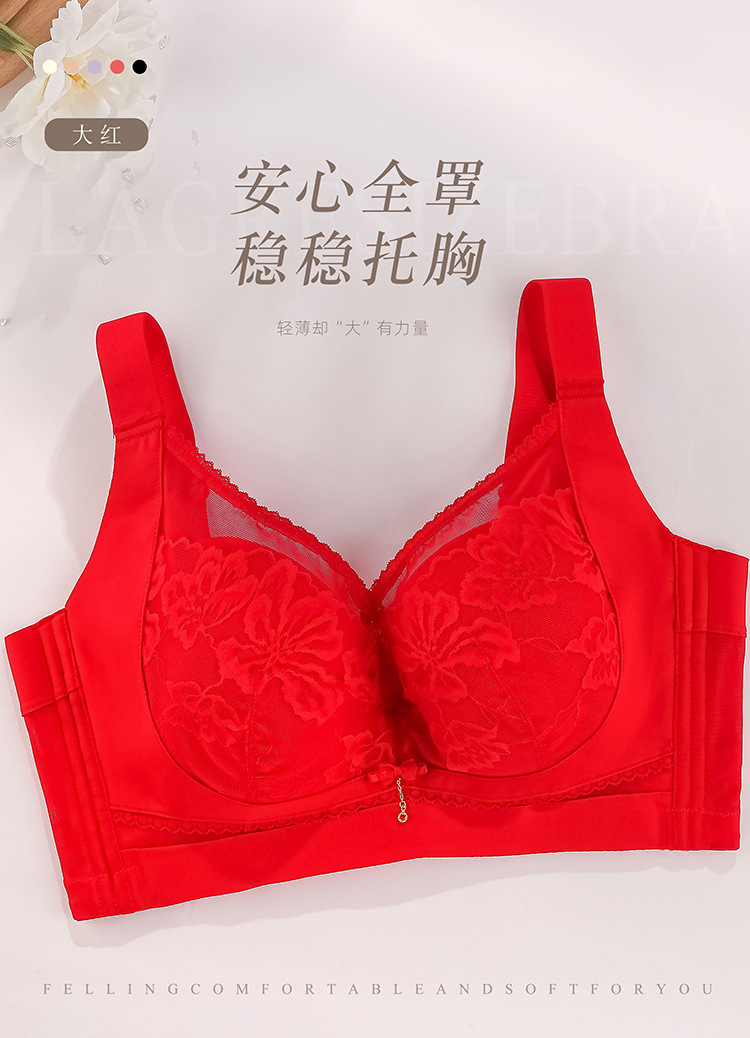 ZYQ-510 大胸显瘦文胸乳胶舒适透气性感蕾丝五排扣调整型薄款大码内衣女士(单件)
