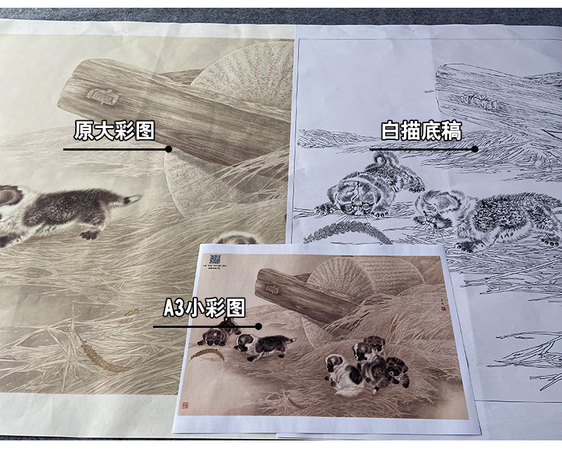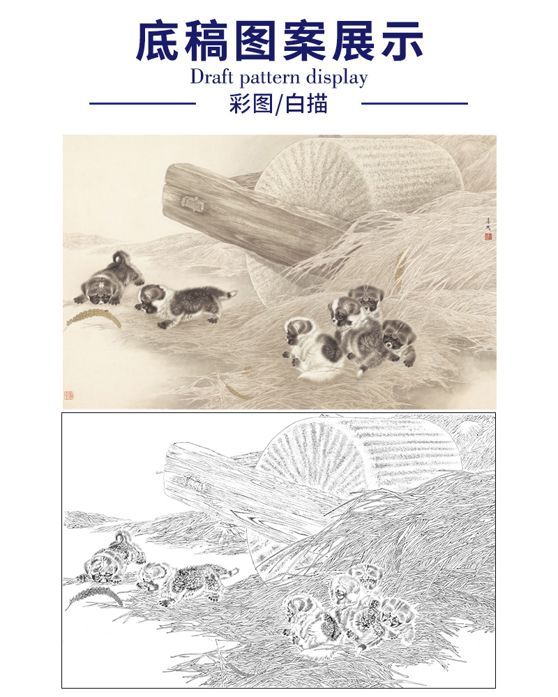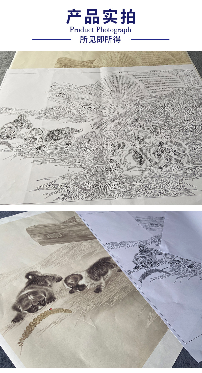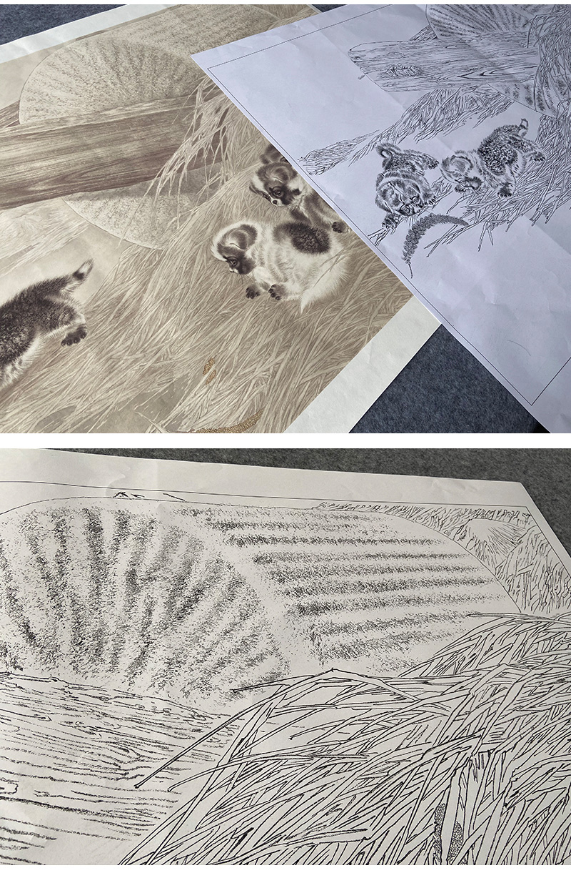 【大彩图】米春茂工笔画白描底稿《乡间一隅》小狗临摹勾线动物线稿A642