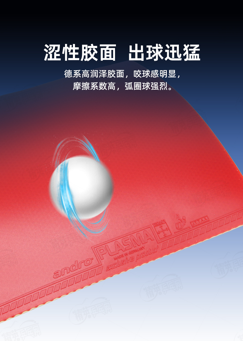 海绵相对偏硬,击球实,出球快,拉球弧线平,适合以速度、力量为主的打法,以及手上控制、调节能力突出的专业选手。