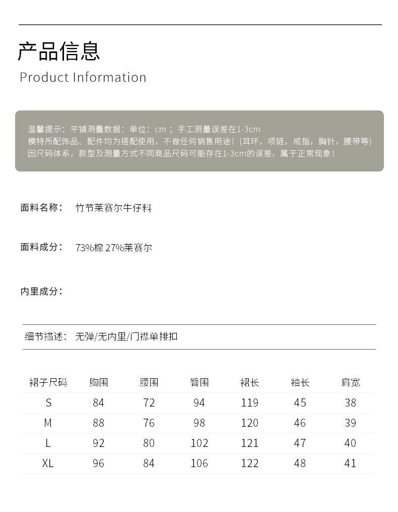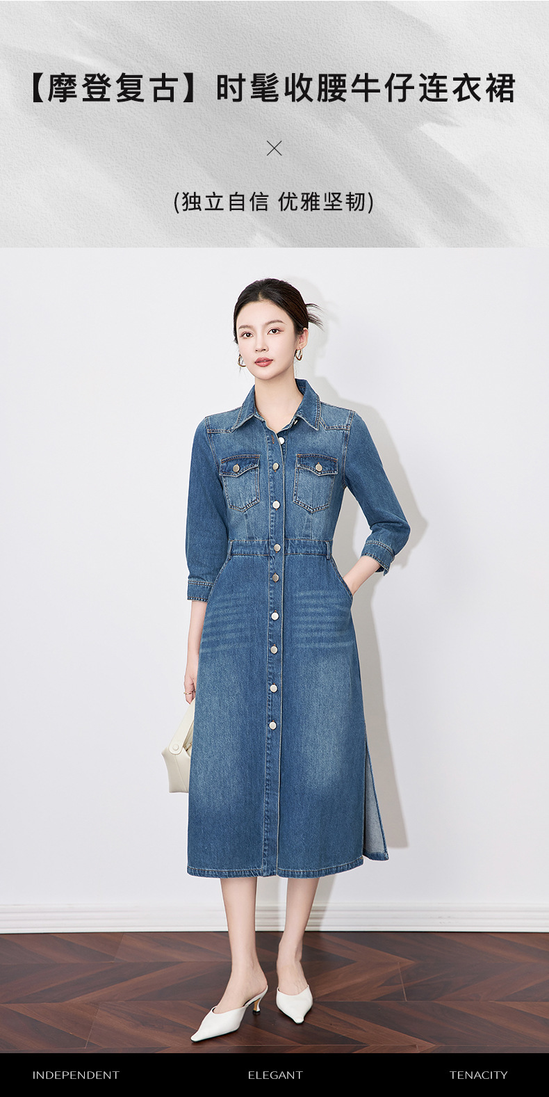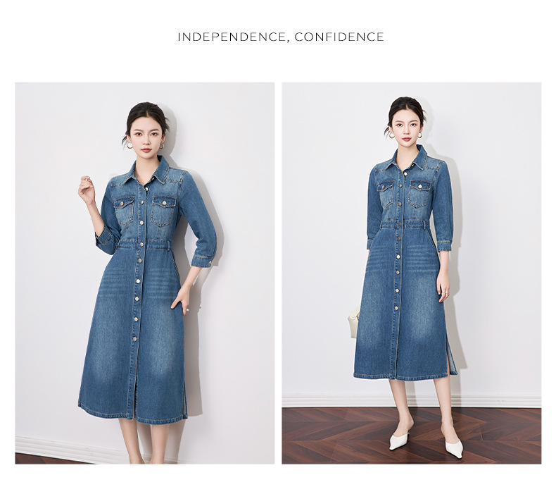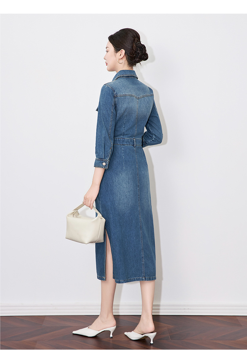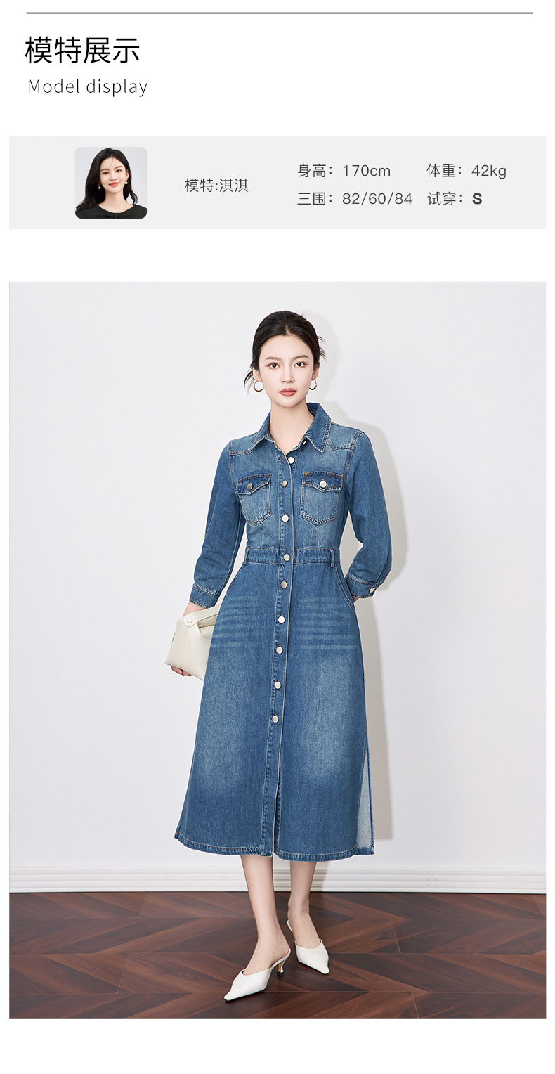【高货wl】全新升级【铂金会员330/天猫439/差价109】(74417) 洛诗琳优雅通勤复古衬衫式牛仔裙简约休闲连衣裙
