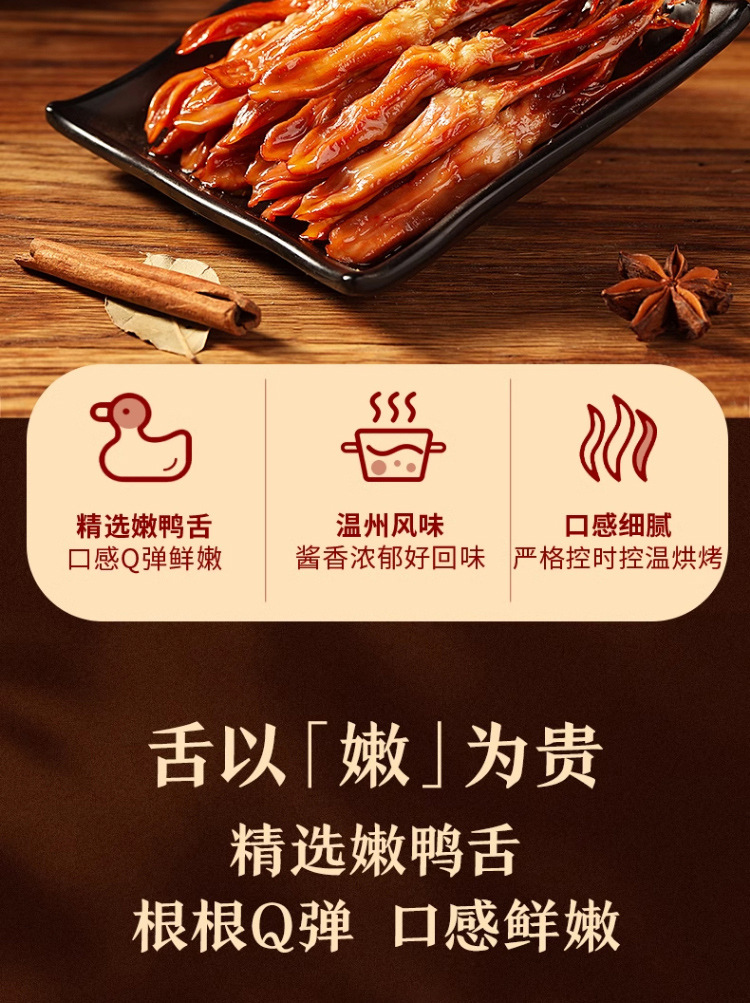 【浓香四溢❗肉质饱满】根根Q弹,口感鲜嫩,温州特产酱正宗鸭舌头即食肉类卤味独立小包装鸭网红休闲追剧零食。rh
