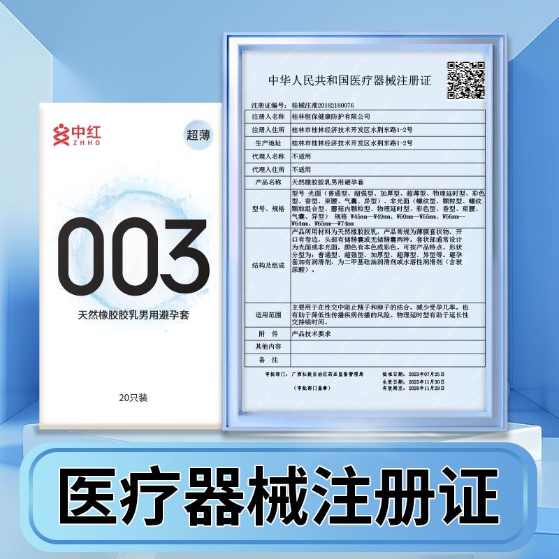 【轻盈水润】中红003超薄 安全套避孕套 20只装