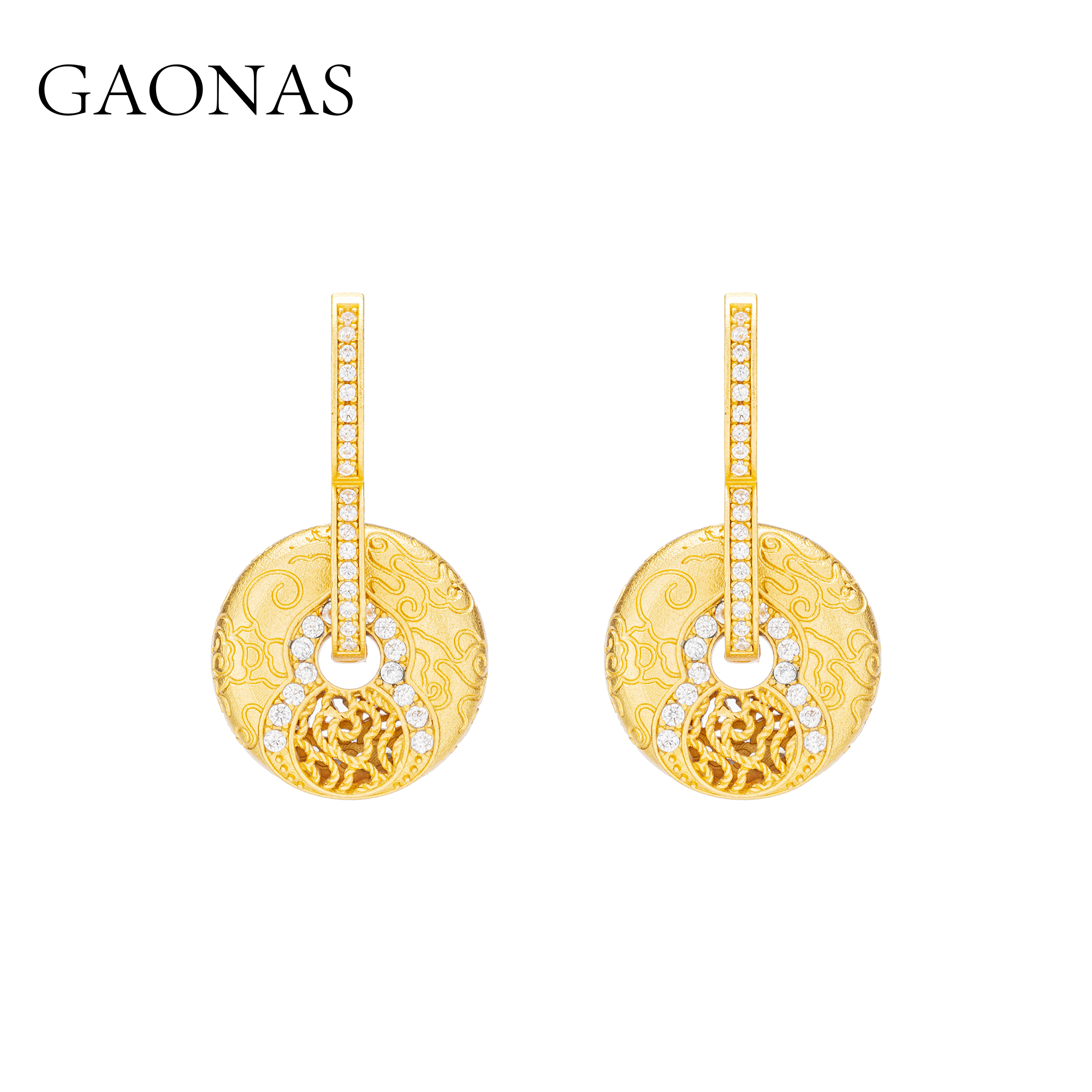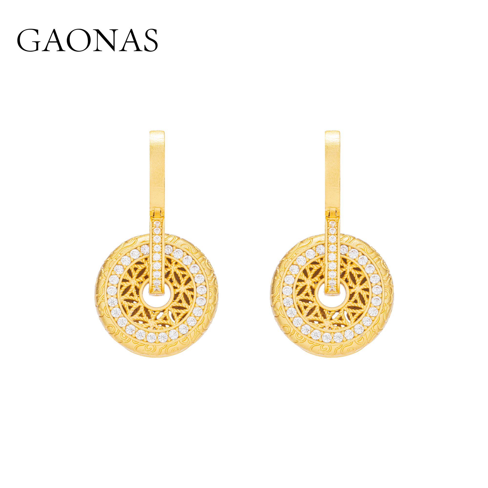GAONAS 贵气老钱金色平安扣耳环11673EGO