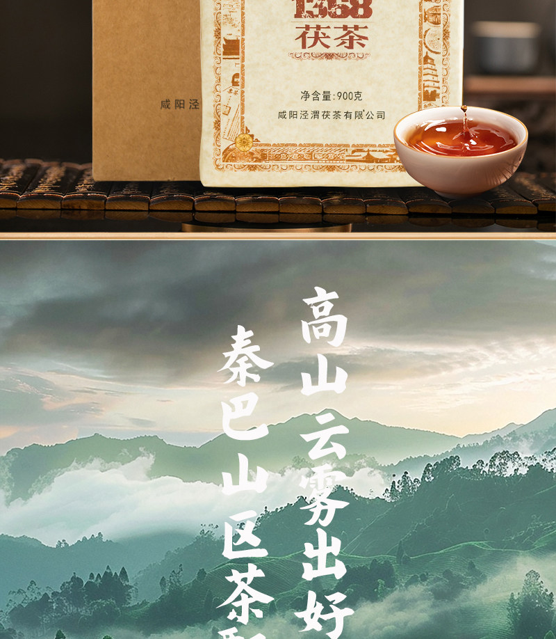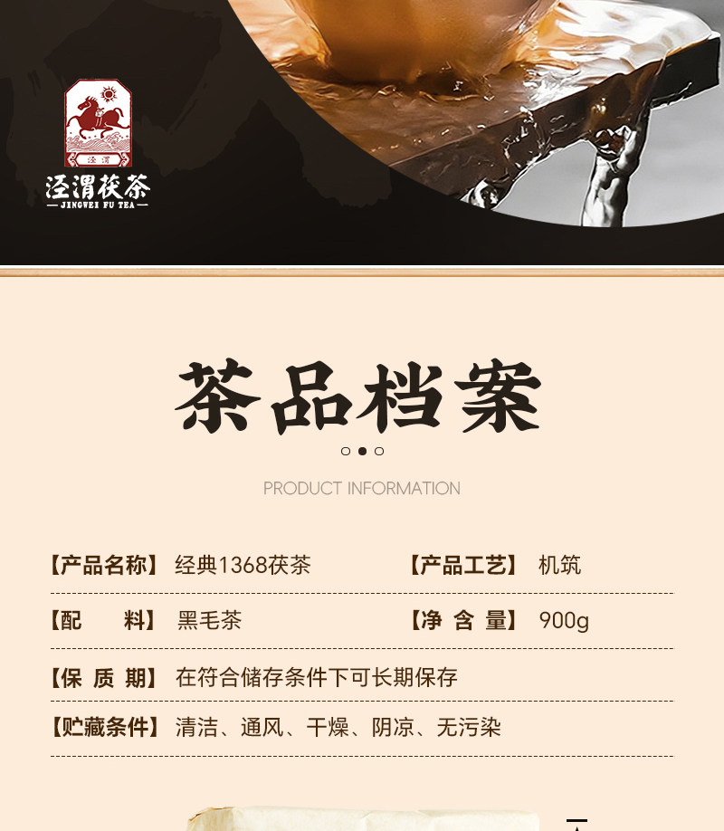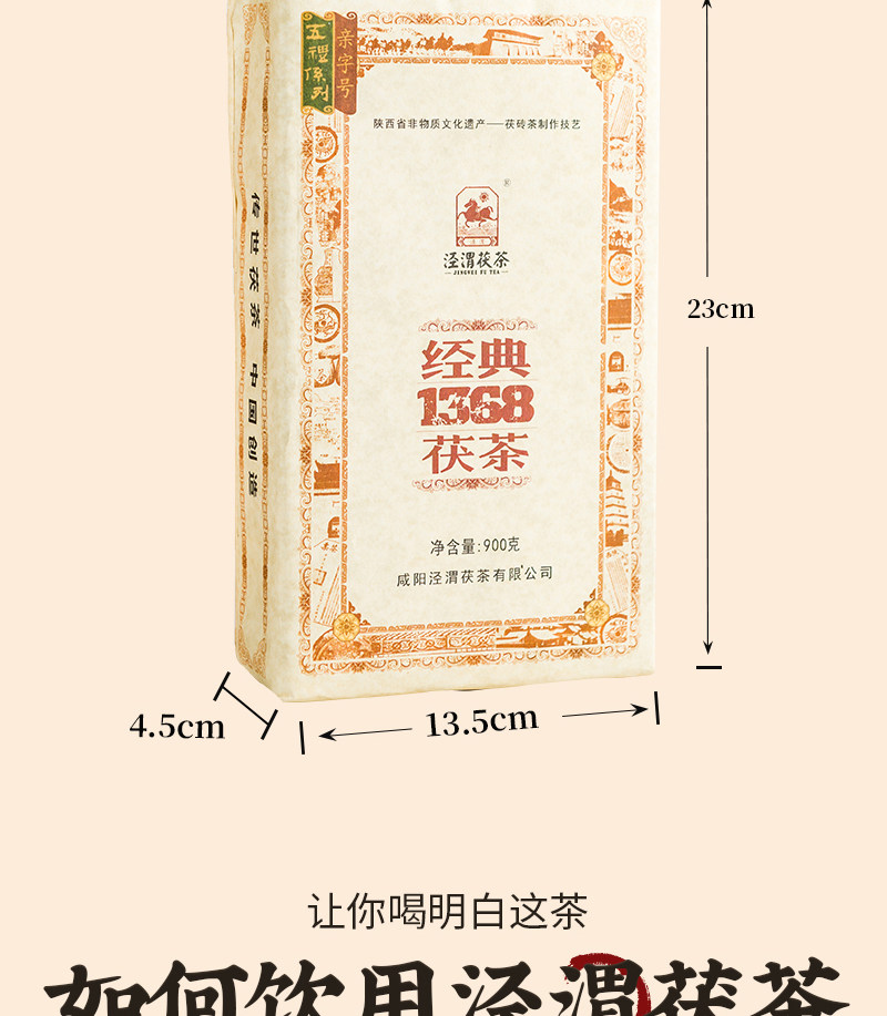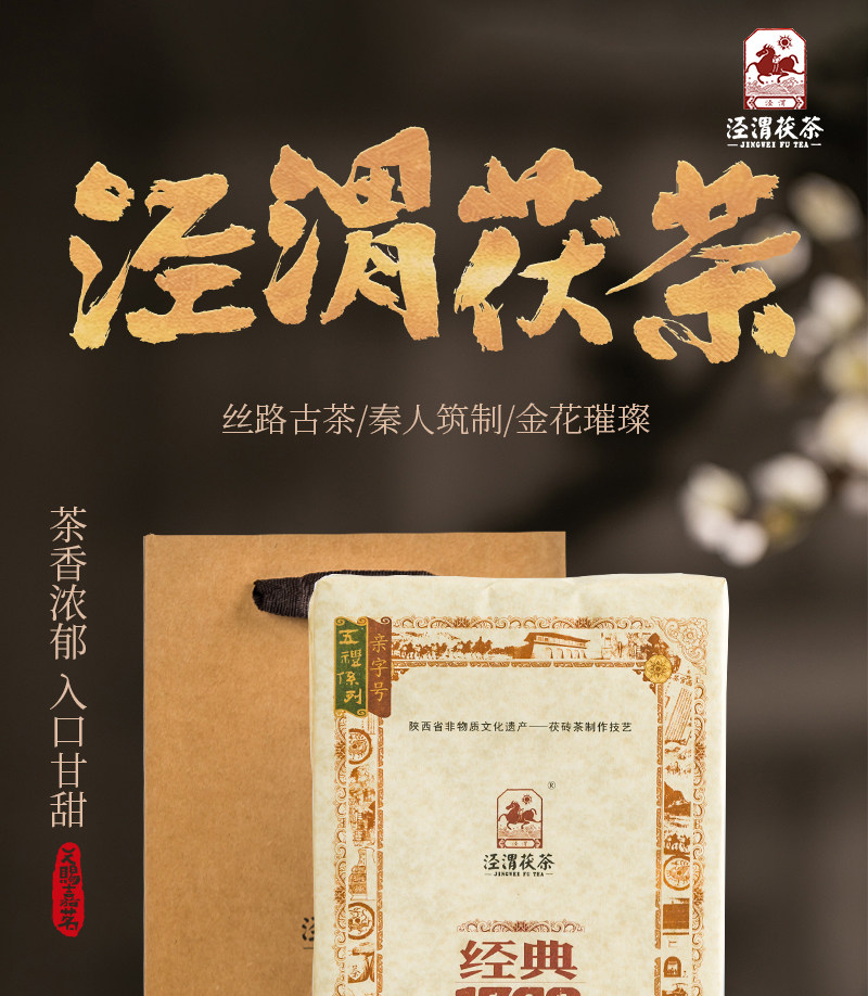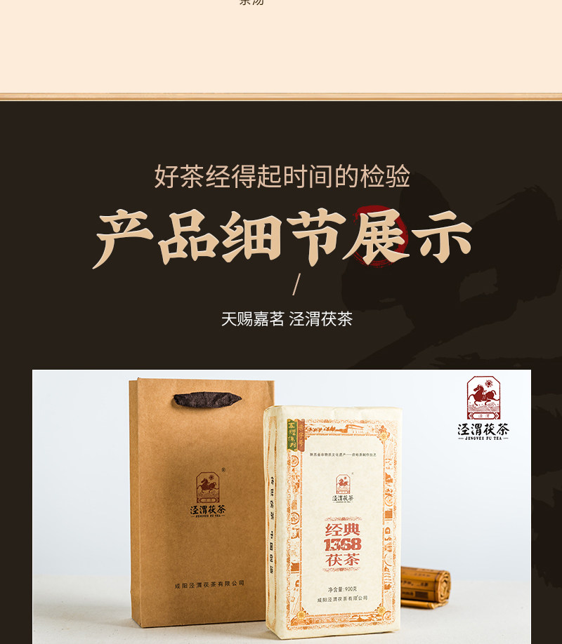 【经典1368茯茶】陕西泾阳茯茶砖茶900g 金花伏茶砖正宗泾渭特色黑毛茶